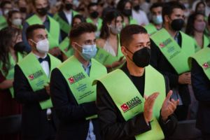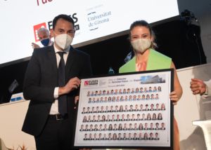 L’Aula Magna Modest Prats de la Universitat de Girona ha estat aquest dimarts l’escenari de l’acte de graduació de la promoció 2017/2021 del Grau en Ciències de l’Activitat Física i de l’Esport de l’EUSES, en el qual hi ha participat 57 alumnes que han completat el cicle de quatre anys a l’Escola Universitària de la Salut i l’Esport i ja tenen la titulació i la preparació per endinsar-se en el mon professional. El Dr. Juan Antonio Donaire (Vicerector de Comunicació i Relacions Exteriors de la UdG), el Sr. Rafel Magrinyà (Director Acadèmic de l’EUSES-UdG) i el Sr. Adrià Martín (Director del Grau en Ciències de l’Activitat Física i de l’Esport) han format la taula presidencial i s’han dirigit als nous graduats abans de lliurar-los els corresponents diplomes. Posteriorment ha estat el torn de la Sra. Sara Soy i del Sr. Robert Calderón, els quals han parlat amb representació dels alumnes. Després de l’entrega de les plaques i les orles, el Dr. José Antonio Donaire ha tancat l’acte que ha tingut com a punt i final l’actuació musical Gaudeamus Igitur.