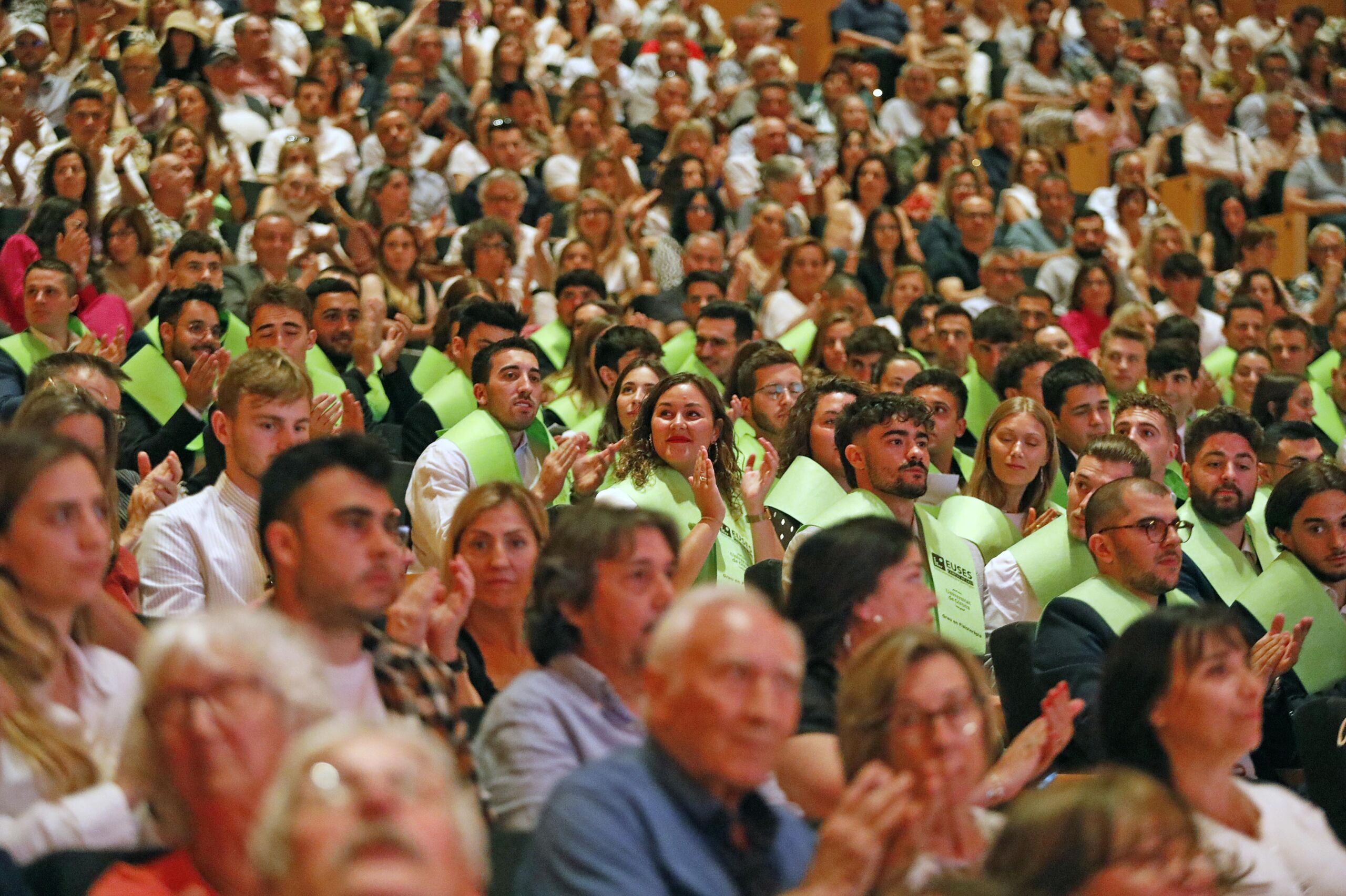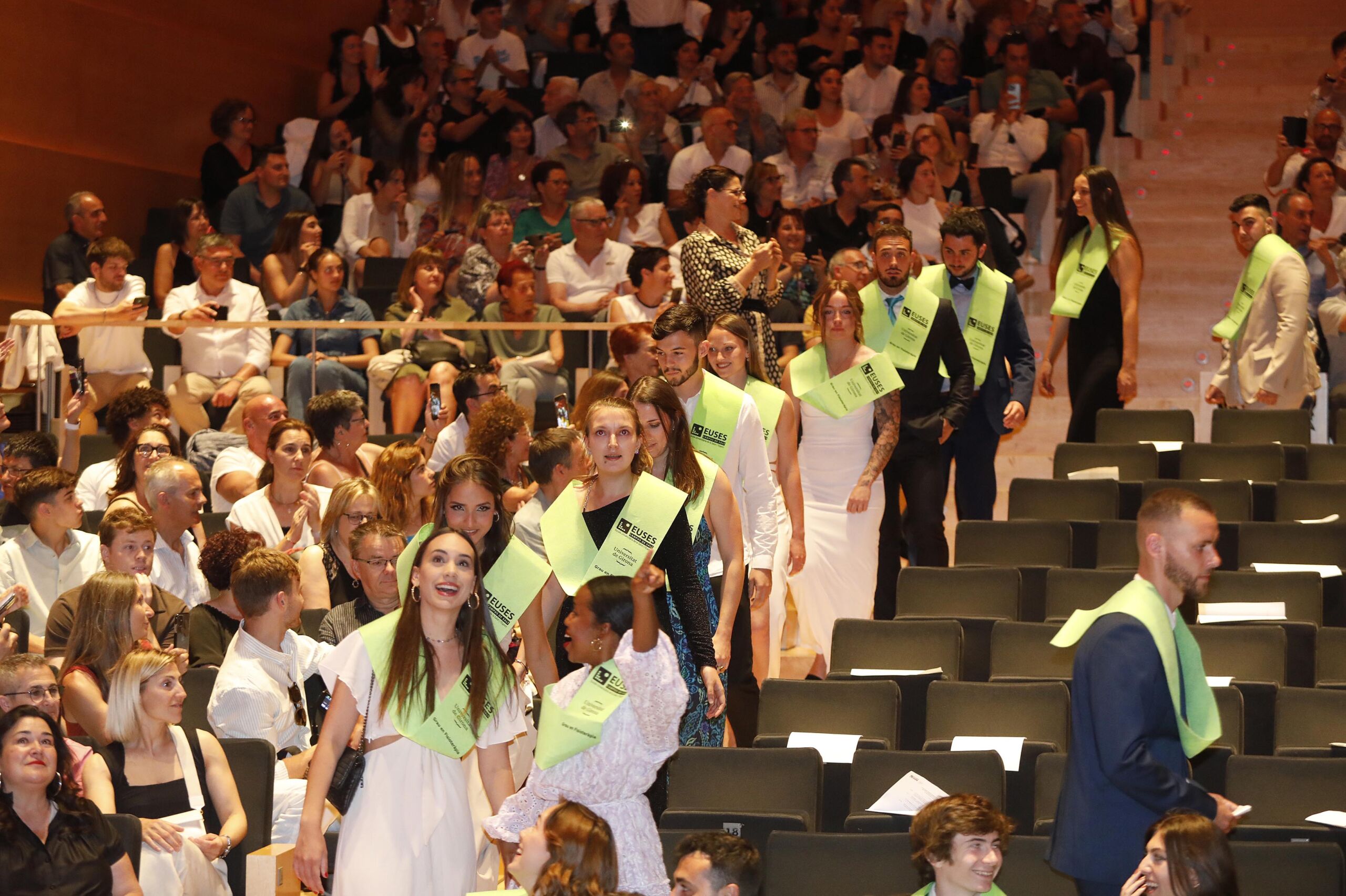 Un any més, l’Auditori de Girona ha acollit el solemne Acte de Graduació dels estudiants dels graus en Ciències de l’Activitat Física, en Fisioteràpia i de Doble Titulació (CAFE + Fisioteràpia) que van començar la seva formació universitària el 2019 a l’EUSES. Aquest dijous, més de 200 estudiants han sortit de l’Auditori amb la banda penjada al coll, el diploma sota el braç i altes dosis d’il·lusió i projectes de futur de cares a la seva imminent entrada al mercat laboral. En concret, s’han graduat 64 estudiants de CAFE; 134 de Fisioteràpia i 9 que han fet els dos graus i han obtingut la doble titulació.