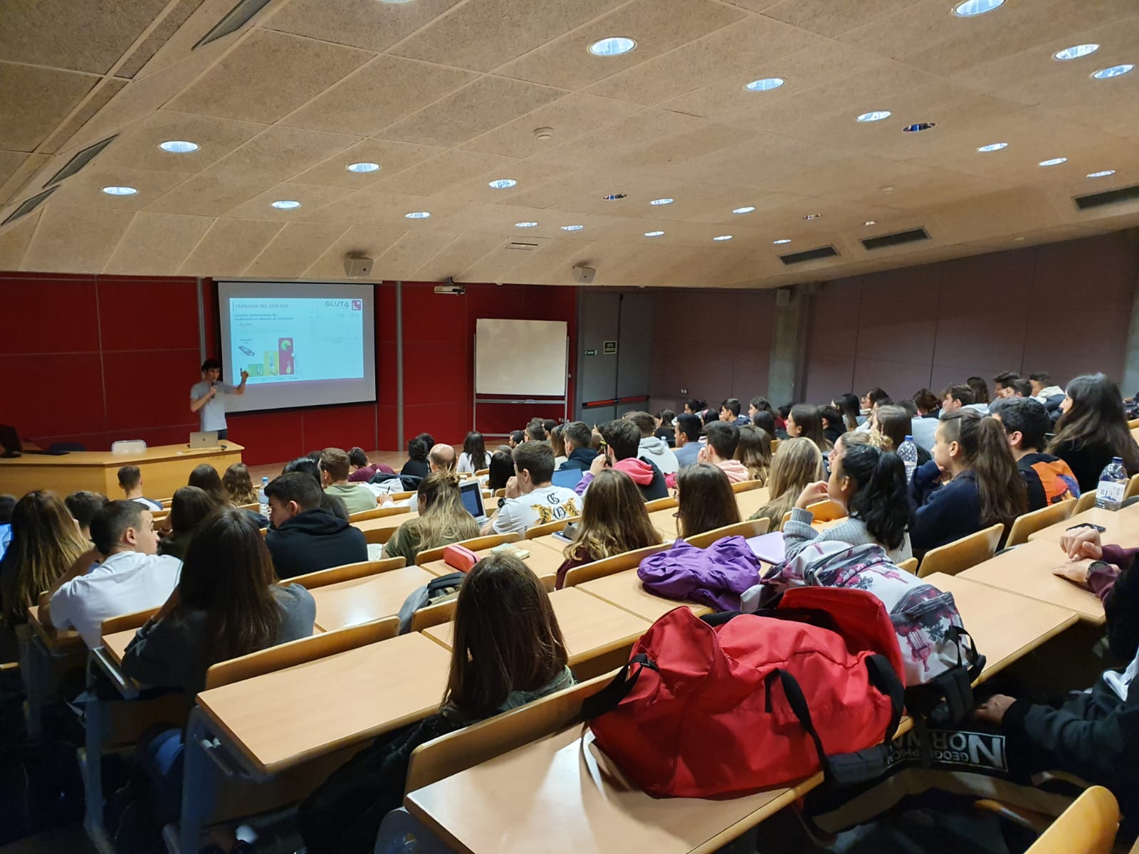 La conferència “Nous reptes i perspectives de la nutrició esportiva: què hi diu la ciència” que ha impartit Aitor Viribay ha omplert l’Aula Magna d’estudiants dels dos cursos del Cicle Formatiu de Tècnic Superior en Dietètica, d’alumnes de CAFE i de Fisioteràpia i de gent interessada en la matèria. Viribay, que és graduat en Nutrició Humana i Dietètica, docent universitari i assessor científic per a esportistes d’alt nivell, ha fet un repàs a les noves tendències en Nutrició Esportiva. La primera part de la ponència l’ha enfocat principalment a la importància metabòlica de substrats com el lactat i el glucogen muscular (i cerebral…); i en la segona ha exposat tendències i protocols aplicables als esportistes tals com el Train Low, periodització a nivell de suplementació i entrenament/adaptació nutricional (Gut Train). La conferència ha estat possible gràcies al suport de la Diputació de Girona.