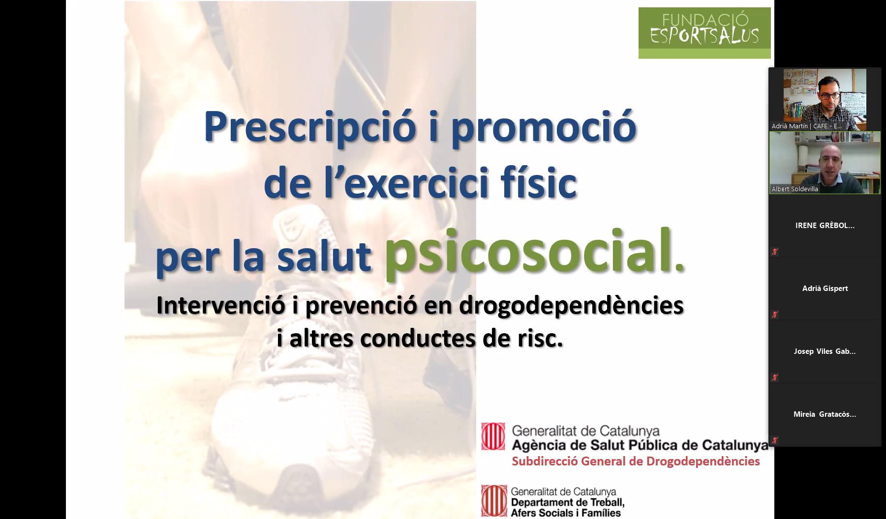 Albert Soldevila, membre de la Fundació EsportSalus, ha impartit aquest dimarts el seminari de “Prescripció d’Exercici Físic per la Salut Psicosocial”, una formació que estava oberta a tots els estudiants i titulats del Grau en Ciències de l’Activitat Física i de l’Esport i associats a EUSES Alumni. En l’exposició, Albert Soldevila ha tractat continguts relacionats amb els beneficis psicosocials de l’exercici físic; els riscos de l’exercici físic per a la salut Psicosocial; la prescripció d’exercici físic per a la salut Psicosocial; i la promoció de l’exercici físic en l’adolescència com a eina de prevenció de conductes de risc. La sessió, que s’ha realitzat en format on-line, ha estat conduida pel director del Grau en CAFE, Adrià Martín.
