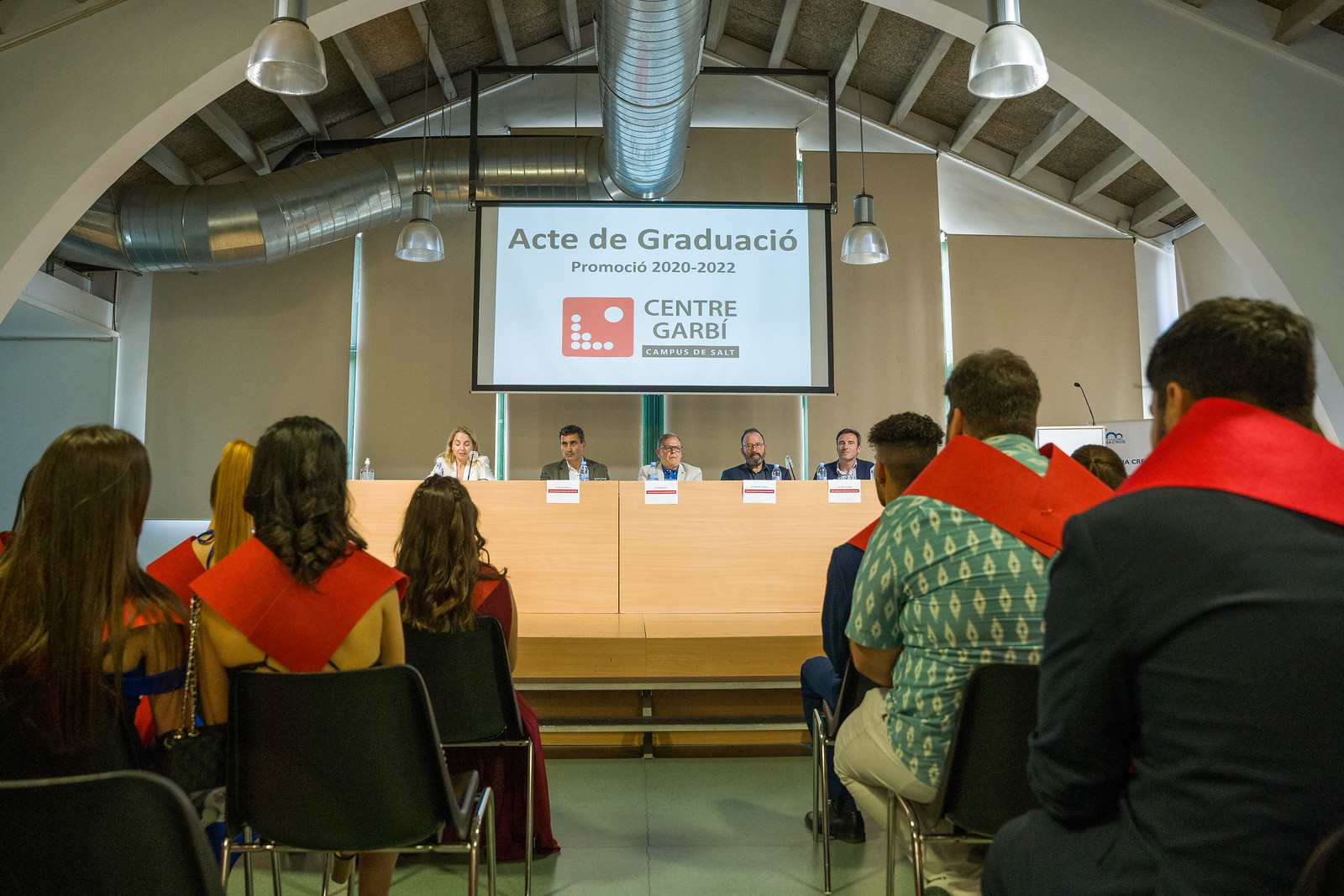 L’acte l’ha obert el director del Centre Garbí, Ferran Thomas, el qual ha presidit la taula presidencial que ha estat formada per Sílvia Roche, directora del Centre Garbí Alumni; Fermí Cunill, regidor de Joventut i Ensenyament de l’Ajuntament de Salt; el Dr. Salvador Pedraza, membre de la direcció acadèmica del Centre Garbí; i el Dr. Víctor Pineda, director clínic territorial IDI-Girona.Tots ells s’han adreçat als nous graduats amb felicitacions per l’obtenció dels seus títols acadèmics i paraules encoratjadores en la seva imminent entrada en el món professional. Durant l’acte també s’ha fet entrega de l’habitual lliurament de diplomes, i els representants dels alumnes -Fatoumata Bah (APiC), Juan Lara (Dietètica), Pau Gamundi (TES) i Pep Simon (Imatge)- han fet recíprocs els agraïments en el seu parlament. També han intervingut en la graduació els coordinadors acadèmics Joaquim Llorella i Joan Baños. La cerimònia s’ha tancat amb la tradicional actuació musical del Gaudeamus Igitur.
