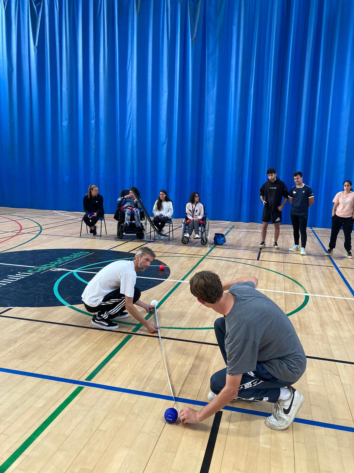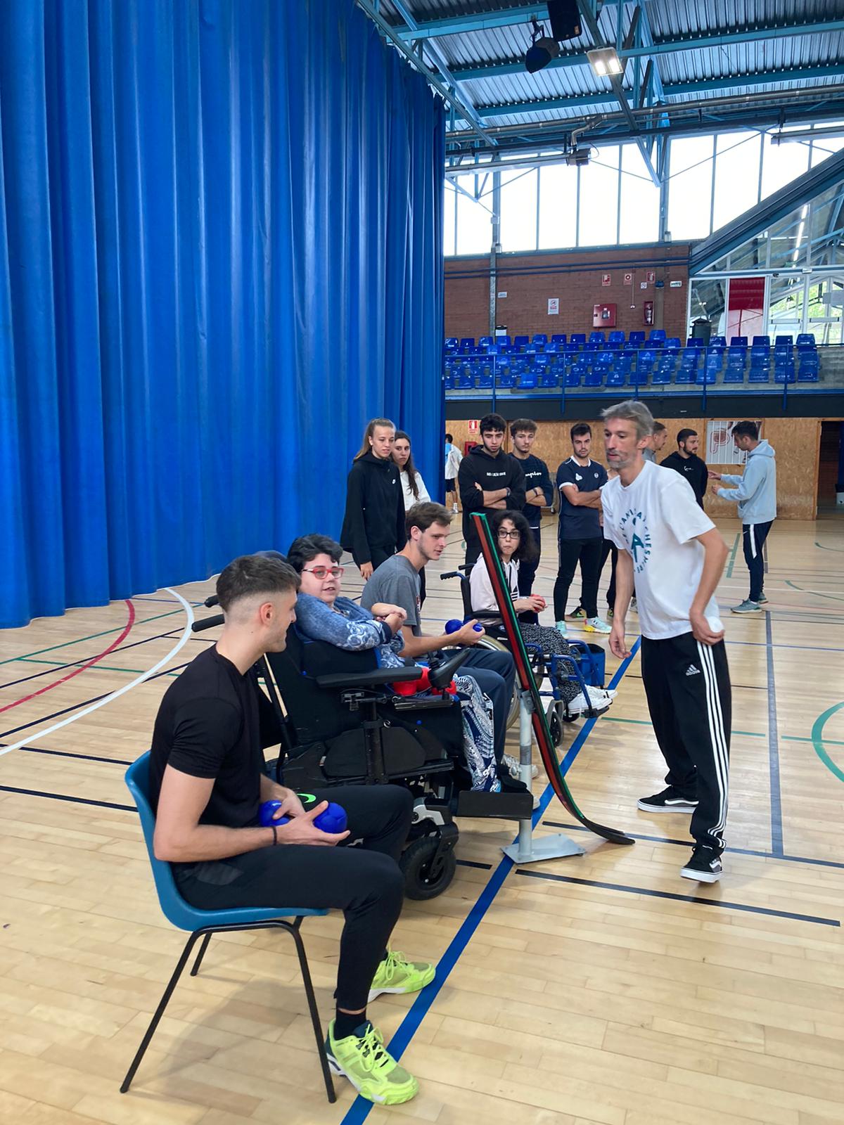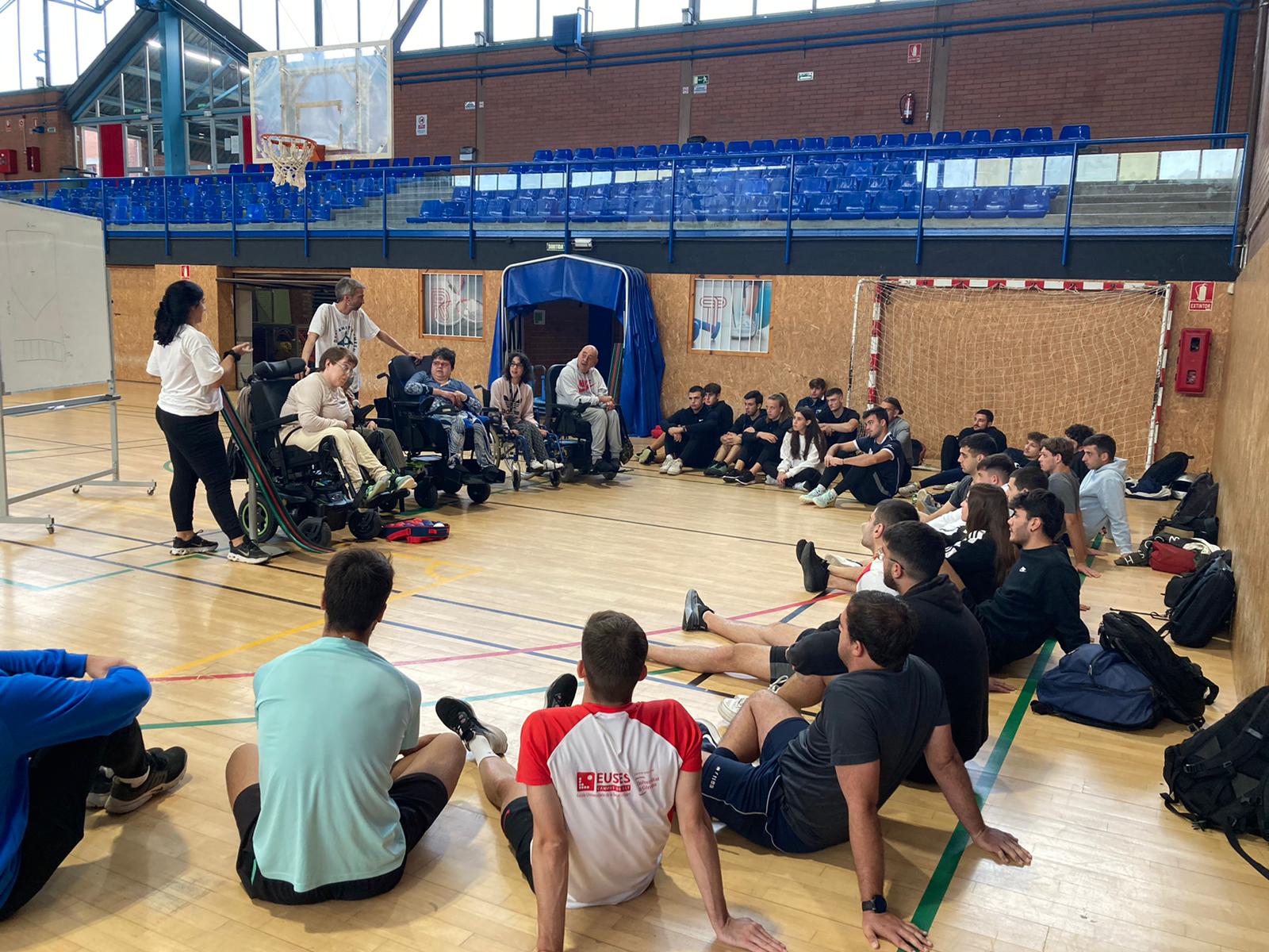 Els estudiants de 3r curs del Grau en Ciències de l’Acitivitat Física i l’Esport han tingut l’oportunitat de copsar de primera ma el dia a dia d’entitats especialiment sensibilitzades en ajudar a persones amb alguna discapacitat com poden ser, entre altres moltes, el Grup Mifas, el CEE la Massana o la Llar Oxalis. Enmarcat en l’assignatura d’Activitat Física i Esport per a persones amb alguna discapacitat que imparteix la professora Estefania Plans, els estudiants de CAFE han pogut tenir informació rellevant de totes aquestes entitats. El CEE la Massana va realitzar una xerrada sobre discapacitat auditiva, mentre que Mifas i la Llar Oxalis van traslladar la seva activitat a la pràctica. D’aquesta manera, els estudiants de l’EUSES van poder comprovar en primera persona les dificultats que representen esports com el bàsquet en cadira de rodes i la boccia (un esport semblant a la petanca) per a les persones amb alguna discapacitat.