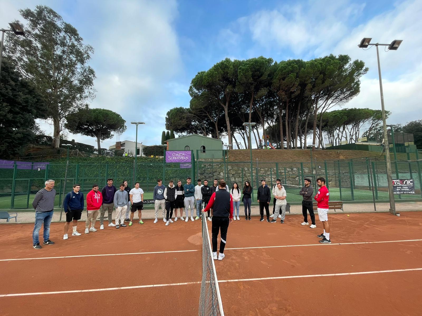 Els estudiants de 4t curs del Grau en Ciències de l’Activitat Física i de l’Esport que han escollit l’assignatura optativa de “Tecnificació esportiva i desenvolupament del talent” que imparteix el professor Jordi Balcells han visitat aquest dimarts les instal·lacions del Club Tennis Girona i concretament el grup de rendiment d’aquesta entitat. Allà, de la mà del coordinador de club, David Vidal,i de diferents entrenadors i preparadors físics de l’àrea de tennis com Joan Maynau, Gerard Gallego i Albert Font, els estudiants han après l’organització, el funcionament i aspectes competitius d’un dels principals clubs esportius de les comarques gironines.
