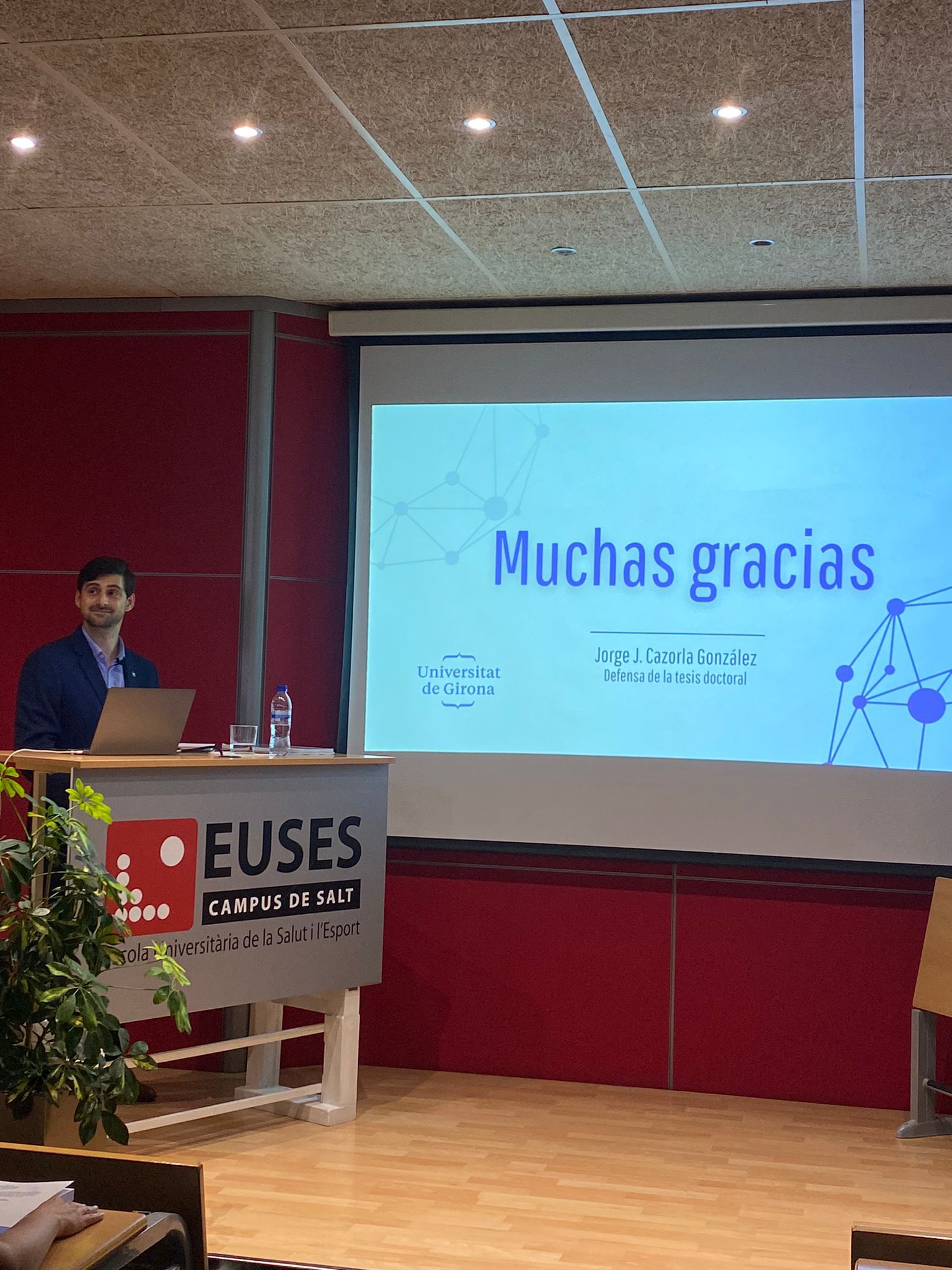 Aquest passat divendres dia 14 de juny, el professor del Grau en Fisioteràpia Jorge J. Cazorla González va defensar amb èxit la seva tesi doctoral titulada “Efecte modulador d’un estil de vida actiu i del gateig en la relació entre la composició corporal, el sistema cardiopulmonar, la competència motriu i la condició física en nens prepuberals sans” a l’Aula Magna d’EUSES-UdG, al Campus de Salt. Aquesta recerca, dirigida per la Dra. Anna Prats Puig, la Dra. Raquel Font Lladó i el Dr. Sergi Garcia Retortillo, és significativa en ser la primera tesi doctoral del grup de recerca PEHC (Physical Education, Health and Children).