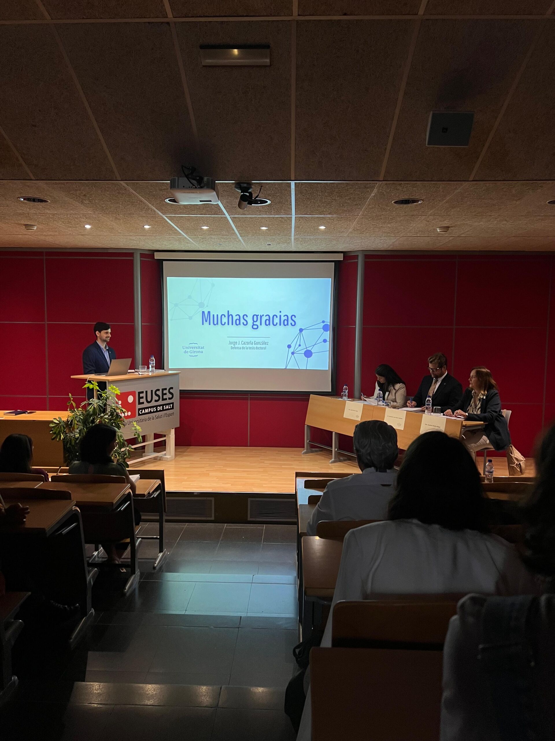 L’acte va començar a les 15.00 hores amb una presentació detallada de la tesi per part de Jorge J. Cazorla, qui va destacar els objectius, la metodologia emprada i els resultats obtinguts. La defensa va comptar amb la presència d’un tribunal avaluador format per diferents especialistes. El Dr. Mariano Luis Gacto Sánchez, de la Universitat de Múrcia, va actuar com a president del tribunal; la Dra. Josefina Patiño Maso, de la Universitat de Girona, com a secretària; i la Dra. Judit Homs Ávila, també de la Universitat de Girona, com a vocal.