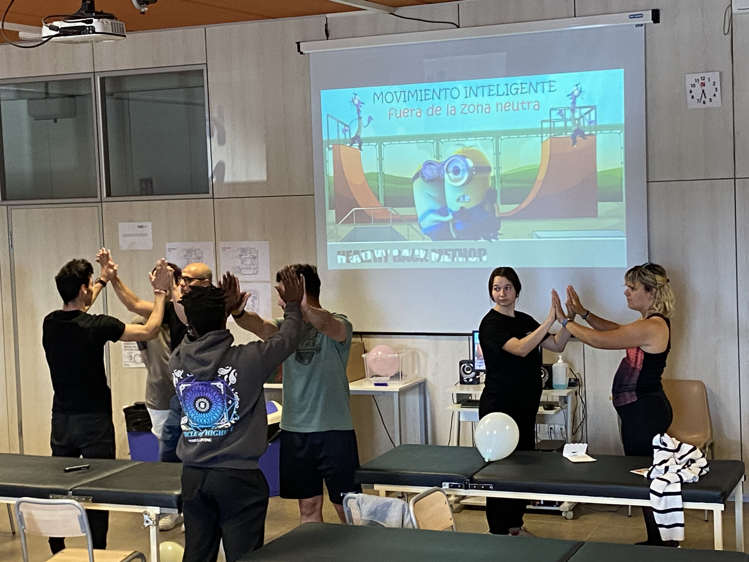 Jordi Moreno ha parlat sobre les evidències actuals en el tractament del dolor d’esquena i com el seu programa d’entrenament, el “Healthy Back Method”, pot ajudar a millorar la salut de l’esquena i la seva qualitat de vida. A banda de la pinzellada teòrica, els estudiants de l’assignatura també han pogut posar en pràctica algunes de les activitats dissenyades pel mateix Jordi Moreno.