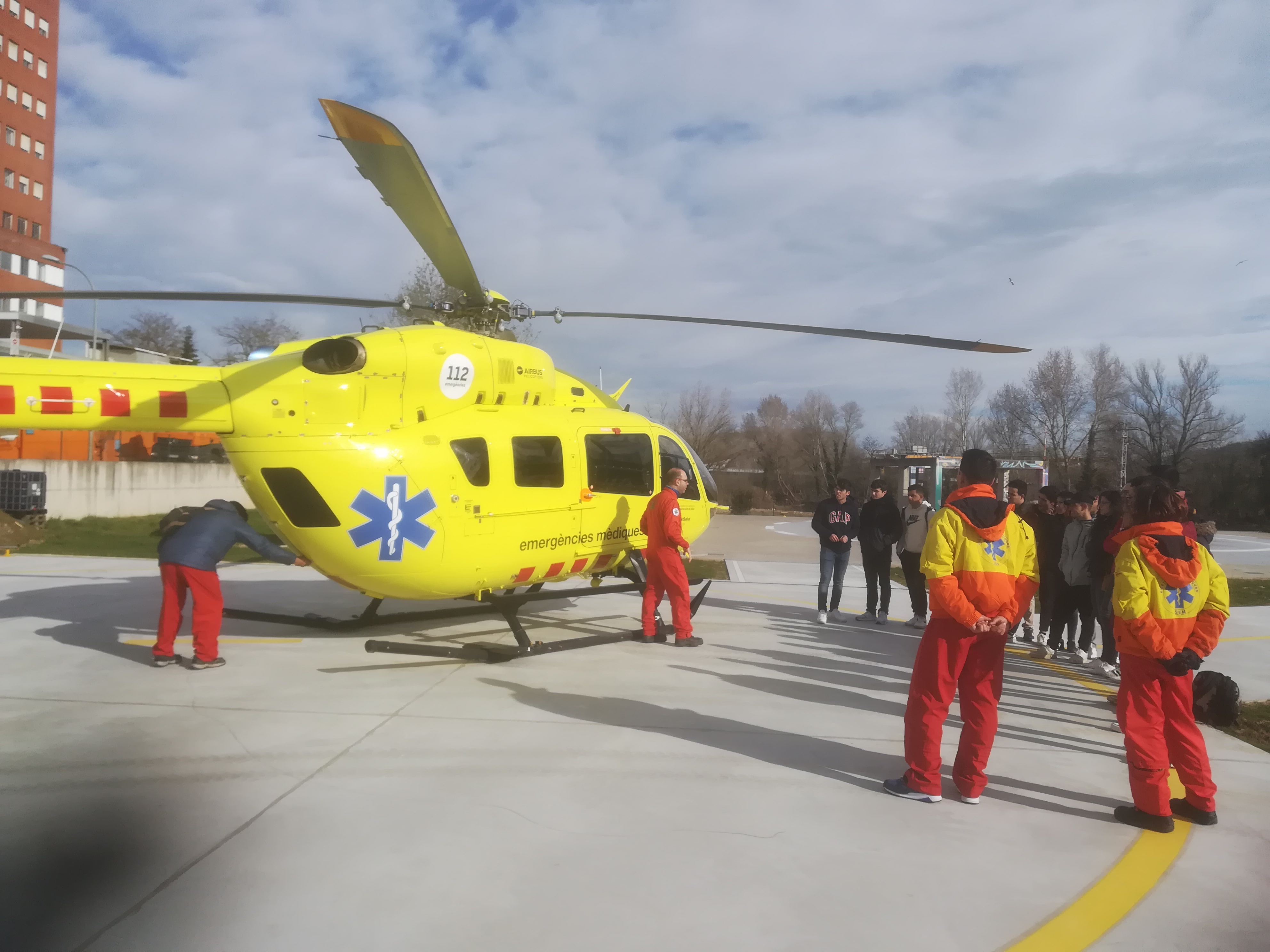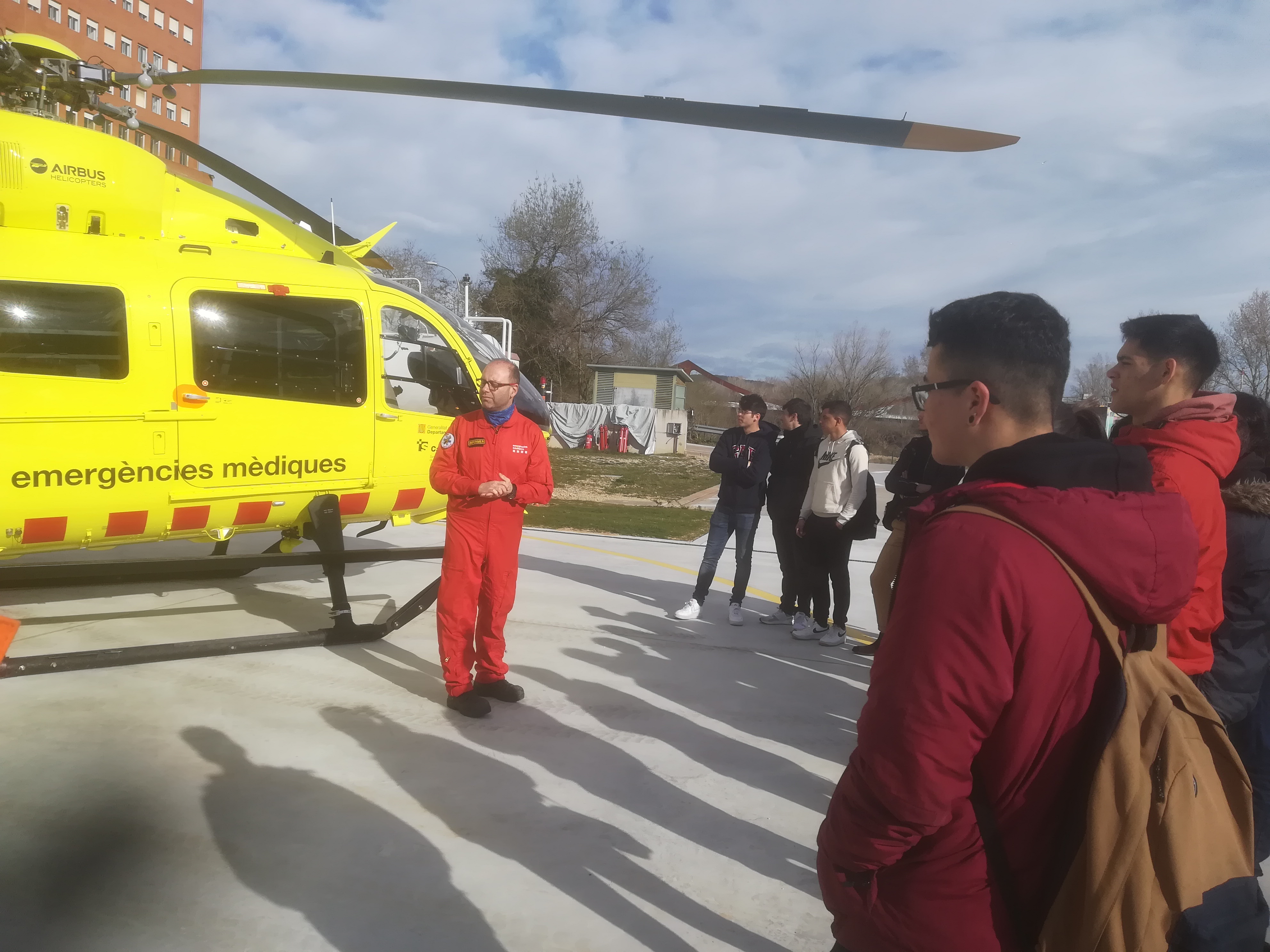 Els estudiants de 1r curs del Cicle Formatiu de Grau Mitjà de Tècnic en Emergències Sanitàries del Centre Garbí han visitat recentment la base del SEM (Sistema d’Emergències Mèdiques) de l’Hospital Josep Trueta. L’activitat es va emmarcar dins el Mòdul M3 (Dotació) que imparteix el professor Toni Quiñones. Els alumnes van poder conèixer “in situ” les caraterístiques del Vehicle d’Intevenció Ràpida (VIR), que està dotat amb una unitat de Suport Vital Avançat (SVA) i d’un equip assistencial format per un metge i un precisament un tècnic d’emergències sanitàries; i també van poder veure l’interior de l’Helicòpter Medicalitzat, també equipat amb SVA i disposa d’un equip assistencial integrat per un metge, un infermer i un pilot.