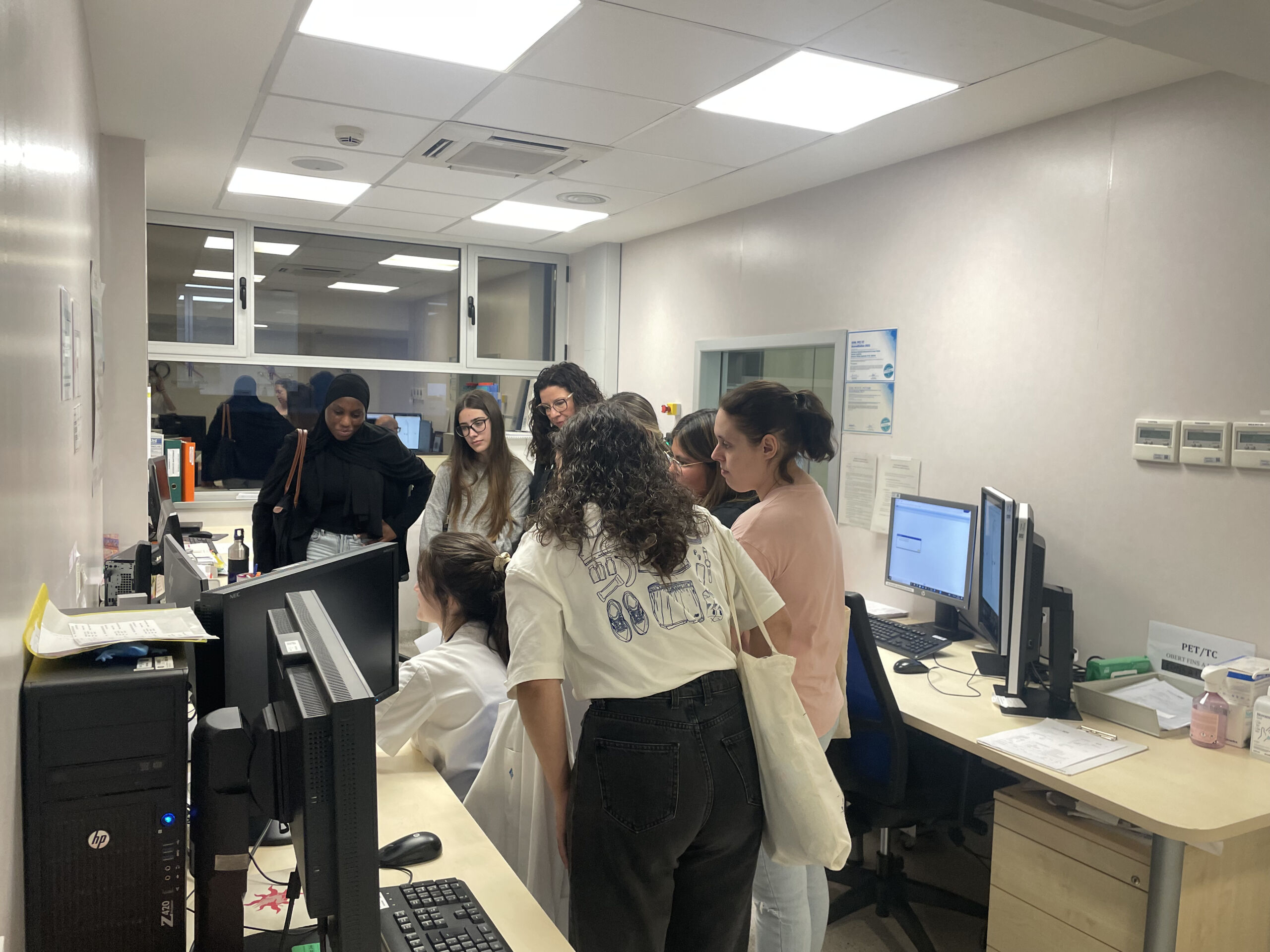 L’objectiu de la visita era que els alumnes visitessin la instal·lació radioactiva de segona categoria i es fessin una idea de les diferents àrees i equipament d’un servei de Medicina Nuclear i Unitat de Radiofarmàcia.