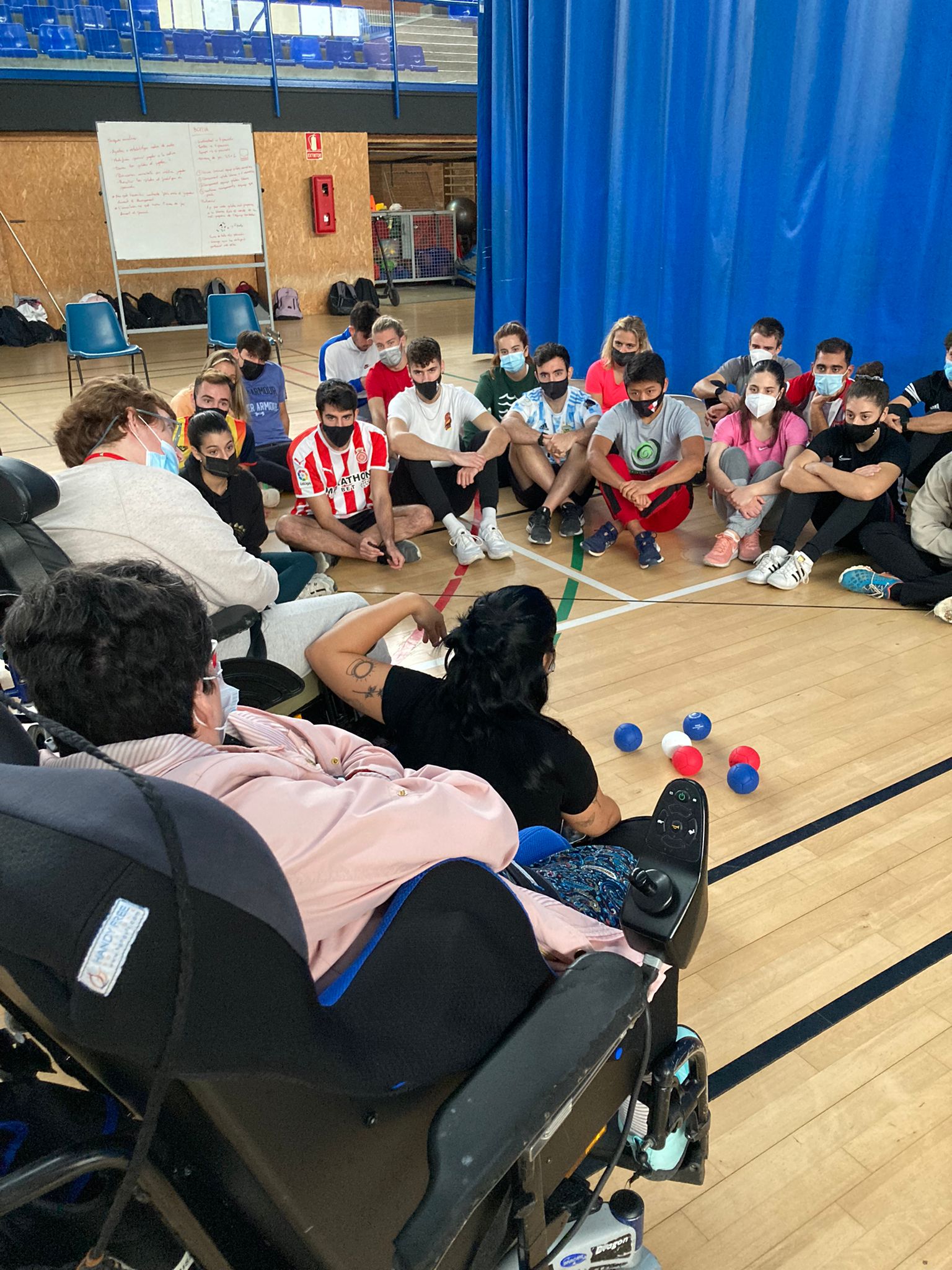 Els estudiants de tercer curs del Grau en Ciències de l’Activitat Física i de l’Esport van tenir l’oportunitat de conèixer de la mà de la Llar Oxalis la “boccia”, un esport que és una combinació de tàctica i habilitat i que es practica de manera individual, per parelles o equips sobre una pista rectangular. Semblant a la petanca, els jugadors tracten de llançar les seves boles el més a prop possible de la pilota blanca. Aquesta activitat es va emmarcar dins l’assignatura de “Persones amb alguna discapacitat” que imparteix la professora Estefania Plans.