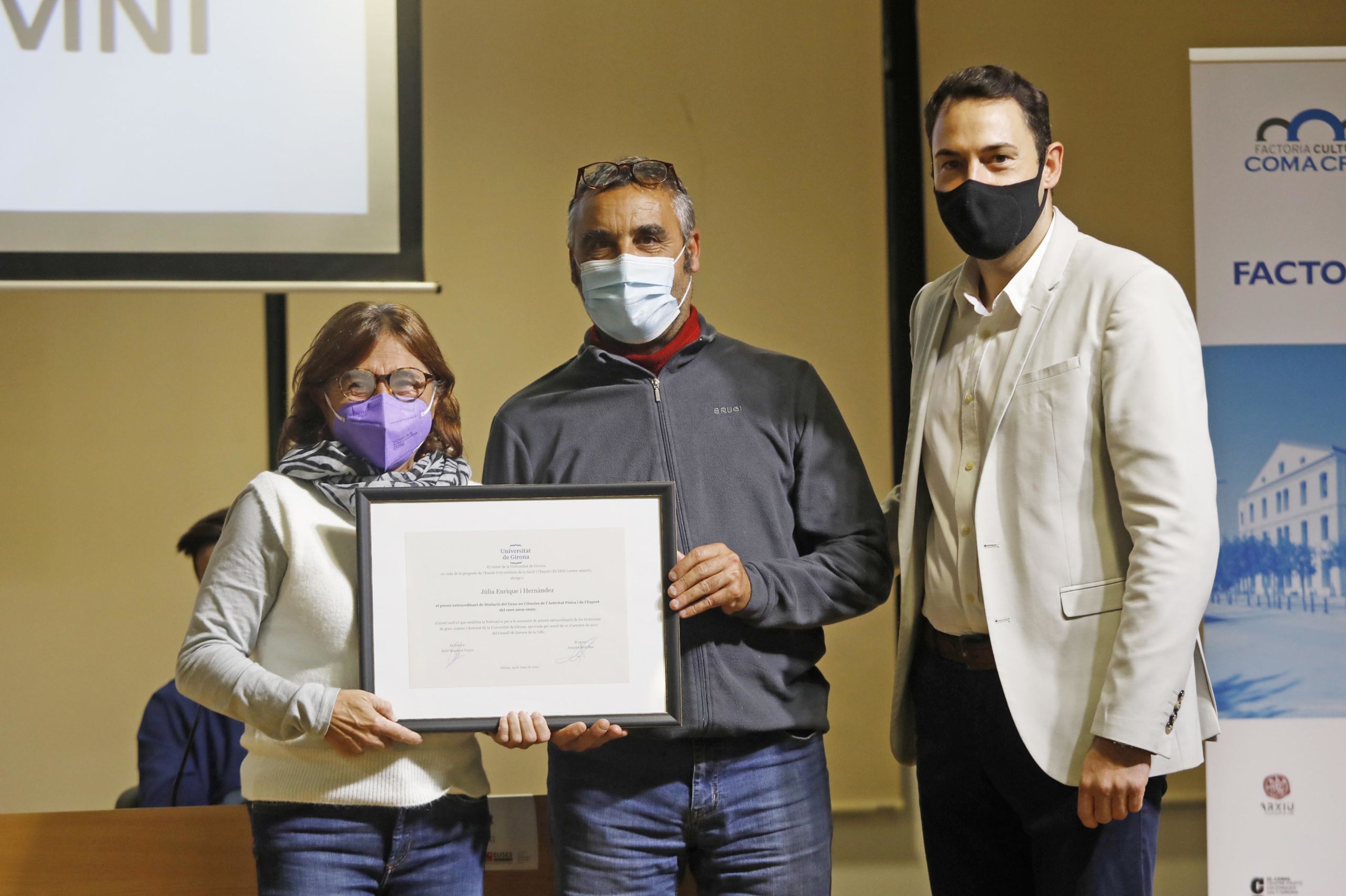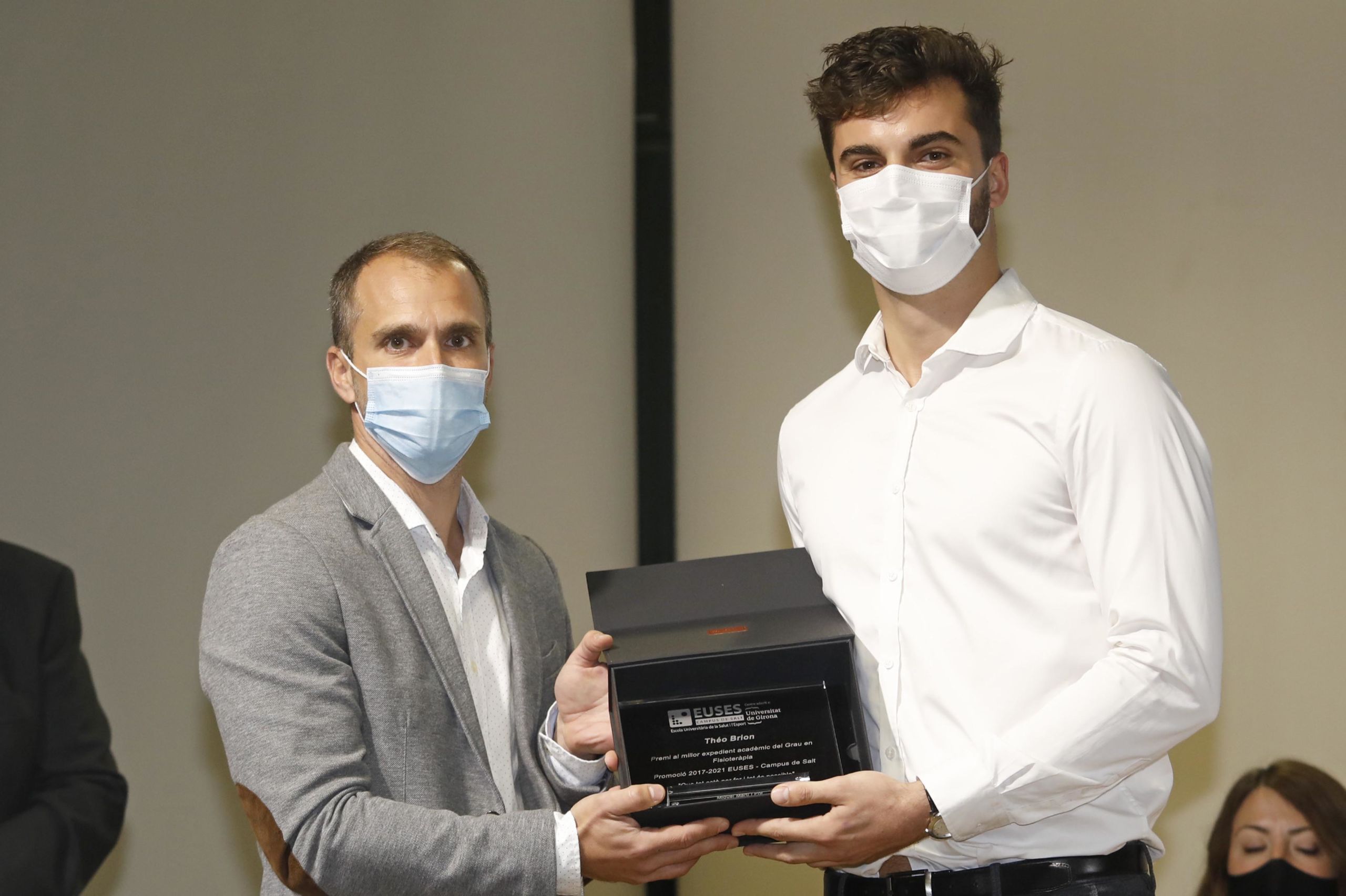 Durant la jornada, que ha estat presidida per l’alcalde de Salt, Jordi Viñas; i el Vicerector de Comunicació i Relacions Exteriors de la UdG, José Antonio Donaire, s’ha fet entrega dels premis als millors expedients dels Graus en CAFE del 2020 (Júlia Enrique) i 2021 (Robert Calderón); de Fisioteràpia 2020 (David Marí) i 2021 (Brion Théo) i de Physiotherapy 2020 (Lena Siqveland) i 2021 (Lucile Eline Gangloff). Aquestes dues últimes no han pogut assistir a l’acte, però han mostrat el seu agraïment en un vídeo. L’entrega dels premis extraordinaris ha anat a càrrec dels directors de Grau, Adrià Martín i Ernest Esteve, i la representant del COPLEFC, Martí Valverde. La IX Jornada Alumni, igual que l’Acte de Graduació, s’han emès en directe per streaming.