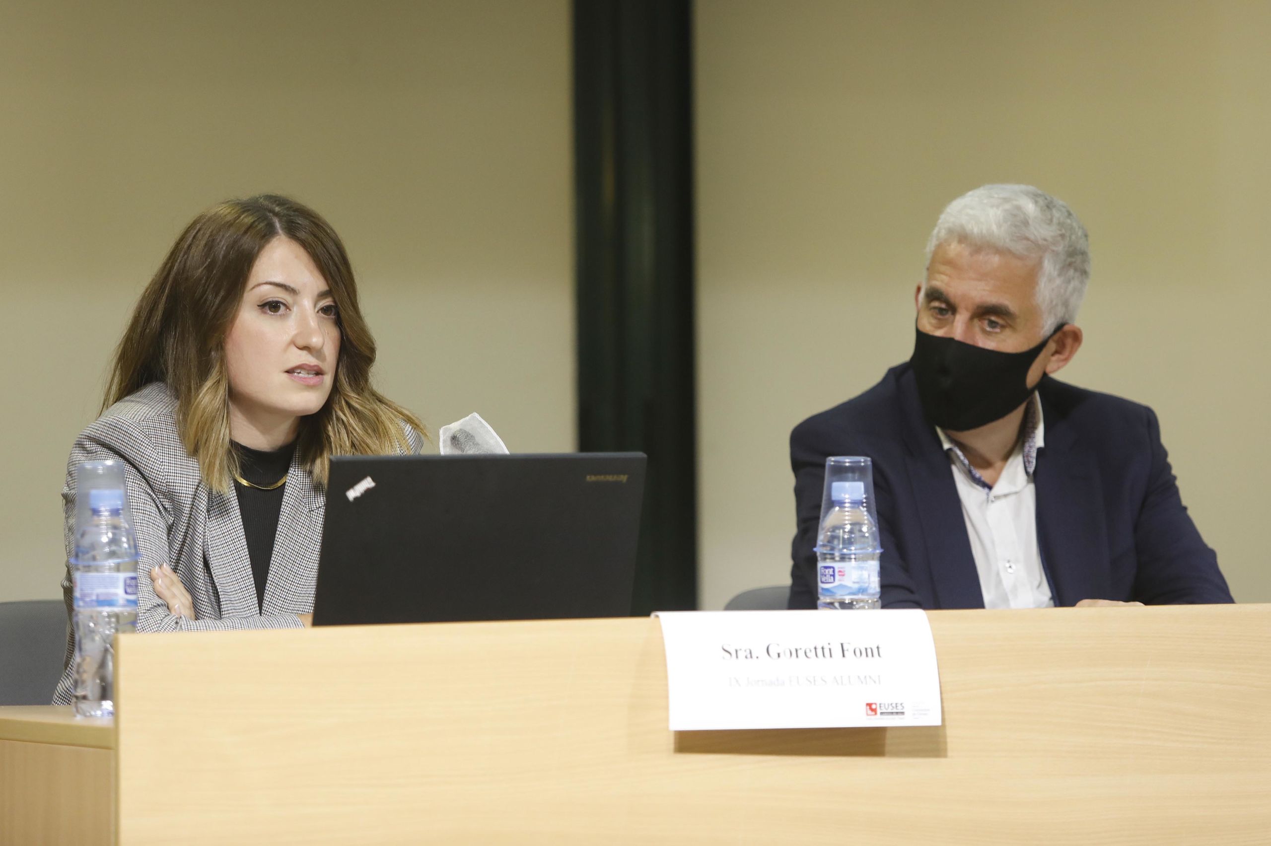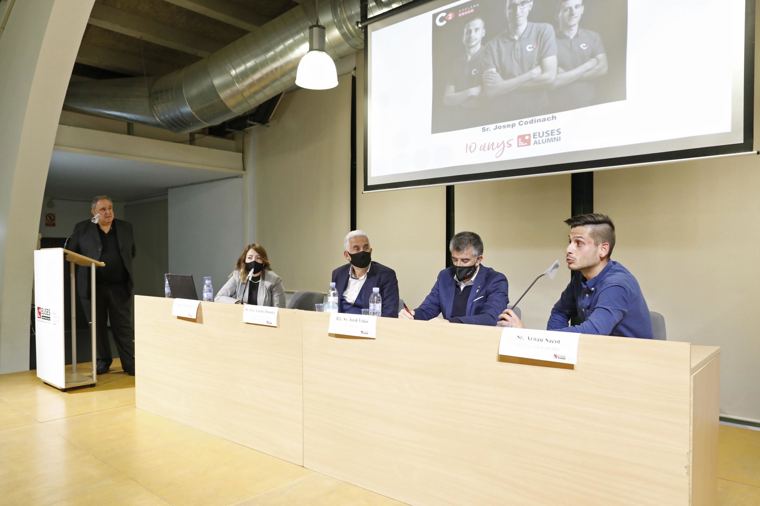Després de les paraules de la directora, ha estat el torn dels convidats. Goretti Font, de la promoció 2010/14, ha explicat la seva intensa activitat des que va entrar a l’EUSES fins avui. A banda d’obrir un centre de fisioteràpia a la ciutat (Gabinet Mèdic Girona), enguany ha tingut l’oportunitat d’estar en els Jocs de Toquio integrat en l’equip de fisioterapeutes del combinat de ciclisme del Comitè Olímpic de Canadà. A més d’estar molt vinculada de sempre al ciclisme professional, també ho ha estat en l’hoquei sobre gel treballant per les seleccions australiana i espanyola.