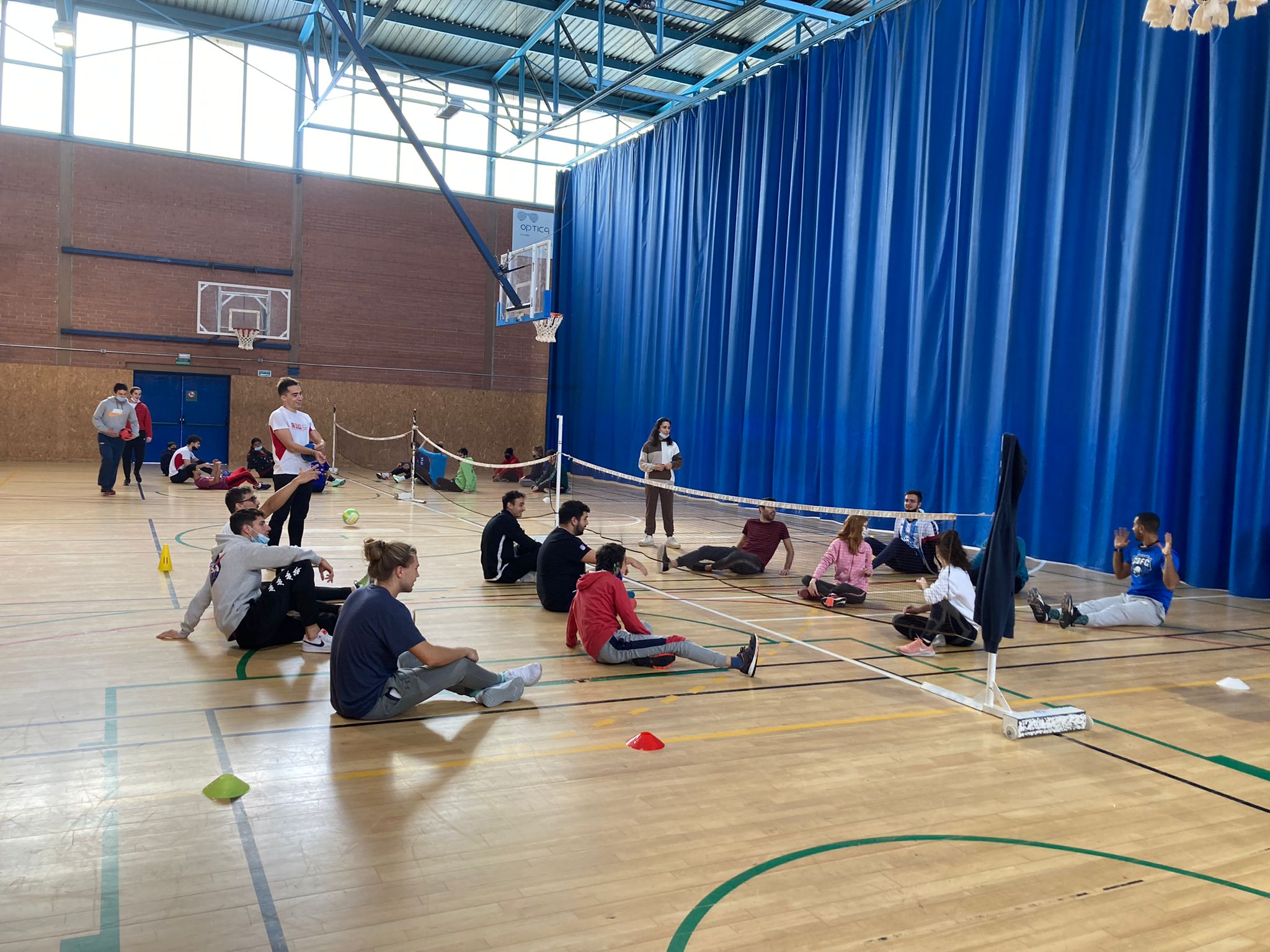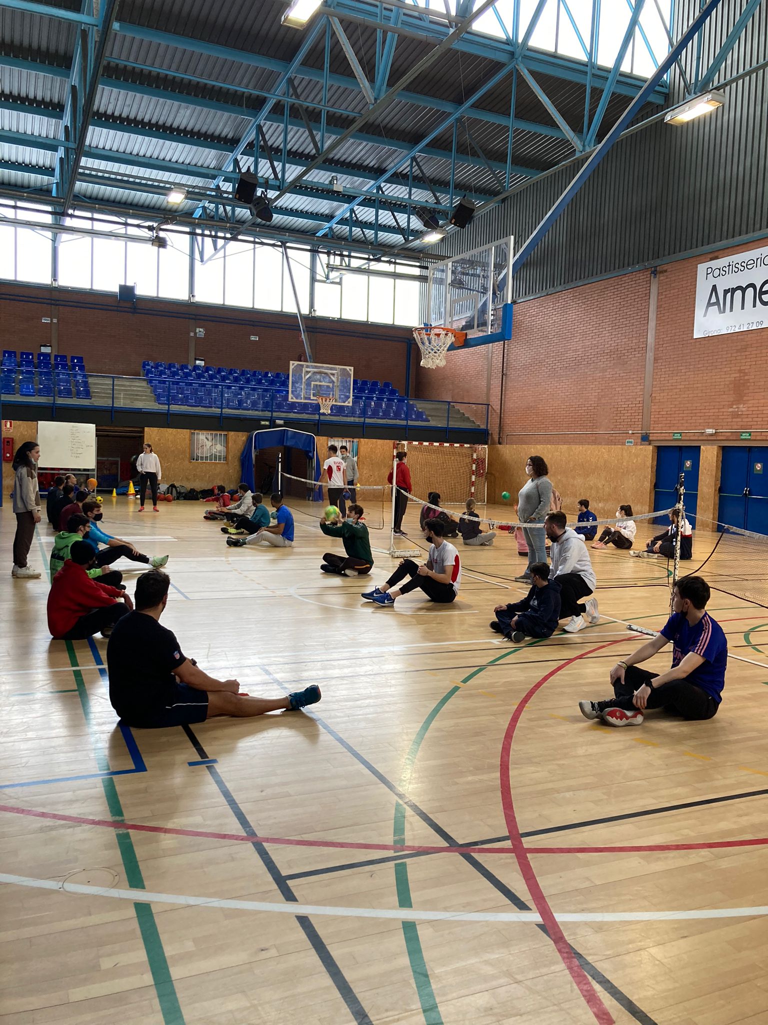 Actividad de voleibol sentado de los estudiantes de 3º curso de CAFyD con alumnos del CEE La Massana