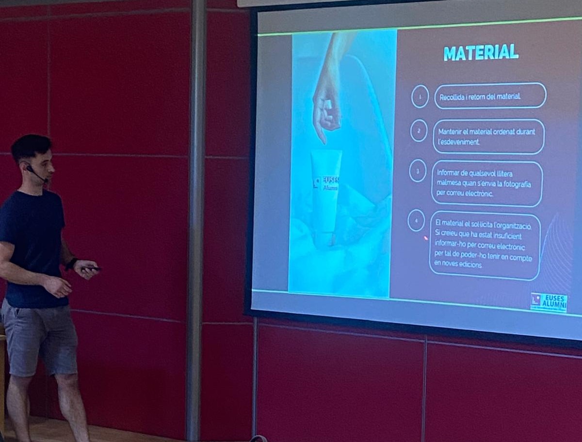 Este sábado ha tenido lugar en el Aula Magna de EUSES del Campus de Salt la tradicional Jornada de Tutores organizada por EUSES Alumni, que este año ha llegado a su undécima edición y que, además de presencialmente, también se pudo por streaming. La jornada, realizada con posterioridad al seminario “Abordaje Neurodinámico de las radiculopatías”, constó de dos partes. En la primera, la directora de EUSES Alumni, Sílvia Roche, explicó las líneas maestras de la asociación e incidió especialmente en los voluntariados. La segunda exposición, a cargo del profesor de Prácticum Beñat Garmendia fue más técnica y se explicó a los asistentes sobre como aplicar correctamente los tratamientos.