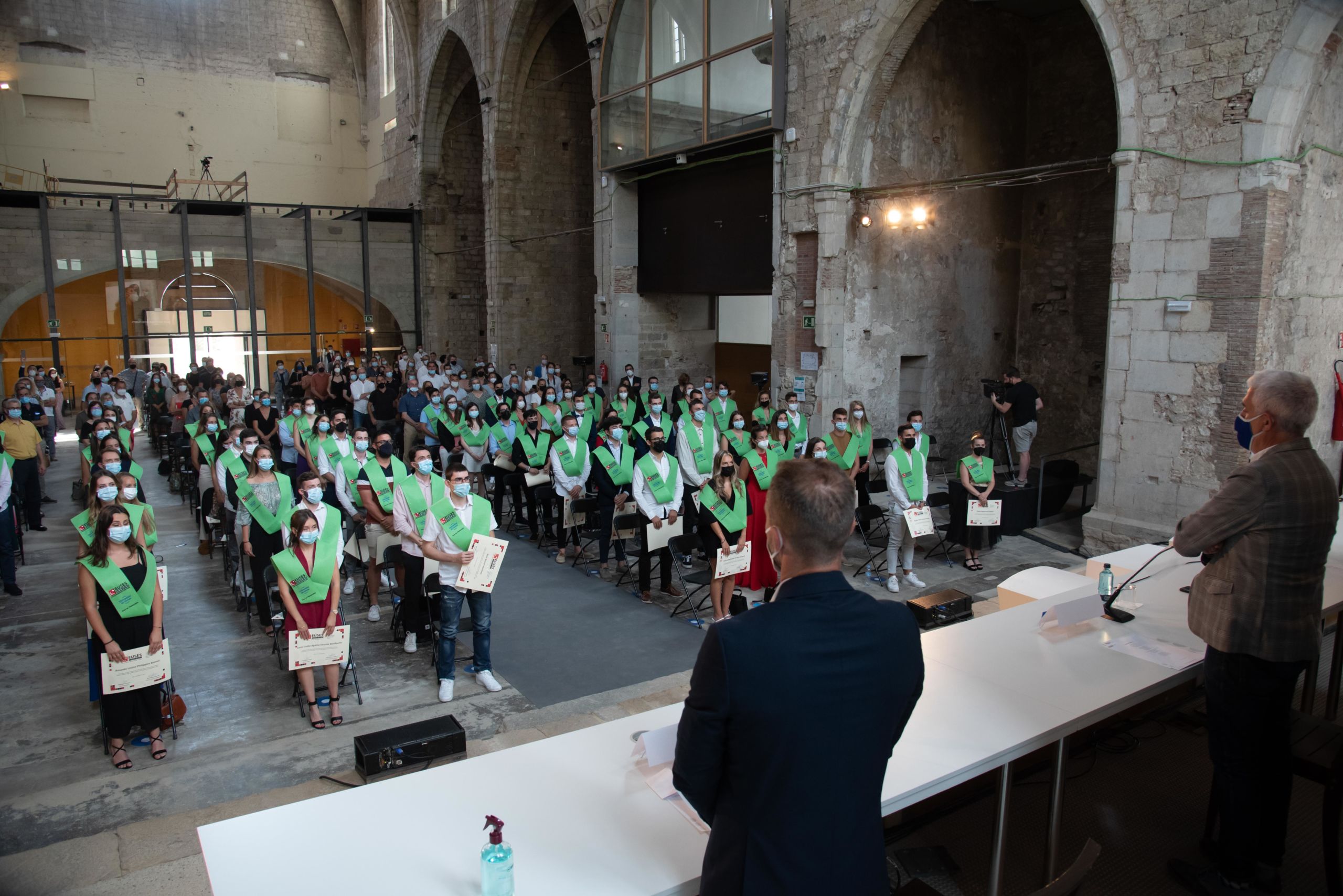 Este martes ha tenido lugar en el aula Magna Modest Prats, situada en el Campus del Barri Vell de la UdG, el acto de Graduación de la novena promoción del Grado en Fisioterapia de la Escola Universitària de la Salut i l’Esport, con la presencia de 65 estudiantes que han completado el ciclo de cuatro años en EUSES. La ceremonia ha contado con la presencia del Vicerrector de Comunicación y Relaciones Exteriores de la UdG, el Dr. José Antonio Donaire, que ha abierto y cerrado el acto de graduación. También se han dirigido a los nuevos graduados el Director Académico de EUSES-UdG, Sr. Rafel Magrinyà; y el director del Grado en Fisioterapia, Dr. Ernest Esteve. Después de la entrega de los Diplomas y antes del acto de entrega de las placas y las orlas, los alumnos Sra. Marie Maldonado y Sr. Luis Enrique Lombardo han dirigido unas palabras como representantes de los estudiantes de la promoción 2017/2021. El acto se ha cerrado con la tradicional cantada del himno universitario Gaudeamus Igitur.