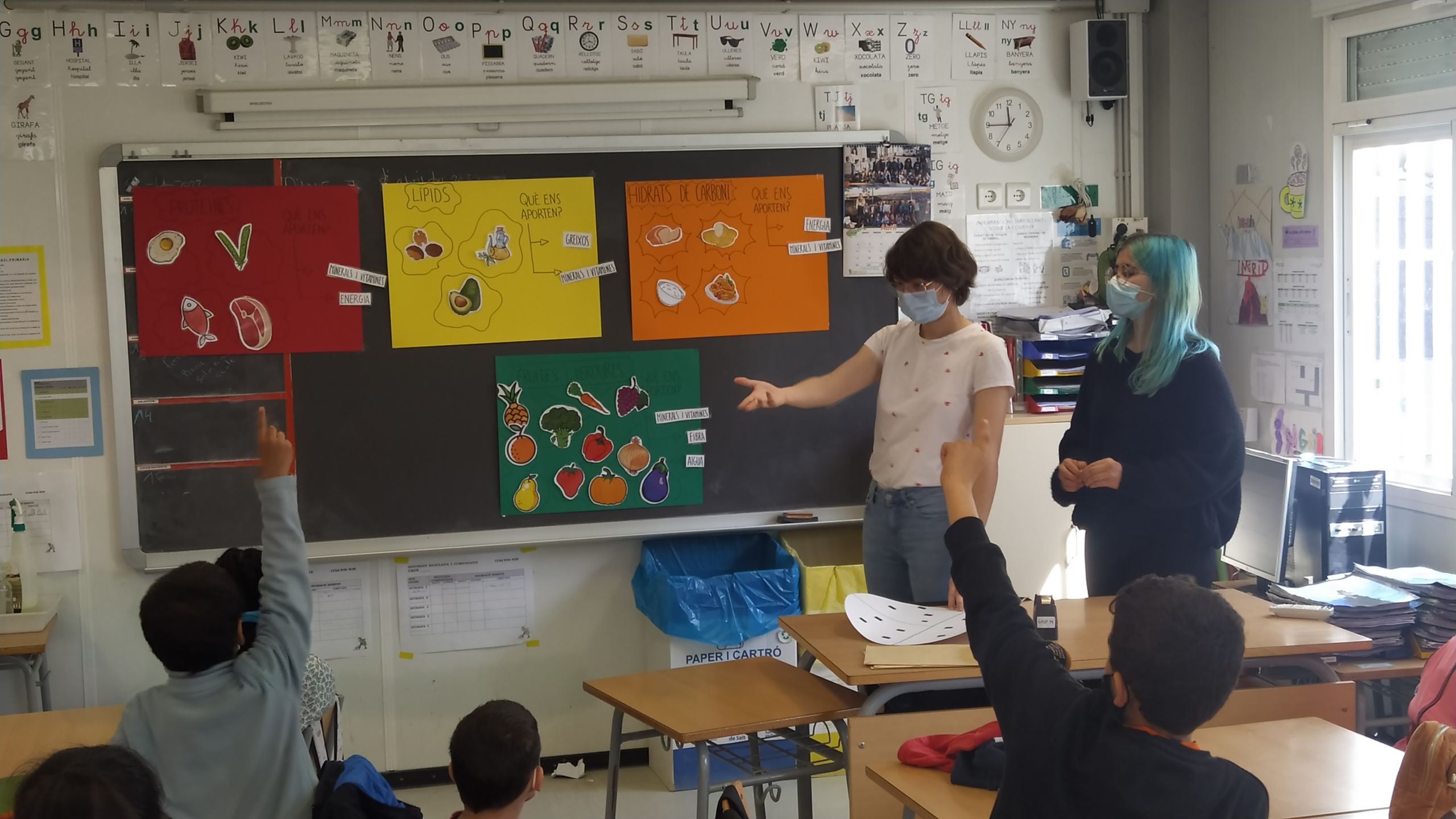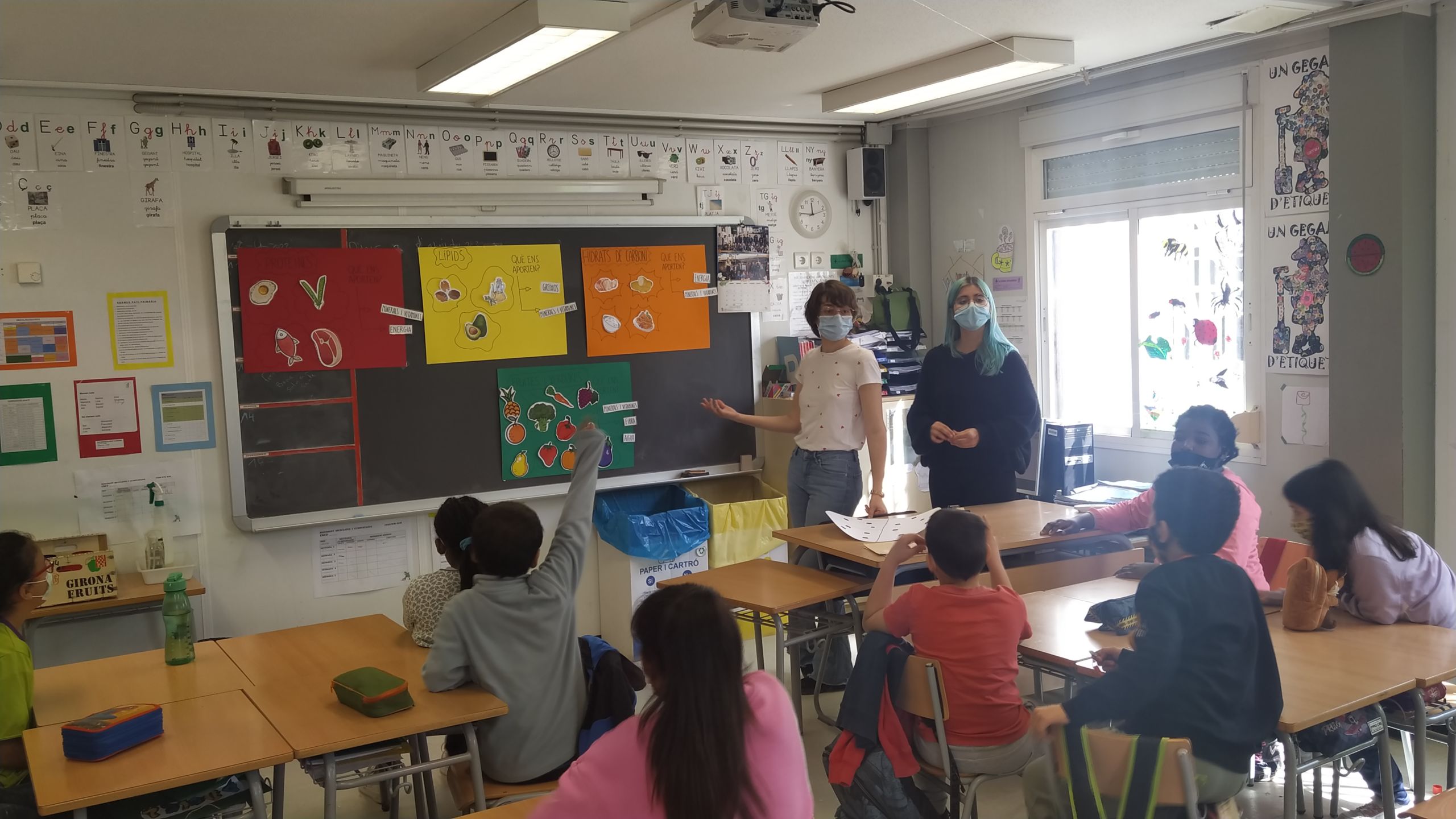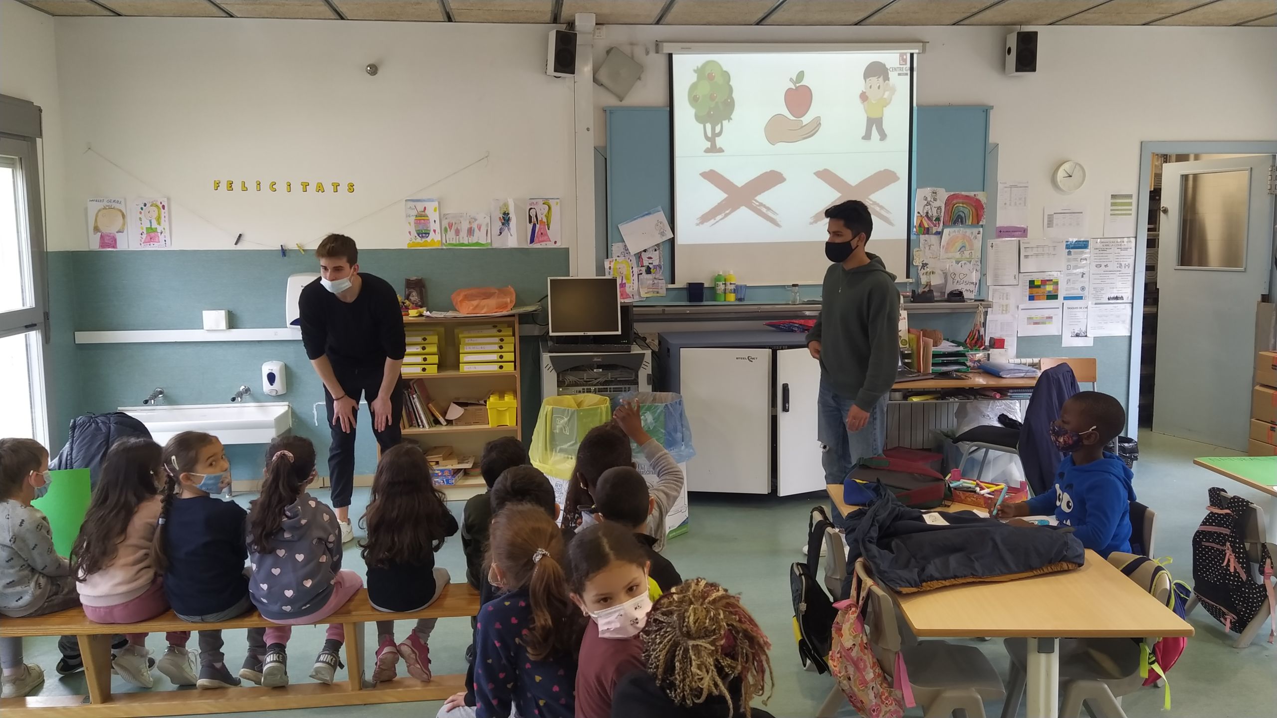Los estudiantes del Ciclo Formativo de Grado Superior de Técnico en Dietética han realizado recientemente una acción en la escuela de Salt “El Gegant del Rec” coincidiendo con la celebración de la Semana de la Actividad Física y la Salud (SAFIS) de Salt. A petición de la misma escuela, se pidió a los responsables de este ciclo que se imparte en el Centre Garbí una colaboración orientada a la alimentación saludable. De este modo, y durante todo el día, los estudiantes de 1º y 2º curso del Ciclo de Dietética se organizaron y dividieron para realizar charlas (en formato de cuentos) para los más pequeños y talleres prácticos para los más grandes a un total de 23 grupos de clases entre P3 y 6º de primaria de la citada escuela «El Gegant del Rec».