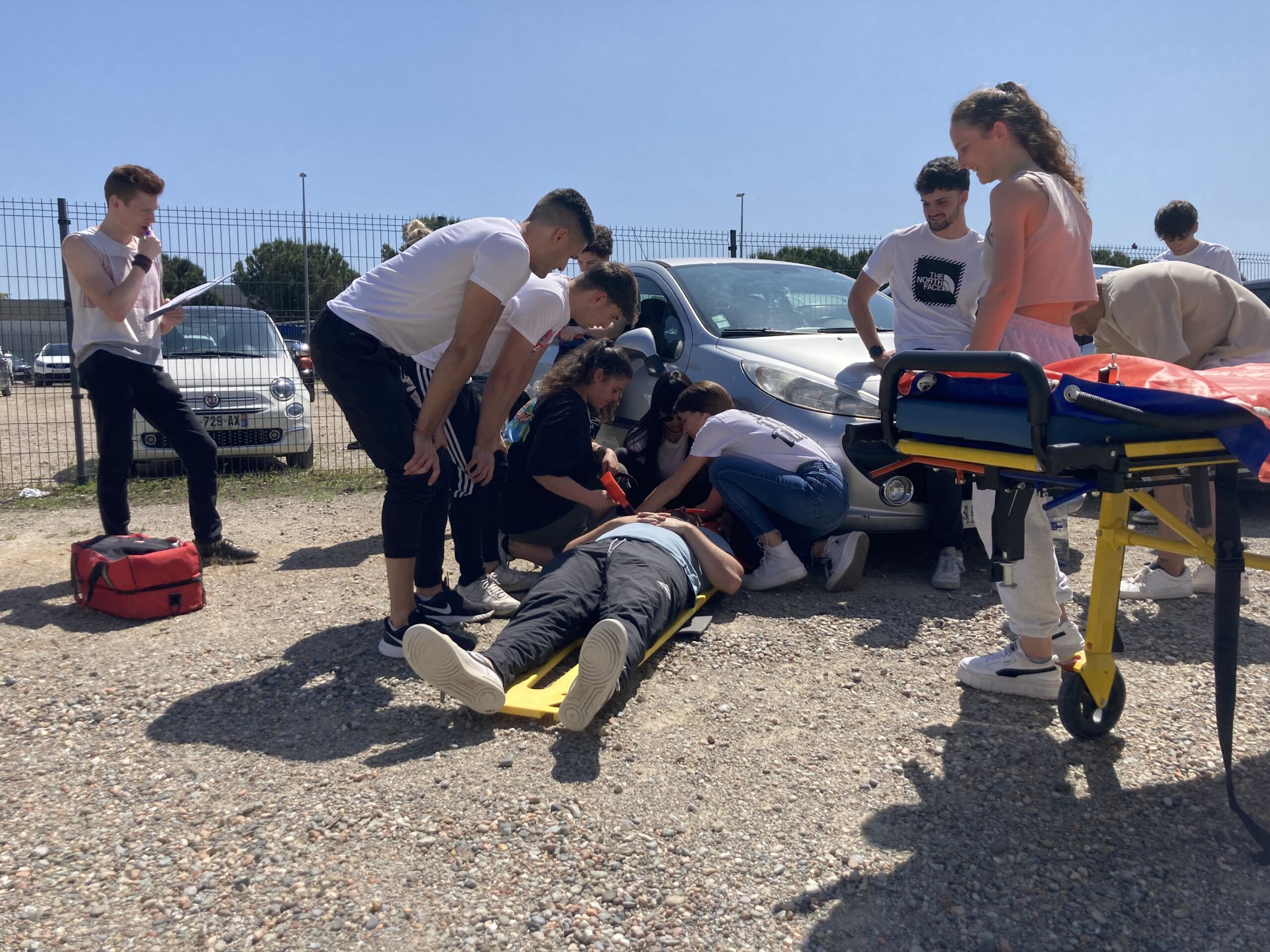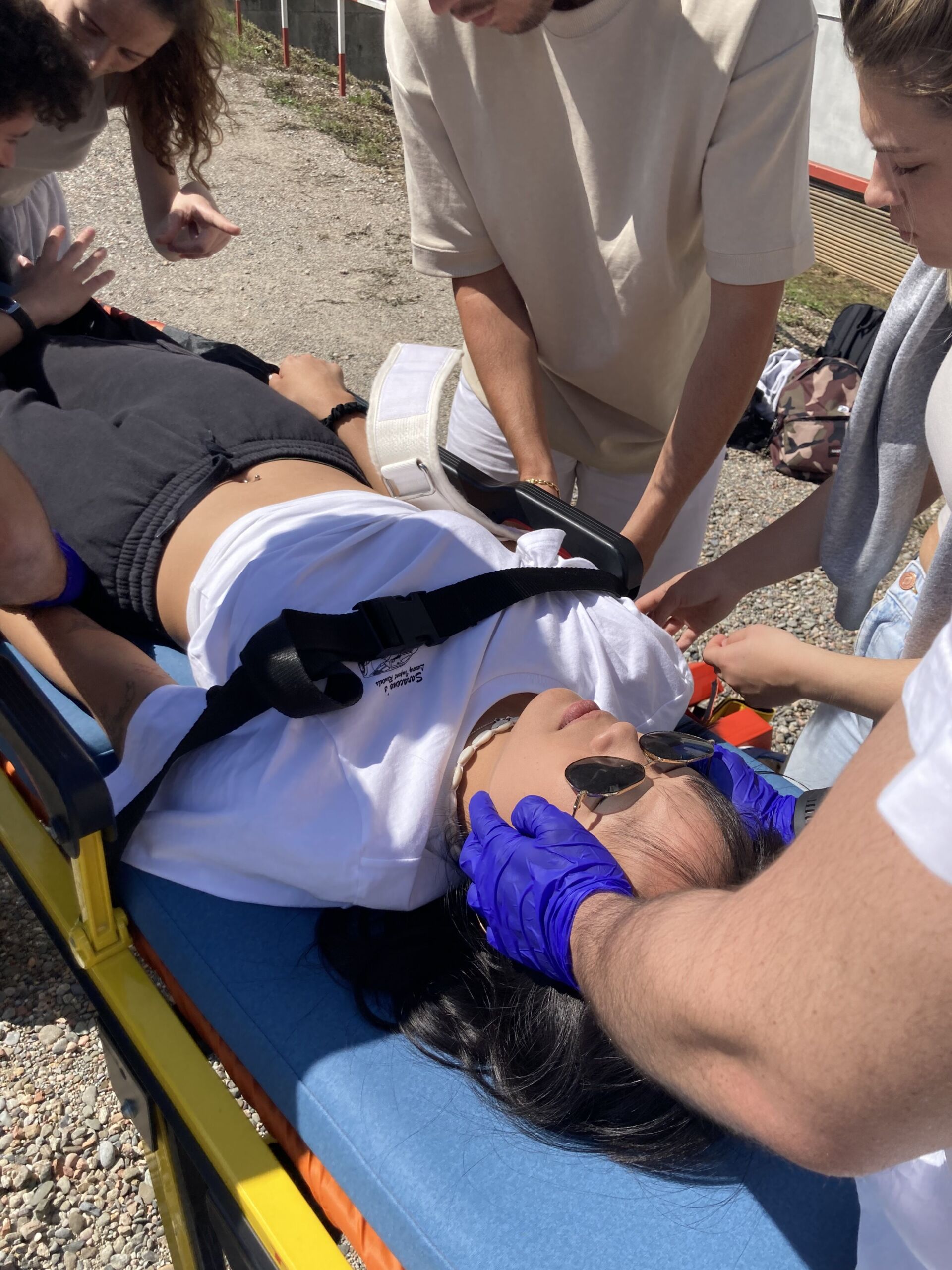 Los estudiantes de 2.º curso del Ciclo Formativo de Grado Medio del Centre Garbí de Técnico en Emergencias Sanitarias han realizado este miércoles en el exterior del Campus de Salt unos ejercicios prácticos simulando actuaciones que se pueden encontrar los técnicos en TES en su día a día. En una sesión dirigida por los profesores de la asignatura M14 Bloque 6 (Síntesis) Eduard Torner y Raül Lang, los alumnos se han evaluado formando grupos y, a través de Debriefing, han podido rectificar y mejorar las habilidades y técnicas en las actuaciones.