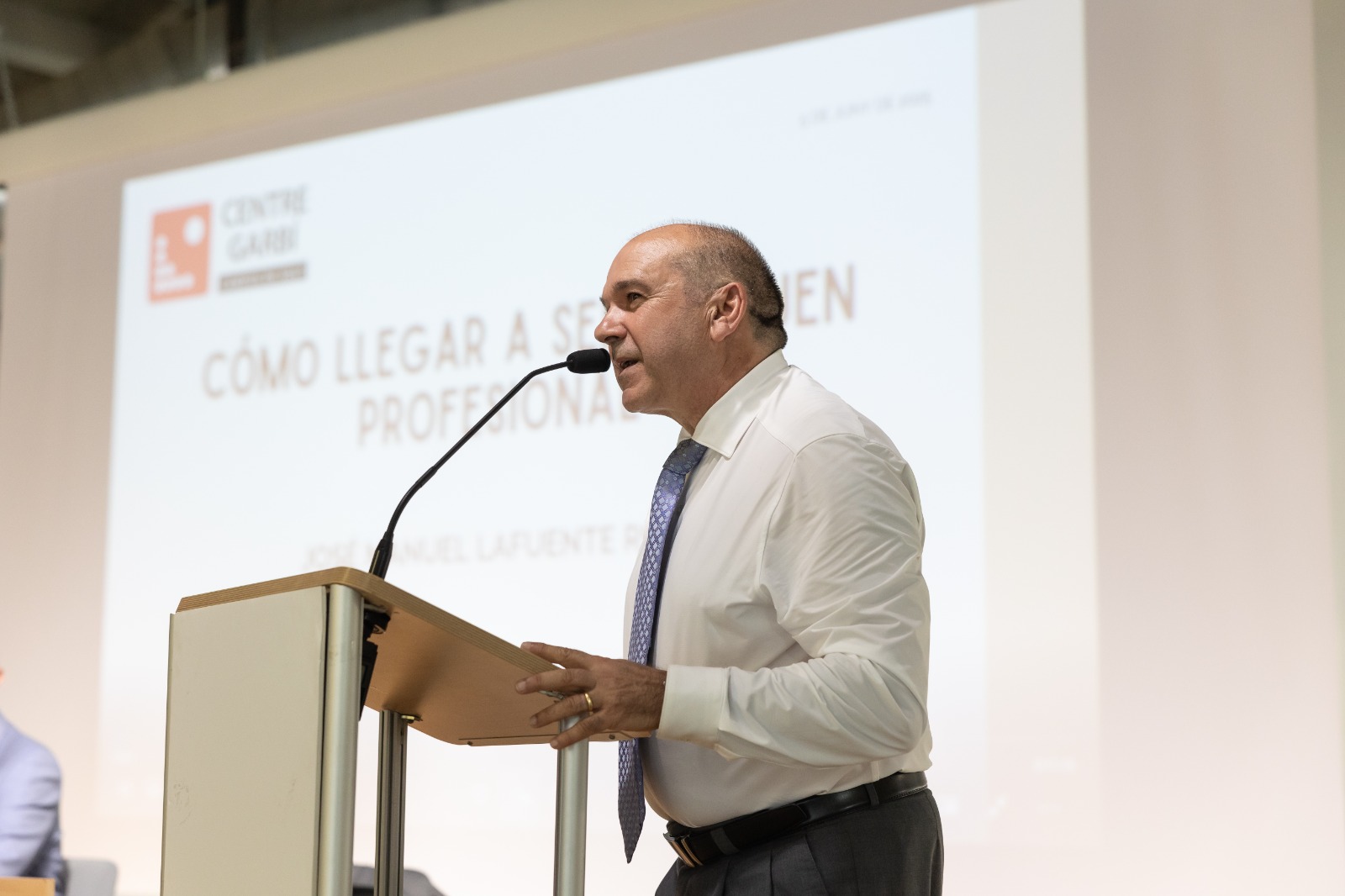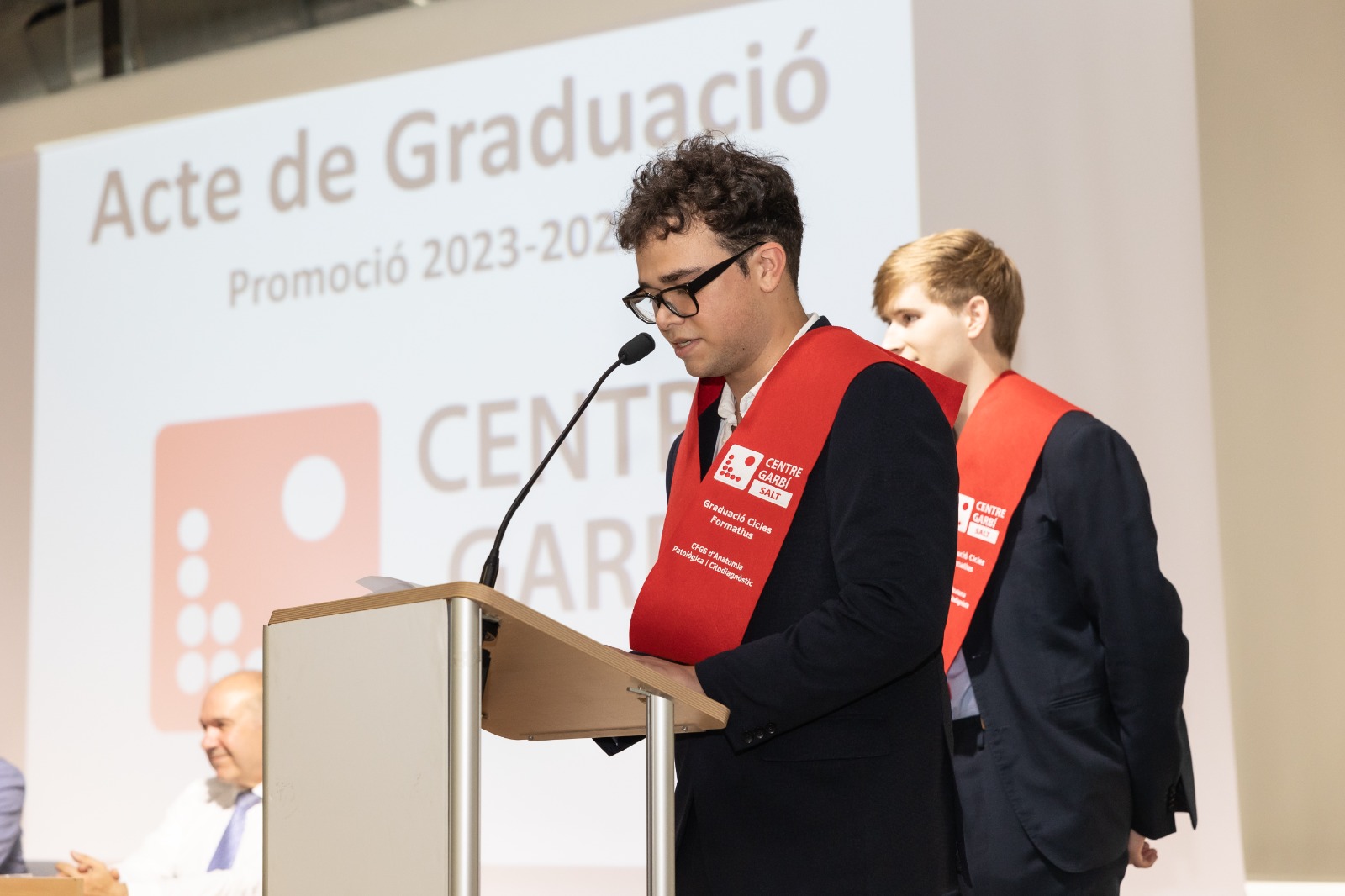 El acto empezó con la entrada por orden de estudio y alfabéticamente de los cerca de cien nuevos graduados (15 de APIC, 22 de Dietética, 29 de Imagen y 27 de TES). La presentación fue a cargo del director del Centre Garbí, Ferran Thomas, que integró la mesa presidencial conjuntamente con Sílvia Roche (directora de Garbí Alumni), José Manuel Lafuente (profesor del Centre Garbí muy querido por todos y que se jubila después de trece años de dedicación como docente en este centro) y Antoni Vidal (Teniente de Alcaldía del Área de Servicios Generales, Económicos y Govern Obert y regidor de Cultura, Fomento de la ocupación y Economía Social del Ayuntamiento de Salt).