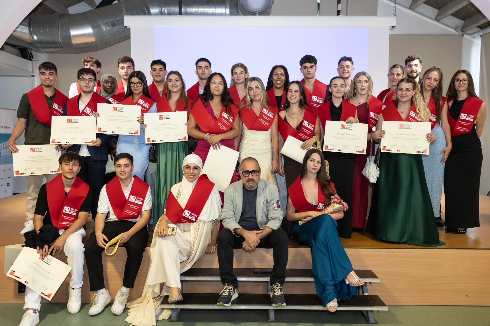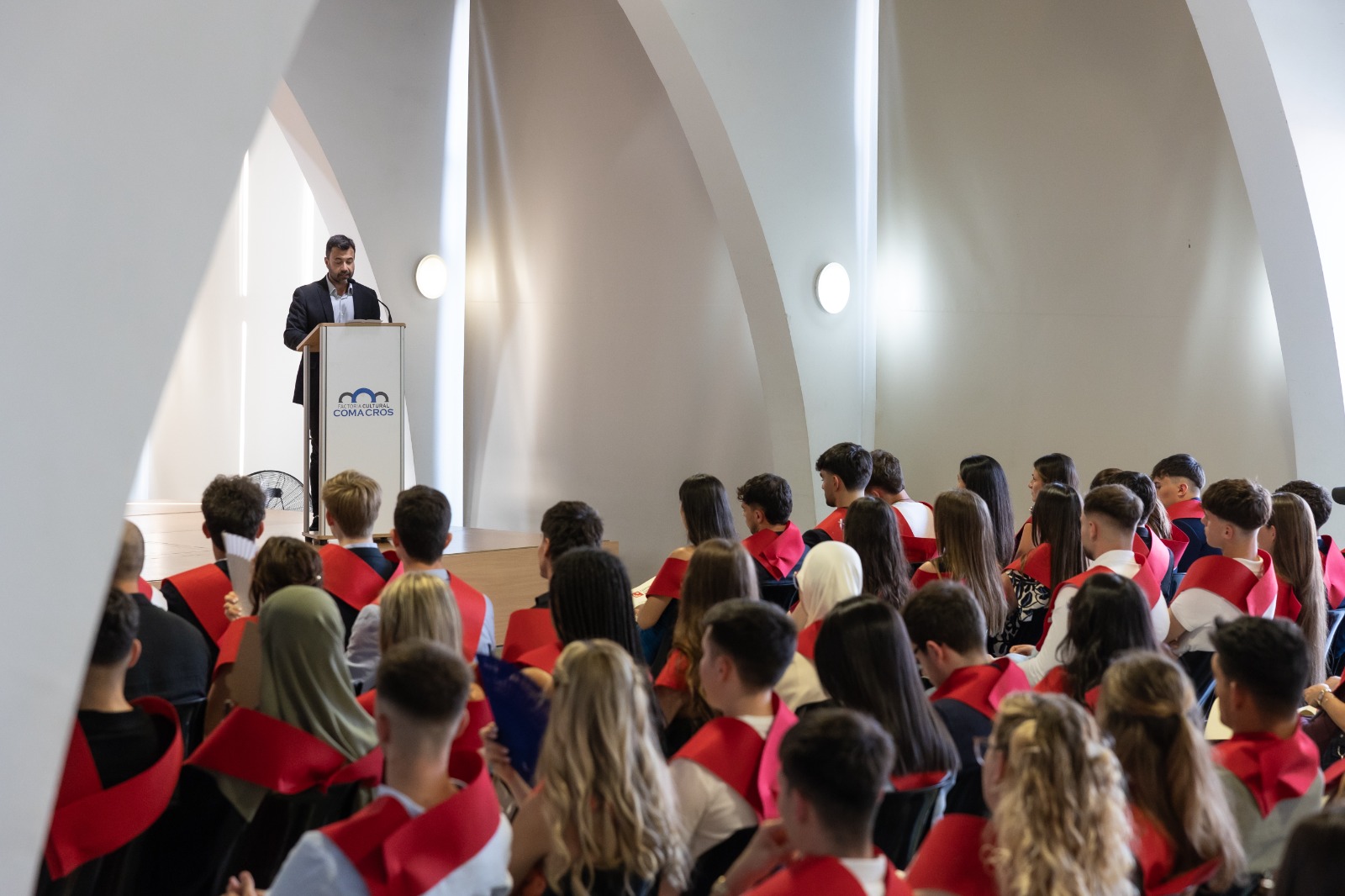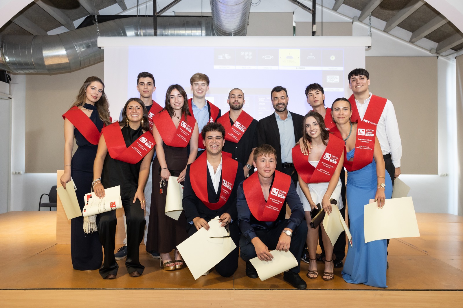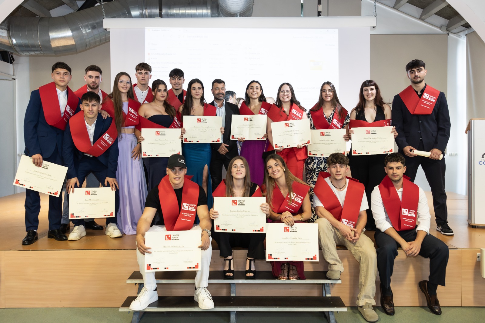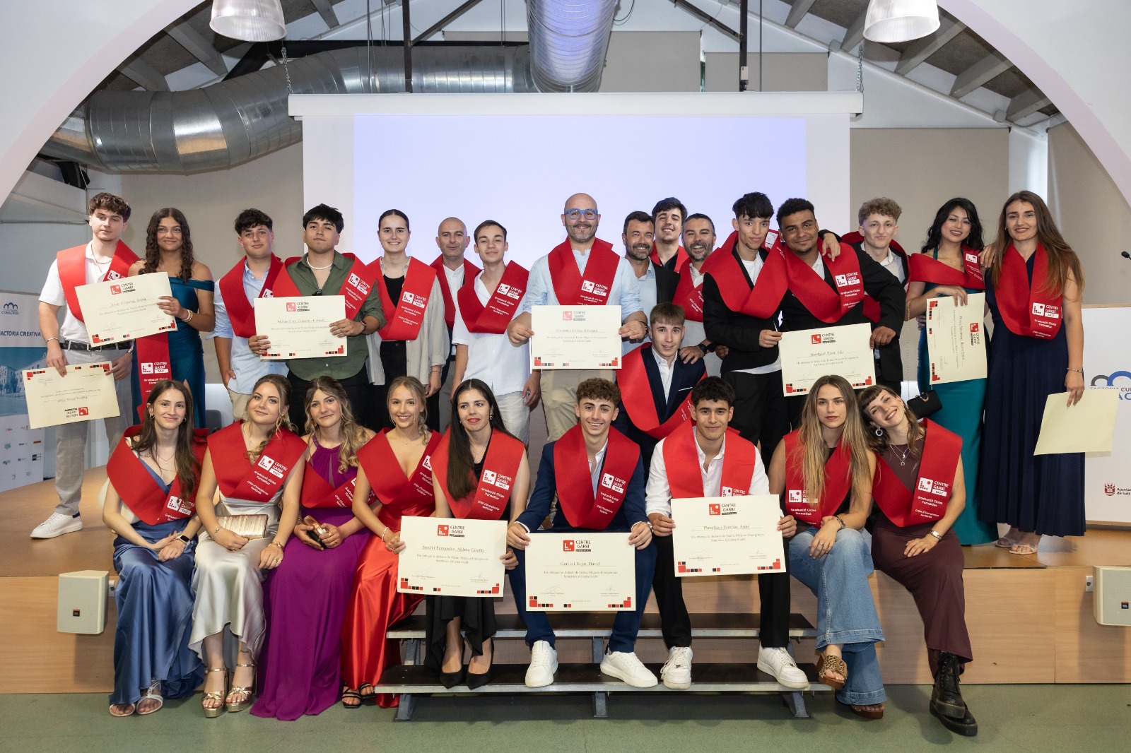 El Centre Garbí cerró el curso académico 2024/2025 con el solemne acto de graduación de los estudiantes que iniciaron los diferentes ciclos formativos el curso 2023/2024 y que ya han obtenido el título que les abrirá las puertas del mercado laboral y profesional. El acontecimiento tuvo lugar en el Auditorio de la Coma Cros, que una vez más se llenó por completo con familiares de los nuevos graduados que han obtenido la recompensa después de dos años de esfuerzo y dedicación.