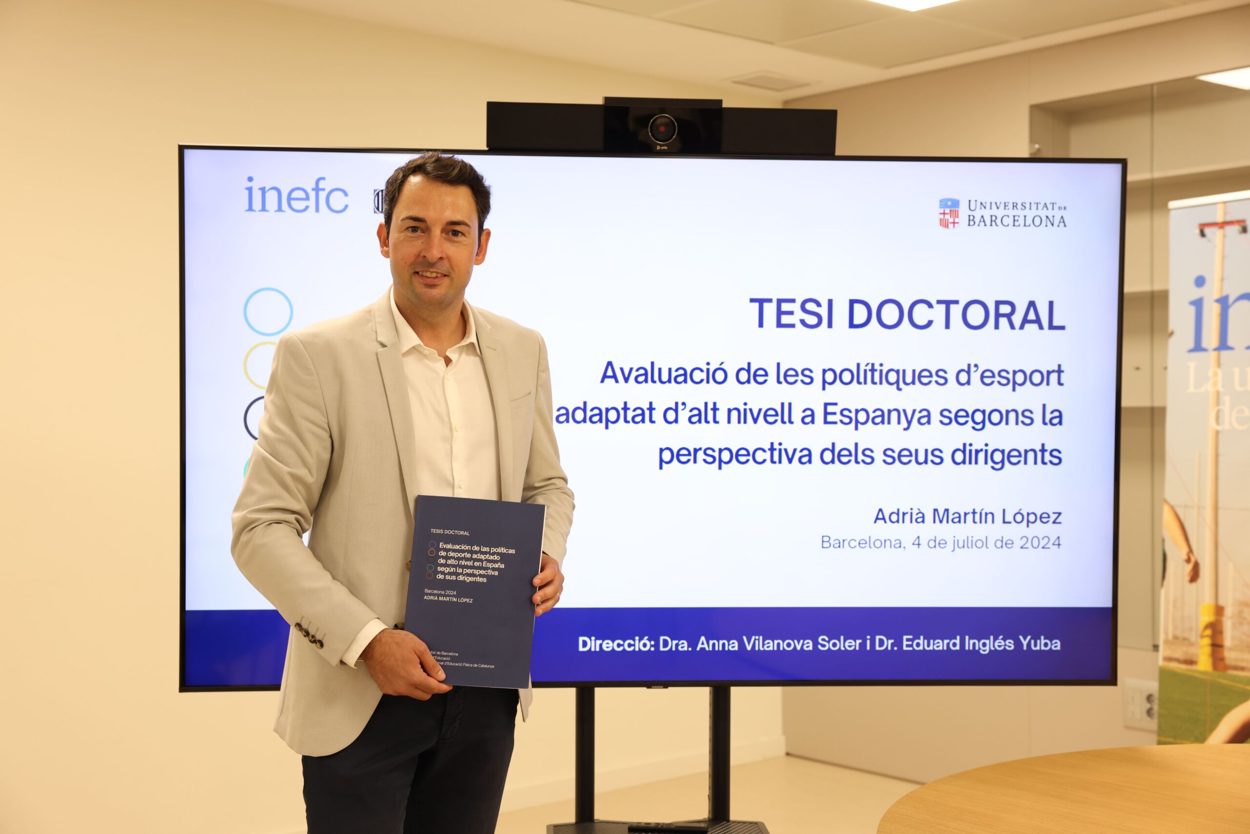 El pasado 4 de julio, el director y profesor del Grado en Ciencias de la Actividad Física y del Deporte (CAFyD), Adrià Martín, defendió con éxito su tesis doctoral titulada “Evaluación de las políticas de deporte adaptado de alto nivel en España según la perspectiva de sus dirigentes” en el INEFC de Barcelona.