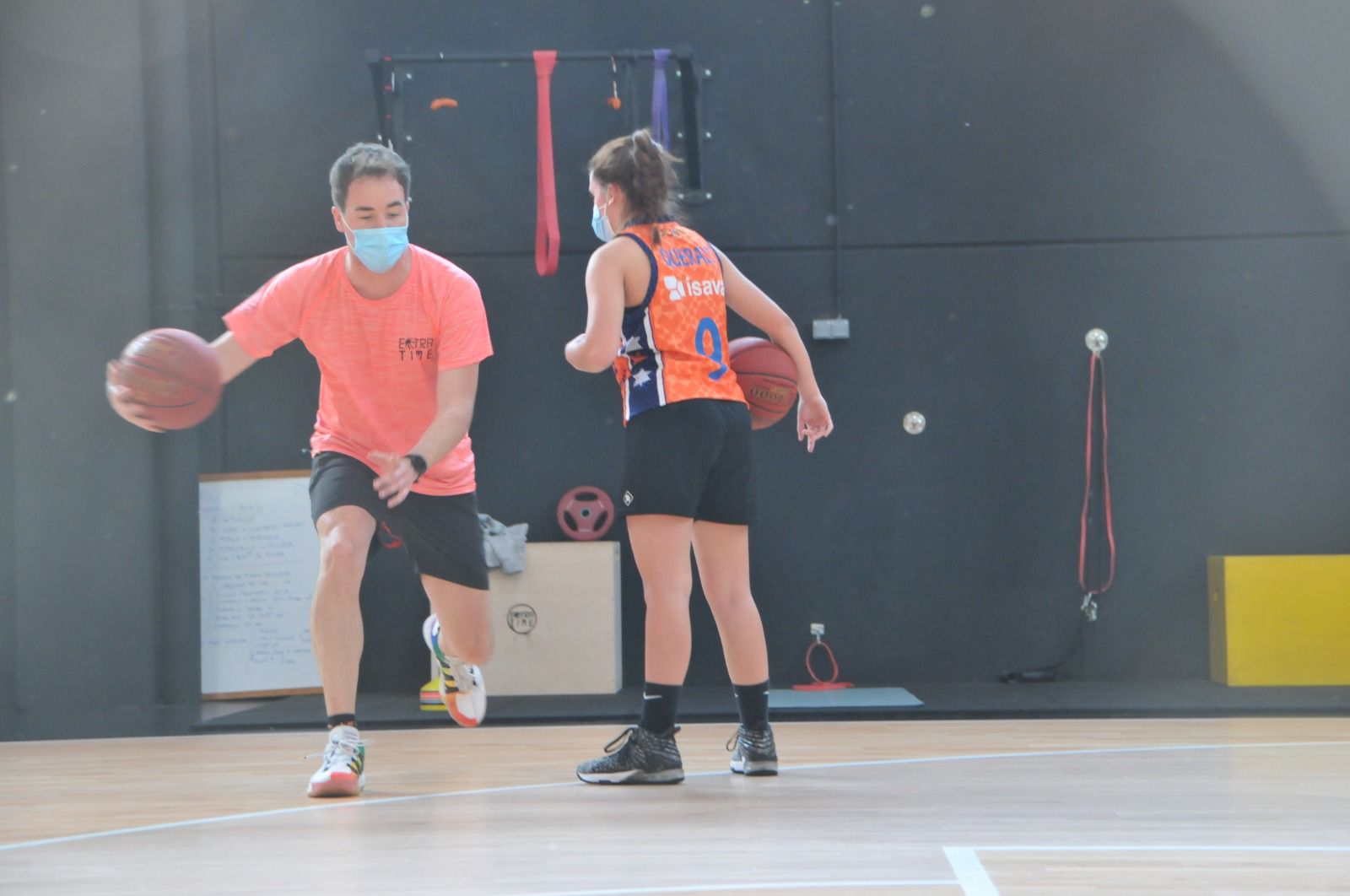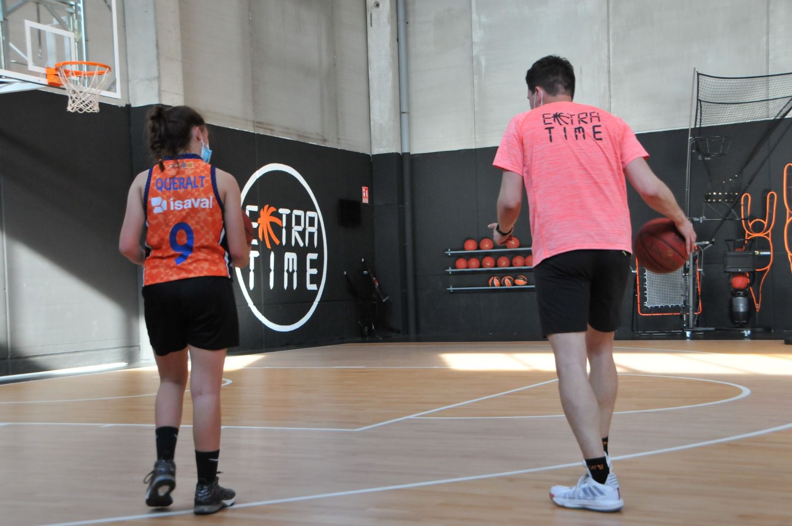 “Extra Time es un centro de tecnificación no elitista. Nosotros venimos de la calle y nuestro objetivo es que la gente pueda entrenarse y mejorar conceptos individuales pagando lo mismo que si lo hiciera en un pabellón municipal”, explica Guillem Casas. La idea inicial de los fundadores de Extra Time era hacer crecer este proyecto en alguno de los muchos pabellones de las comarcas gerundenses que están infrautilizados, hasta que finalmente se valoró la posibilidad de alquilar un local y organizar ellos mismos el negocio sin depender de ningún Ayuntamiento. “Encontramos una nave en Fornells de la Selva y la hemos condicionado como centro de tecnificación. En 500 o 600 metros cuadrados hemos montado media pista reglamentaria Fiba y una pista un poco más pequeña. En definitiva, son tres medias pistas que nos dan muchas posibilidades para hacer el trabajo de tecnificación. También disponemos de un espacio para hacer ejercicios de dominio del balón, como el bote y el pase; un gimnasio y una zona también para los padres”, explica Guillem Casas, que destacó la implicación de su hermana en este proyecto. “Queríamos transmitir a los jóvenes la importancia del esfuerzo y ella, que lo ha ganado prácticamente todo, ha sido la primera en predicar con el ejemplo. Empezaba a entrenarse a las siete y cuando los jóvenes llegaban sobre las nueve, viéndola se daban cuenta que para llegar a la élite hace falta mucha constancia y horas de entrenamiento”.