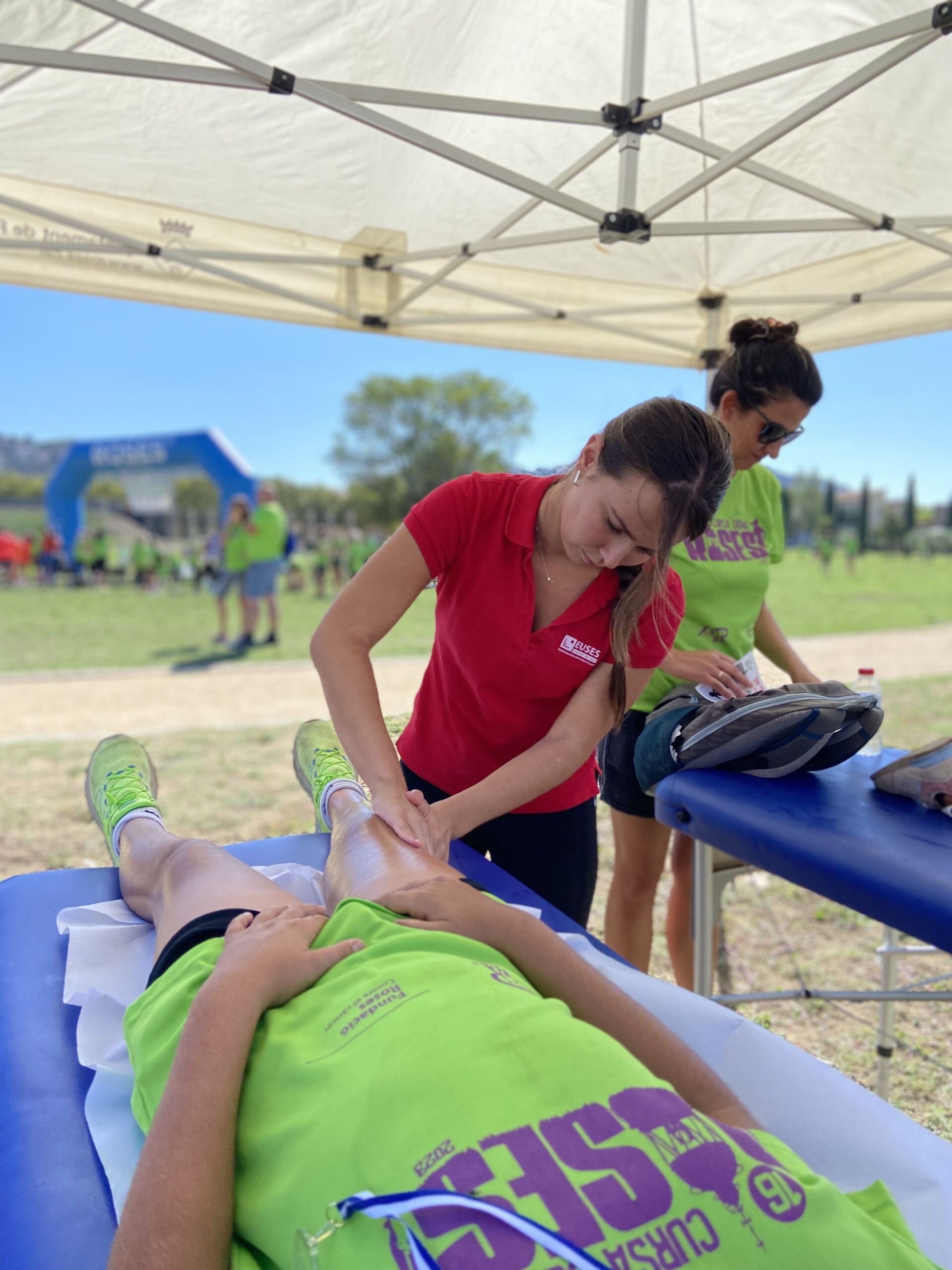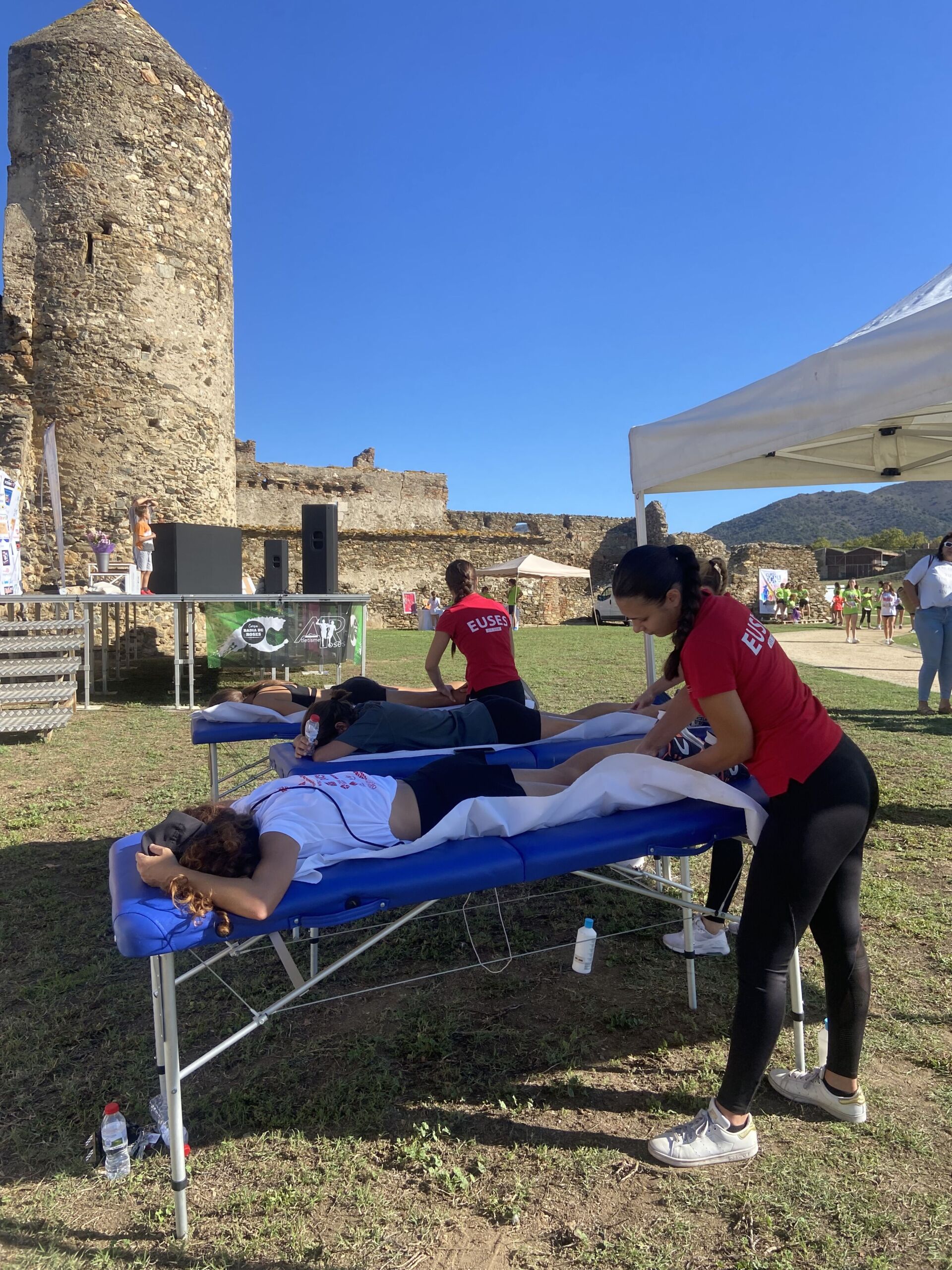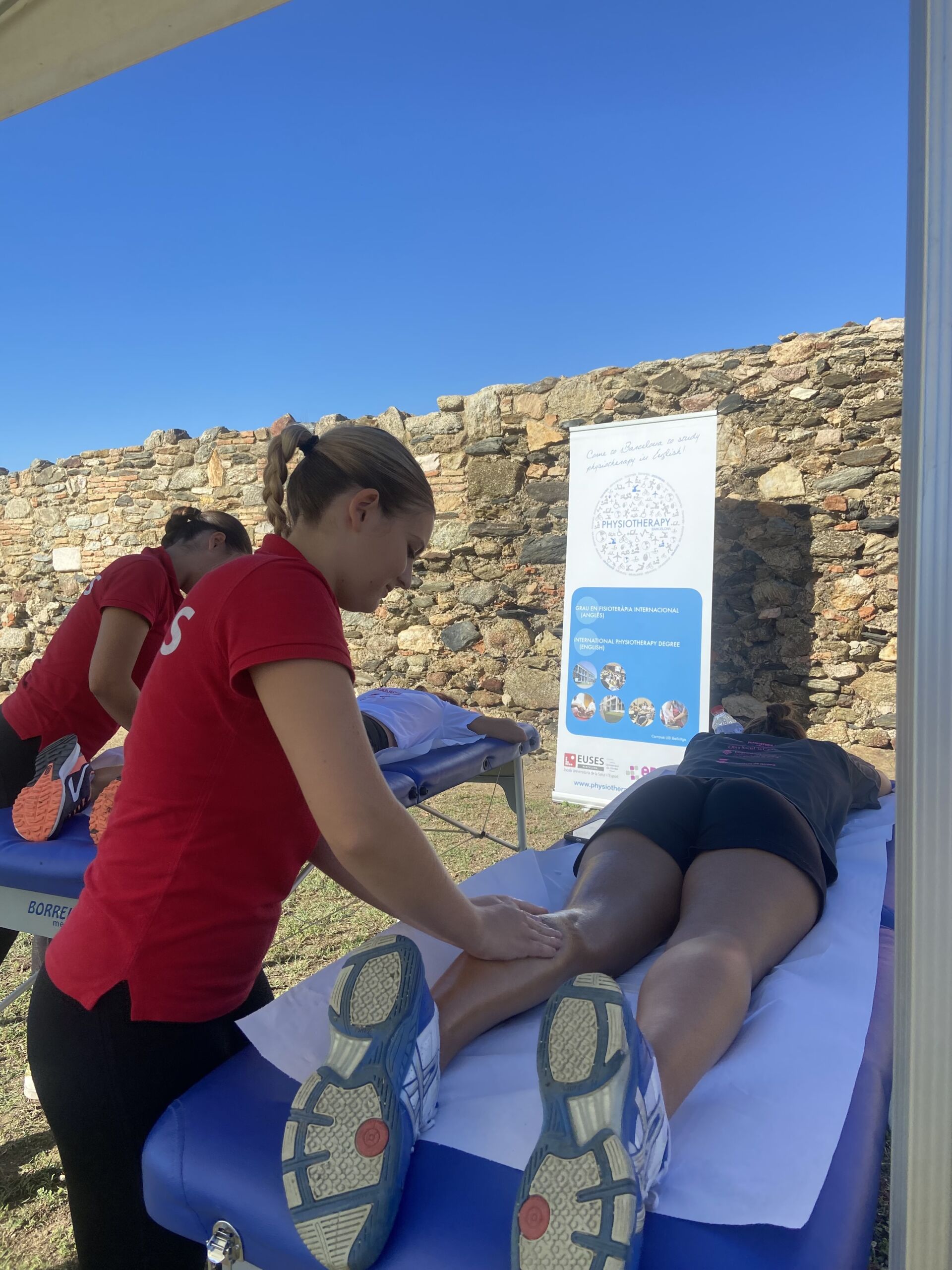 La Escola Universitària de la Salut i l’Esport puso su grano de arena este domingo en la “Cursa de la Dona” de Roses con un servicio de fisioterapia al final de la prueba donde las participantes pudieron recuperarse muscularmente después del esfuerzo. La carrera, 100% solidaria a favor de la Fundació Roses Contra el Cáncer, tuvo un recorrido de 5 kilómetros por las calles de la villa y reunió a numerosas participantes. Al final del recorrido, y bajo la supervisión de la fisioterapeuta de EUSES Alumni Alba Saavedra, los estudiantes del Grado Loly Aginor, Melisa Ferrer, Albane Danvel y Roman Mur realizaron técnicas de recuperación (básicamente masajes y estiramientos) a las deportistas que así lo desearon.