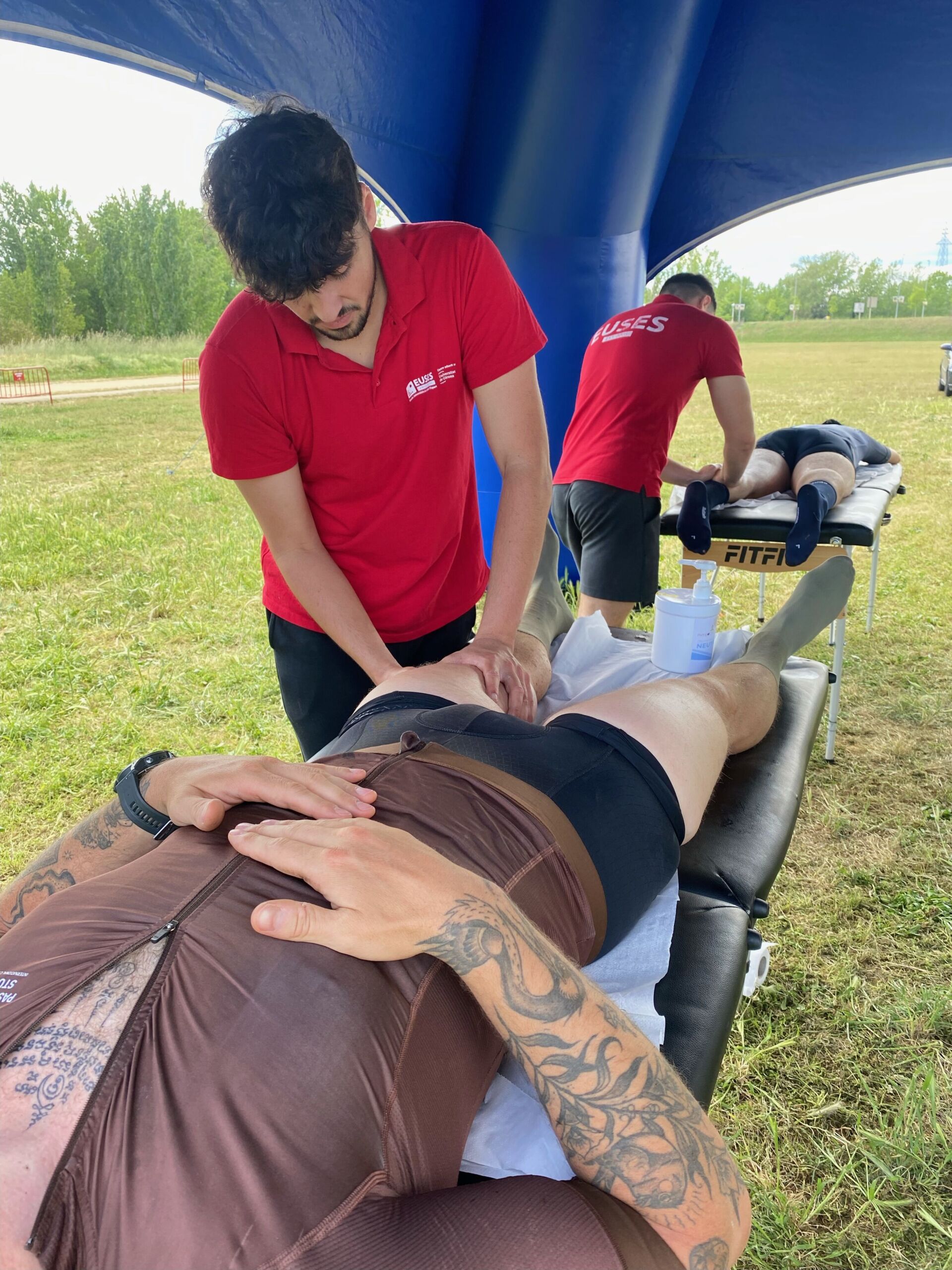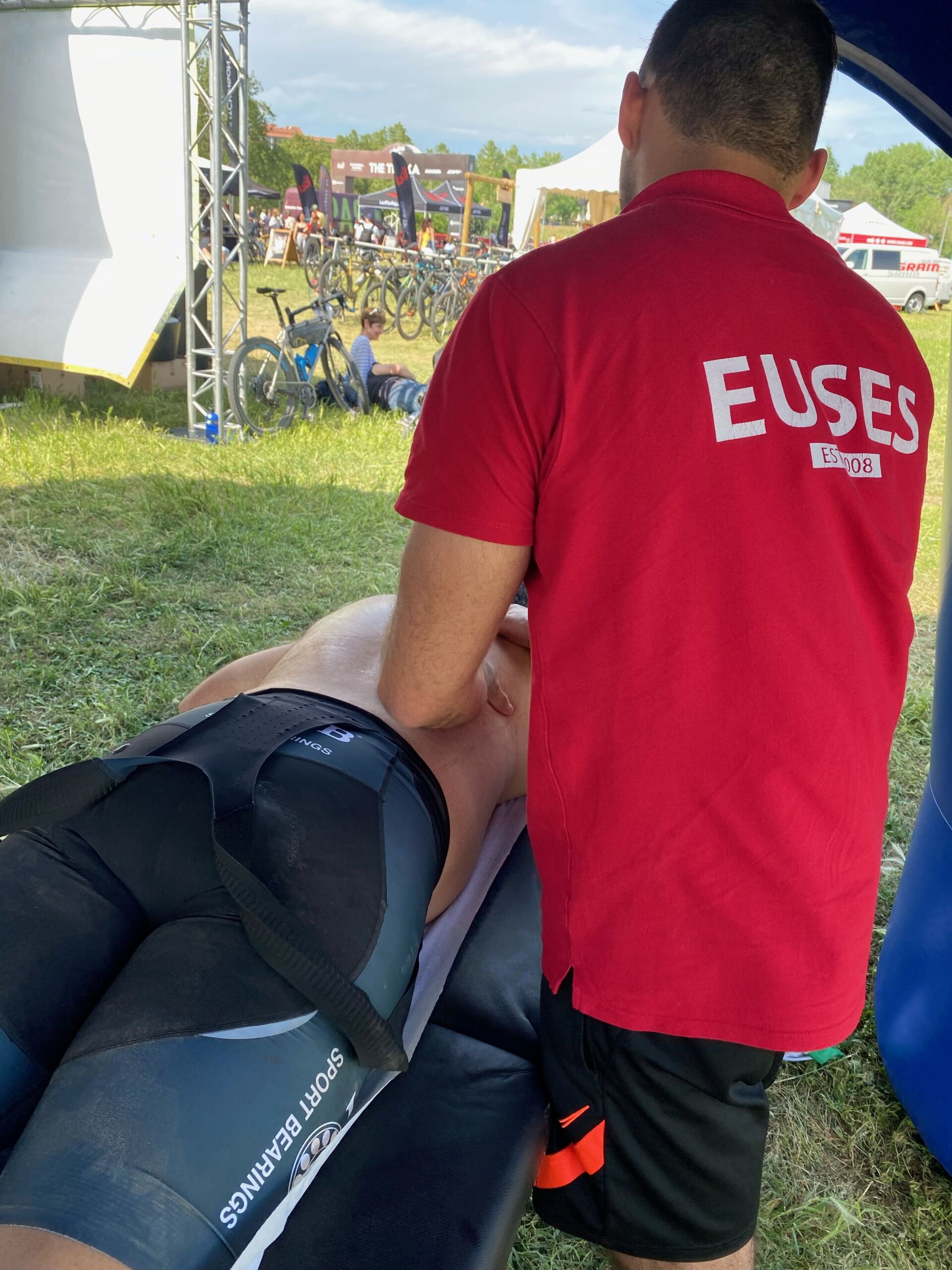 La Escola Universitària de la Salut i l’Esport puso su grano de arena en la prueba “The Traka”, organizada por Klassmark y que se ha celebrado entre los días 26 y 30 de abril por diferentes caminos y carreteras de las comarcas gerundenses y que ha tenido el centro neurálgico en el pabellón de Fontajau. Cerca de la llegada se ha montado un servicio de fisioterapia que ha sido tutorizado por el fisioterapeuta del EUSES Alumni Jonathan Duran. Los estudiantes Tom Lamberton, Alexandre Rivemale, Enzo Demarche y Melina Rouquette (sábado), Romaric Ardouin, Benjamin Picard y Tristan Marcoux (domingo) se han encargado de realizar técnicas de recuperación muscular (masajes y estiramientos) a los participantes que pudieron escoger entre varios recorridos, de 360 kilómetros y 5.000 metros de desnivel positivo (el más exigente de todos, con diferencia), de 200 kilómetros y 2.000 metros de desnivel; de 100 kilómetros y desnivel de 1.200 metros; y de 50 kilómetros y desnivel de 700 metros.