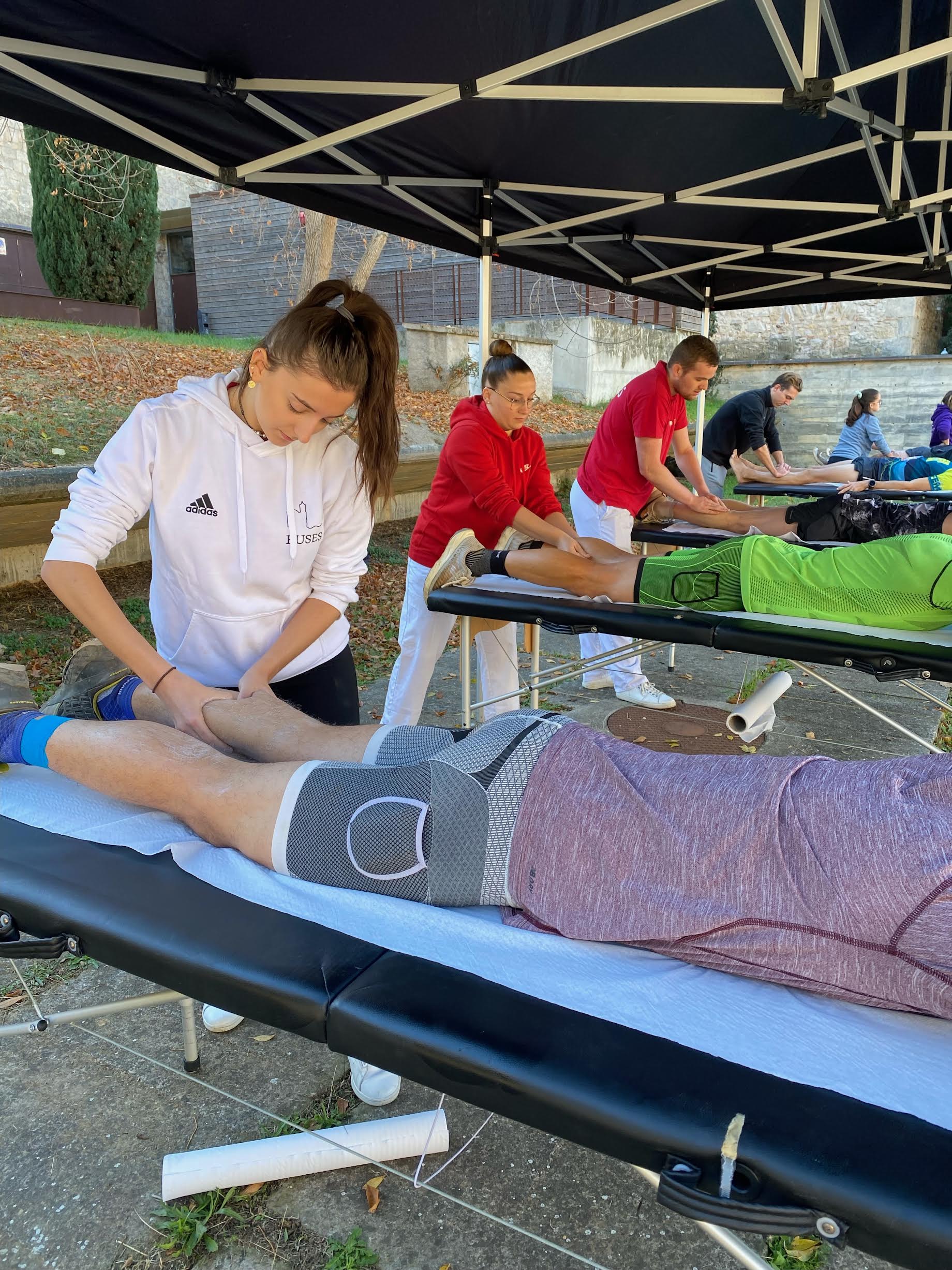 EUSES ha colaborado una vez más en una nueva edición de la “Cursa de Muntanya de Girona”, una competición organizada por Klassmark y que se ha celebrado este domingo. Bajo la supervisión del fisioterapeuta de EUSES Alumni Jonathan Duran, seis estudiantes del Grado en Fisioterapia (Camille Rodriguez, Lea Luchinni, Lucas Rousic, Emma Foulier, Paula Garcia Moreno i Louis Remy) se han encargado de recuperar muscularmente a los deportistas realizando masajes y estiramientos en un punto de fisioterapia ubicado en la plaza de Sant Domènec. Los participantes pudieron escoger entre el recorrido express (13 kilómetros y 500 metros de desnivel, con salida y llegada en Girona); el recorrido Trail (también con salida y llegada a Girona, pero con 21 kilómetros y un desnivel de 800 metros) y la exigente Transgavarres (salida de Palamós y llegada a Girona, con 50 kilómetros de recorrido y 1.700 metros de desnivel).
