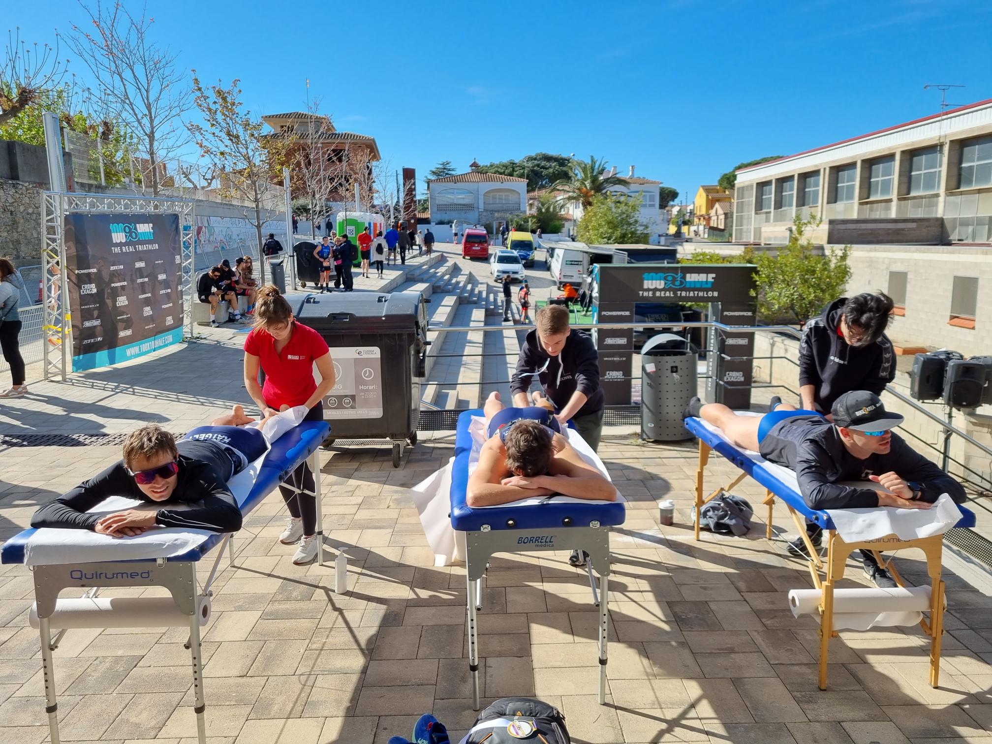 Estudiantes del Grado en Fisioterapia recuperan a los participantes del 100%100 Half l’Escala