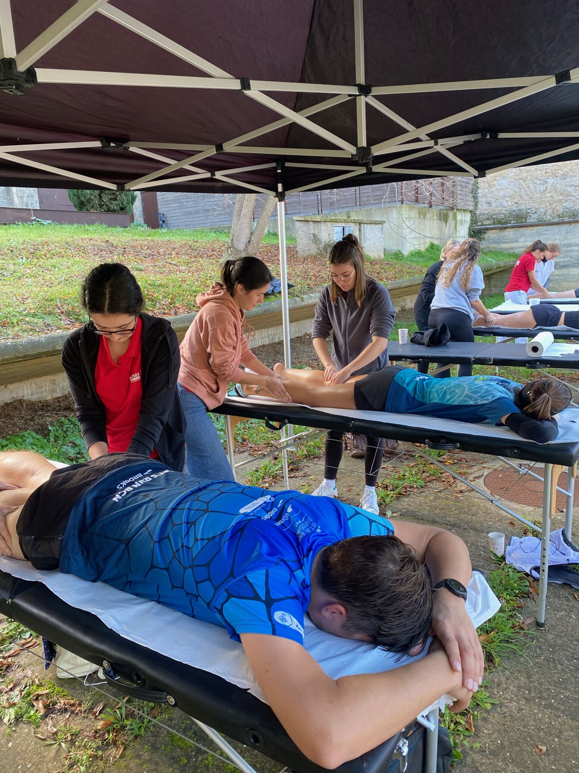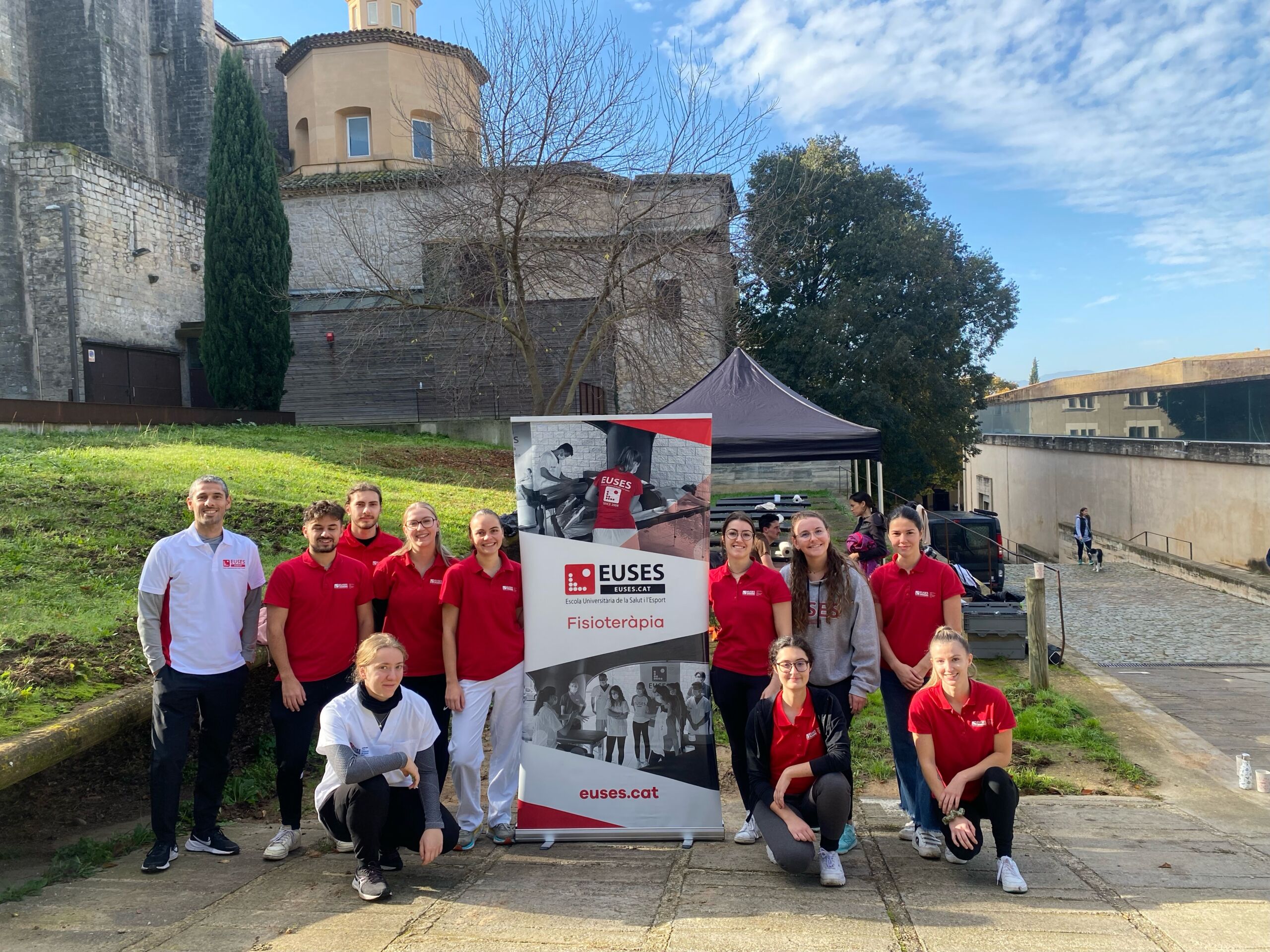 Un año más, la Escola Universitària de la Salut i l’Esport ha colaborado en la Carrera de Montaña de Girona (CMG) , una competición organizada por Klassmark, situando un punto de servicio de fisioterapia en la zona de llegada, en la Plaza de San Domènec. Los participantes pudieron escoger entre tres recorridos: el express (12,7 kilómetros y 500 metros de desnivel); el Trail (21,5 kilómetros y 800 metros de desnivel) y la Transgavarres, que fue, de largo, el recorrido más exigente (50 kilómetros y 1.700 metros de desnivel). Bajo la tutela del fisioterapeuta de la organización y de EUSES Alumni, Jonathan Duran, los estudiantes del Grado en Fisioterapia que al final de la prueba realizaron técnicas de recuperación muscular (masajes y estiramientos) a los participantes fueron Camille Andreu, Emma Benoit, Camille Loiret, Noémy Rybak, Sabine Duprat, Maëva Chanas, Sam Richard, Charlotte Fabre, Mar Mascaró i Laura Dion.