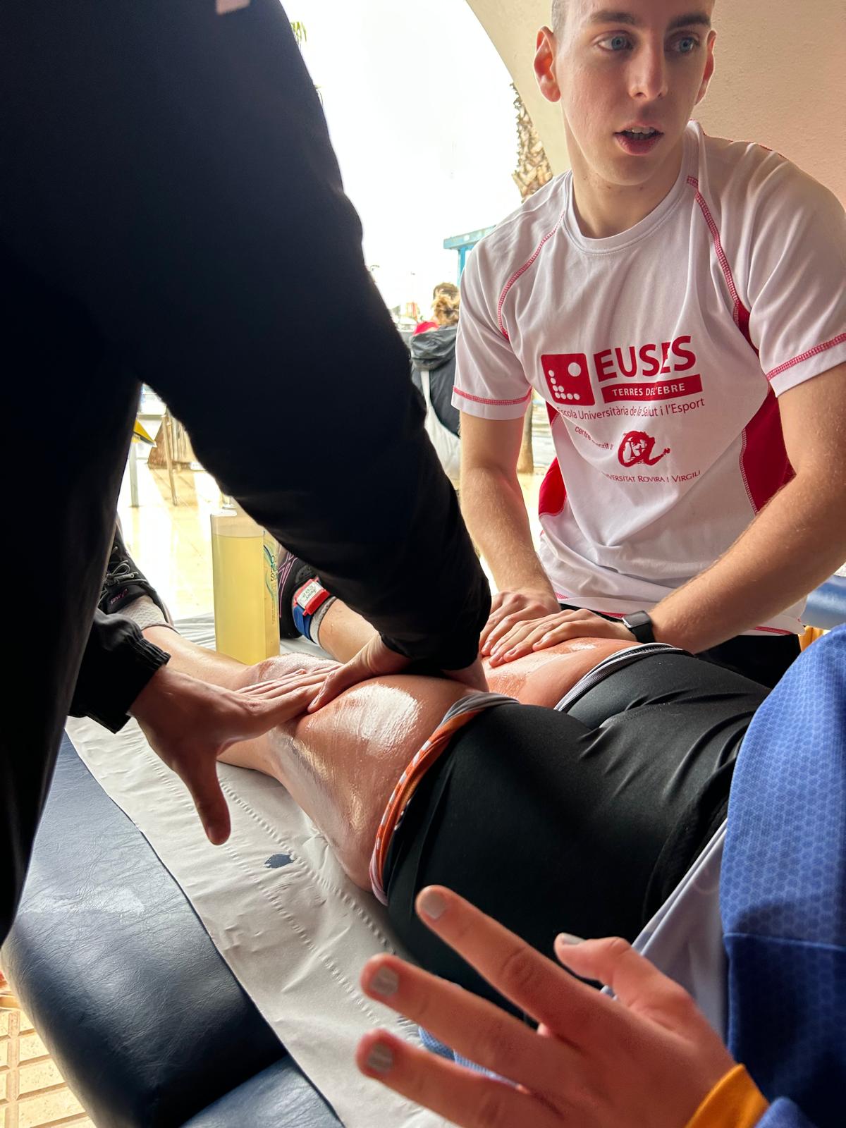 La Escola Universitària de la Salut i l’Esport ha puesto punto y final a los voluntariados académicos del mes de octubre añadiendo nuevos acontecimientos en los cuales los estudiantes del Grado en Fisioterapia han podido realizar practicas en situaciones reales, siempre bajo las directrices de los tutores de EUSES Alumni. Una vez más, los organizadores de acontecimientos como la Triatlón SGRAIL 100, el Triatlón 100% Half Ametlla de Mar, la Challenge Triatlón Barcelona o la Federación Catalana de Gimnasia (campeonato de Catalunya de gimnasia rítmica en Lleida) han hecho confianza a EUSES para que al final de la prueba alumnas del Grado realicen las actuaciones fisioterapéuticas pertinentes y contribuyan a la recuperación muscular de los participantes que tomaron parte en las diferentes actividades.
