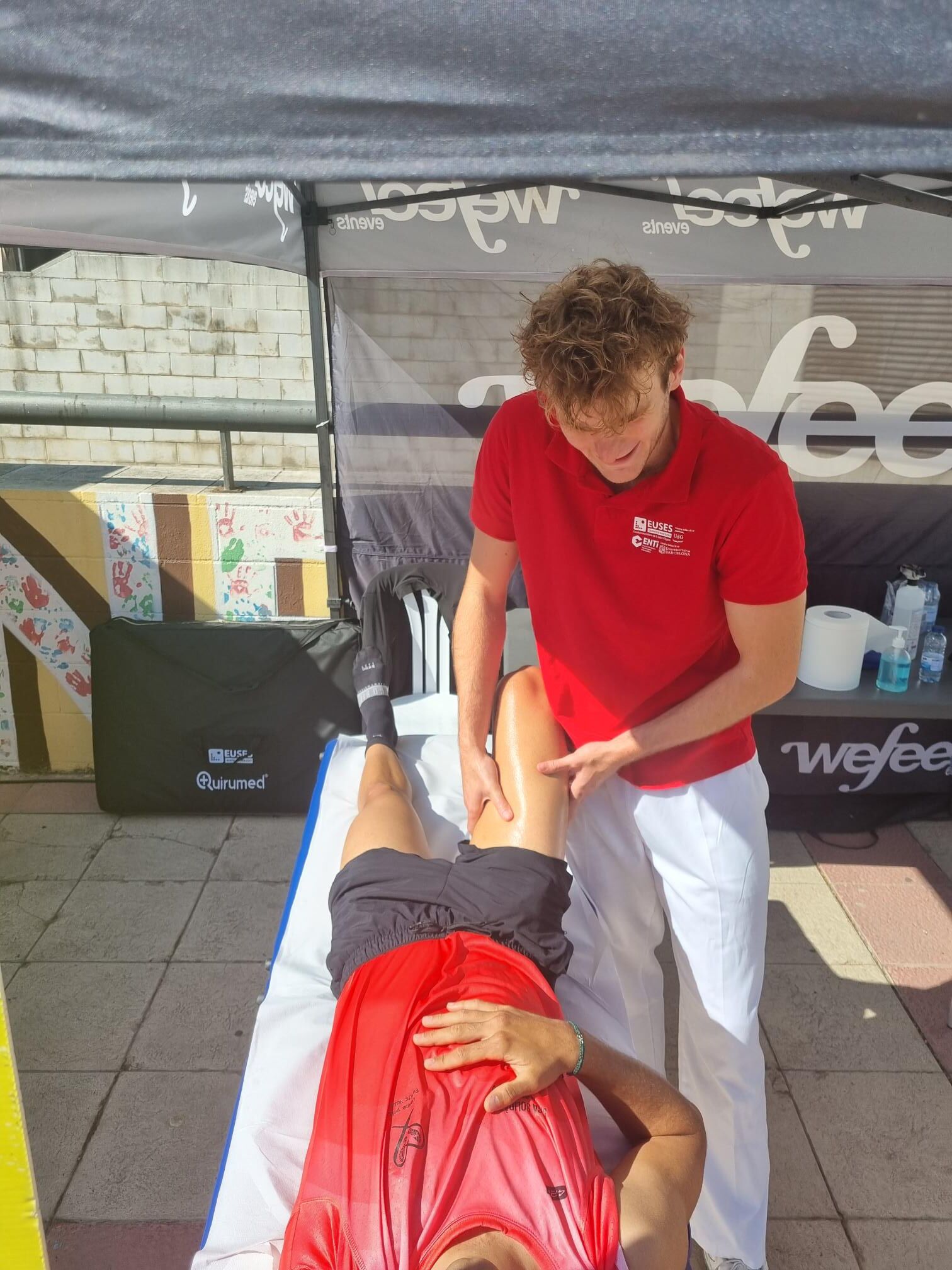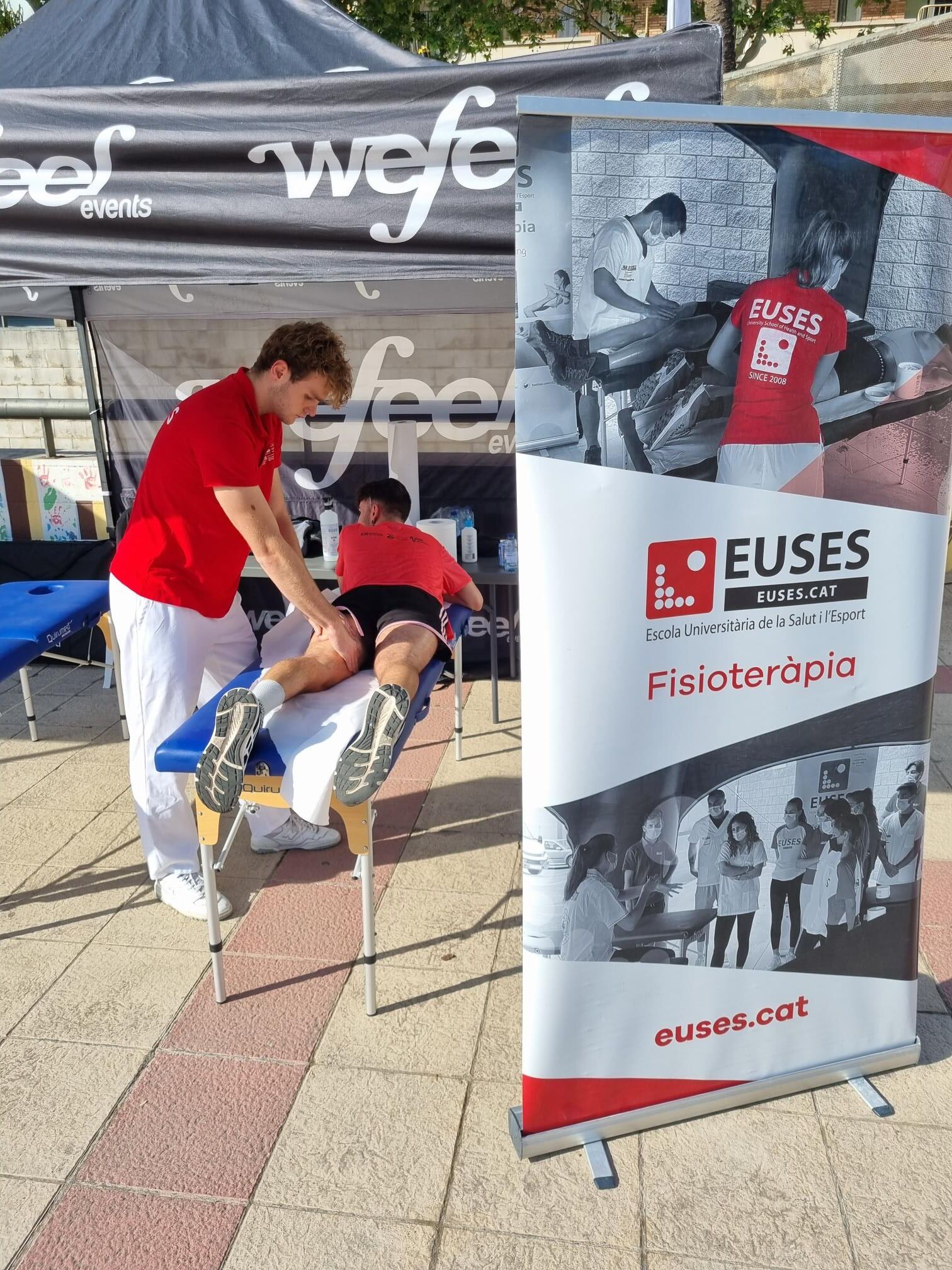 La Escola Universitària de la Salut i l’Esport ha colaborado con un servicio de fisioterapia en la carrera solidaria Ciutat de Esplugues Sant Joan de Deu, que se ha celebrado este domingo por las calles de la Ciudad y que ha llegado a su duodécima edición. La jornada, que ha reunido a numerosos participantes, ha consistido en dos carreras séniors (de 10 y 5 kilómetros) y dos más para los más pequeños (Kids iniciación y Kids Promoción). Al final de la prueba, en una zona habilitada con literas y supervisada por el fisioterapeuta de EUSES Alumni David de la Barrera, el estudiante del Grado en Fisioterapia del Campus de Bellvitge Julien Caillard ha realizado técnicas de recuperación muscular (básicamente masajes y estiramientos) a los participantes que así lo han deseado.