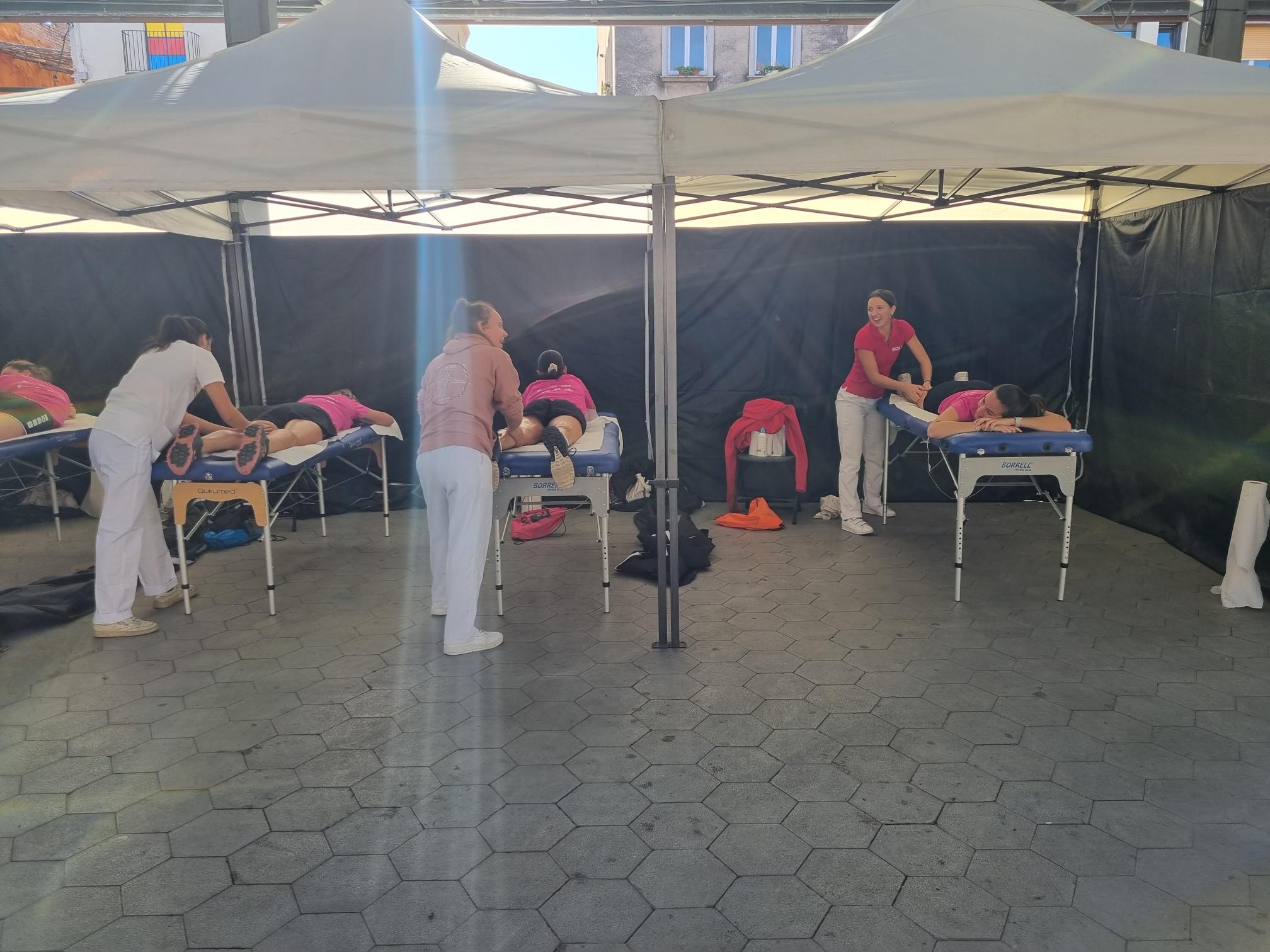 La Escola Universitària de la Salut i l’Esport ha colaborado un año más en la “Cursa de la Dona” de Figueres, que ha superado las 4.400 participantes en la octava edición. Bajo la supervisión del fisioterapeuta de EUSES Alumni David de la Barrera, cinco estudiantes del Grado en Fisioterapia (Marie Piveteau, Coralie Fosseries, Justine Madrid, Chiara Rinaldi y Pauline Jouanna) han realizado al final de la prueba (un recorrido de 5 kilómetros por las calles de la ciudad) masajes y estiramientos a las participantes en un punto habilitado por la organización en la zona de llegada.