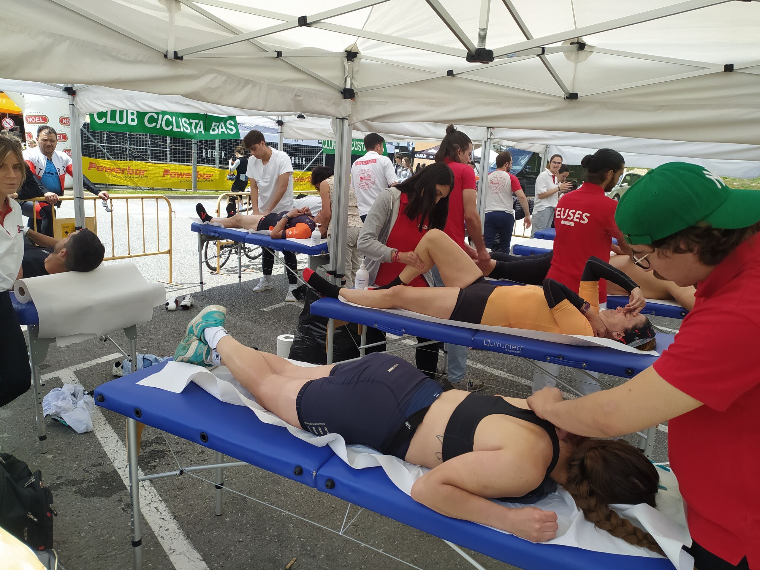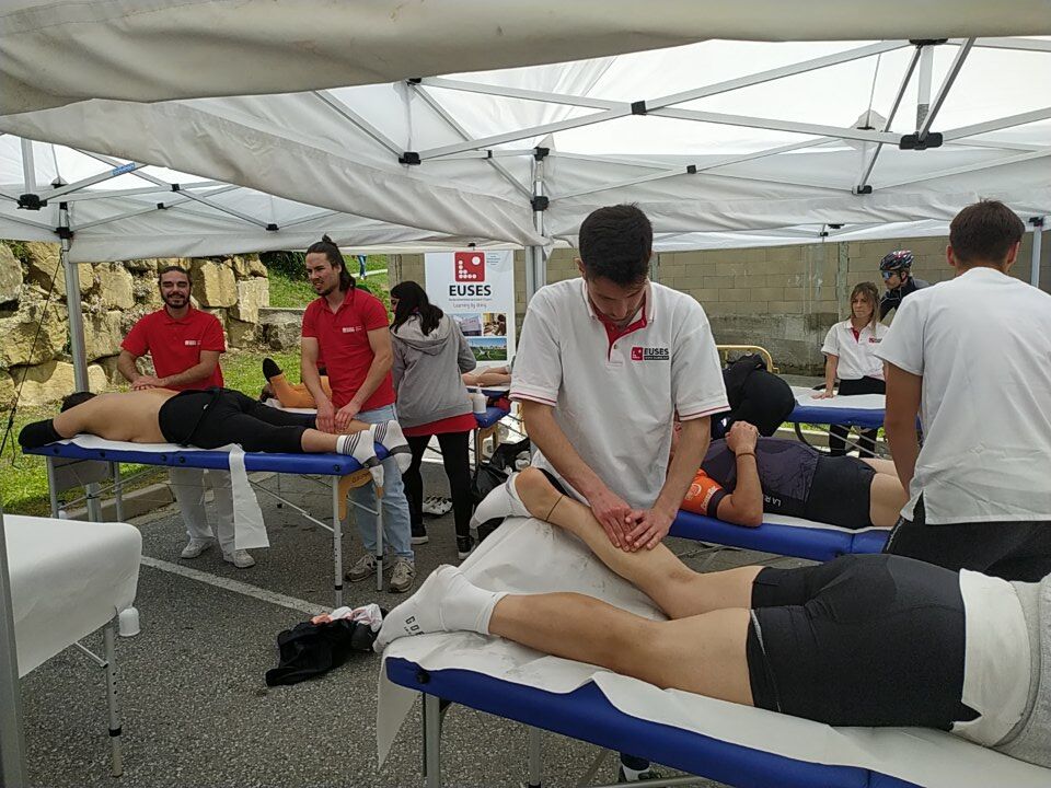 Un año más, la Escola Universitària de la Salut i l’Esport puso su grano de arena en uno de los acontecimientos que ya es un clásico en los voluntariados académicos: La Remences-Energy Tools, una prueba organizada por el Club Ciclista Bas. Con una participación limitada a los 3.000 ciclistas por razones de seguridad, EUSES colaboró con un contingente de gente formado por seis tutores de Alumni (Laia Ciendones, Marta Boix, Xavier Garcia, Miquel Giraldó, Adrià Desoi y Eduard Muntada) y seis alumnos del Grado (Joan Rispau, Tom Lamberton, Noa Cortés, Sara Ahfir, Paulin Rolland y Martí Figueres) que al final de la carrera y en una zona habilitada con literas y utensilios específicos para cualquier actuación fisioterapéutica, se ubicó un punto de recuperación para los ciclistas que finalizaron uno de los dos recorridos que diseñó la organización: uno de corto (100 kilómetros y un desnivel acumulado de 1.280 metros) y uno de bastante más exigente (173 kilómetros y desnivel de 2.600 metros).
