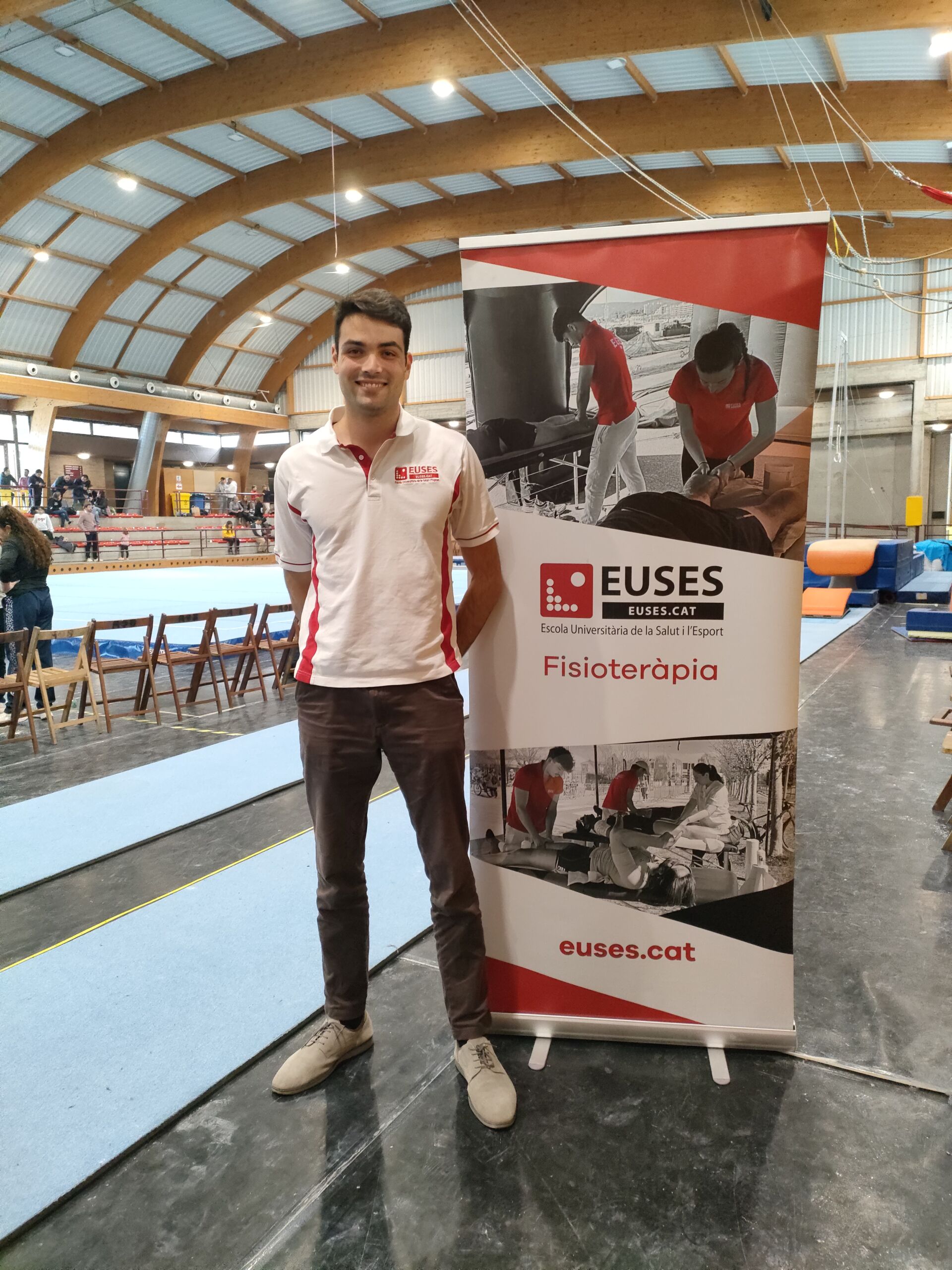 La Escola Universitària de la Salut i l’Esport ha estado presente este fin de semana en el pabellón de Besalú en una competición de gimnasia artística (1ª fase, Vía Olímpica-1-2-3-4-5-6-7-8-9-10 – BASE 10, individual – equipos) organizada por la Federación Catalana de Gimnasia. Dos fisioterapeutas de EUSES Alumni (Eduard Muntada el sábado y Josep Fiego el domingo) se han encargado de dar cobertura fisioterapéutica a la competición realizando las actuaciones que han sido necesarias (masajes, estiramientos, evaluación de lesiones, vendajes musculares…) durante el campeonato.