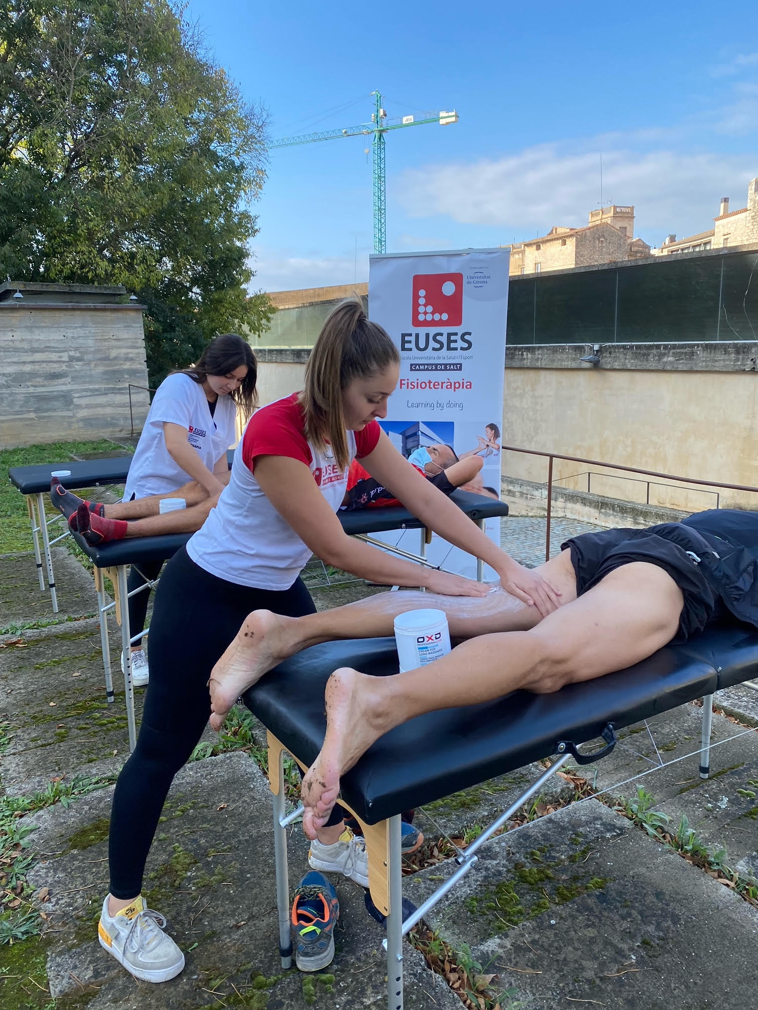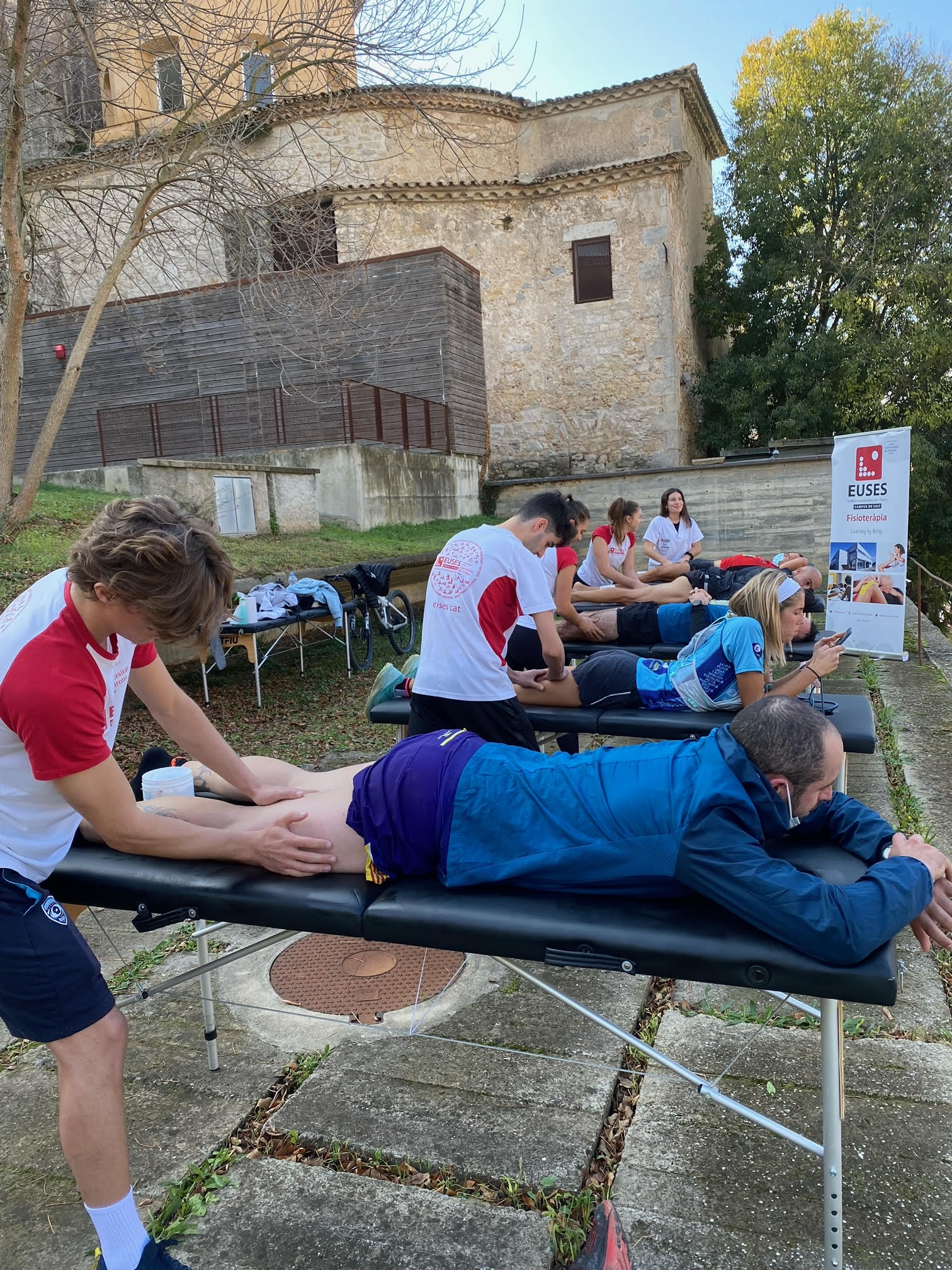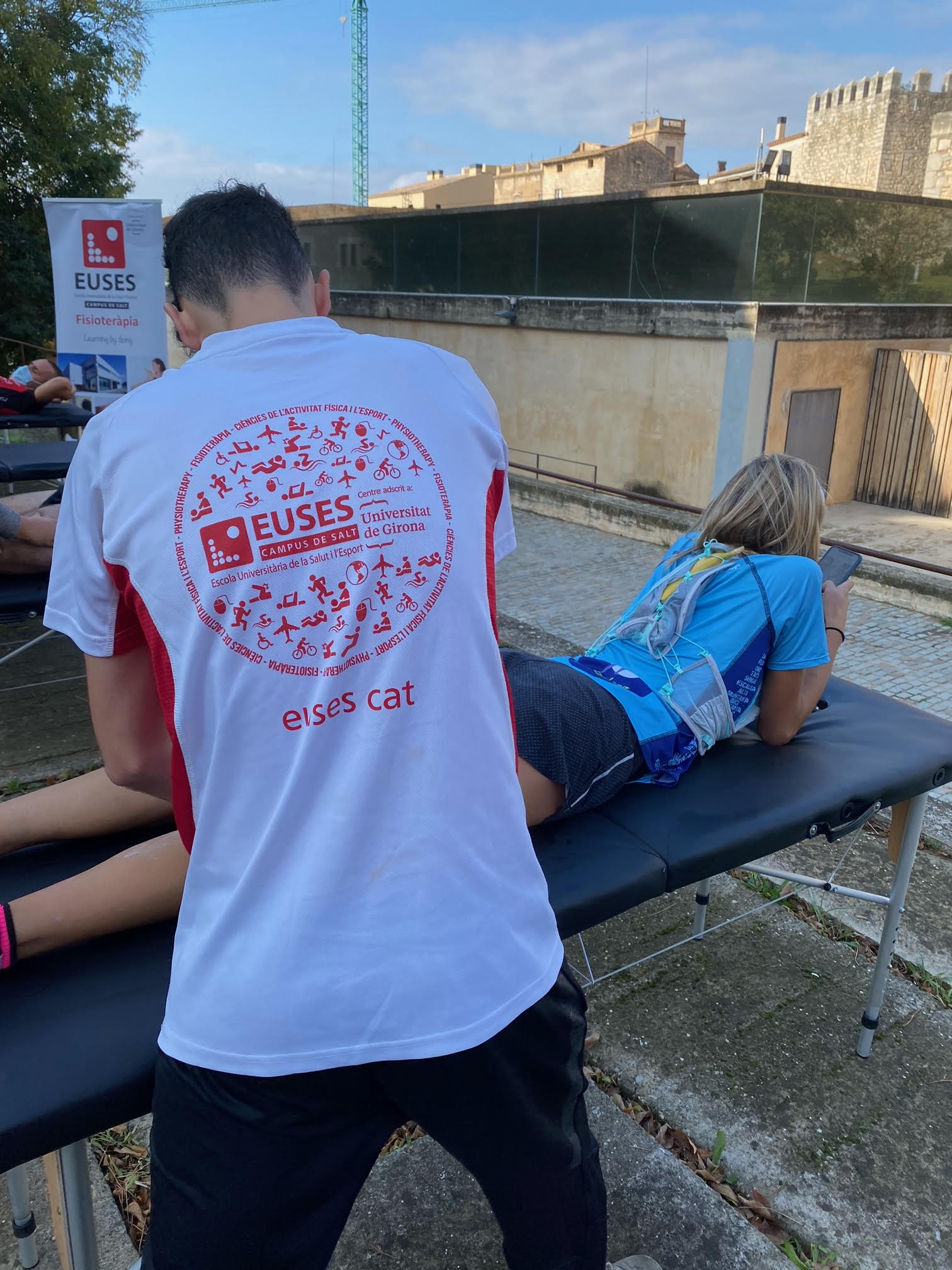 Después del paréntesis del 2020 a causa de la Covid-19, la Cursa de Muntanya de Girona (CMG) se retomó con nuevos recorridos y la Escola Universitària de la Salut i l’esport volvió a colaborar en dicho acontecimiento situando un punto de servicio de fisioterapia en la zona de llegada, en la Plaza de San Domènec. Organizada por Klassmark, los participantes pudieron escoger entre tres recorridos: el Express (15 kilómetros y 600 metros de desnivel); el Trail (24 kilómetros y 1.050 metros de desnivel) y la Transgavarres, que fue, con diferencia, el recorrido más exigente (51,5 kilómetres y 1.700 metros de desnivel). Bajo la tutela del fisioterapeuta de la organización y de EUSES Alumni, Jonathan Duran, los estudiantes del Grado en Fisioterapia que al final de la prueba realizaron técnicas de recuperación muscular (masajes y estiramientos) a los participantes fueron Louis Pages, Oriol Anglada, Emma Douchin, Celia Carbasse y Lili Brantus.