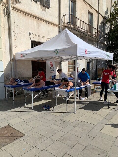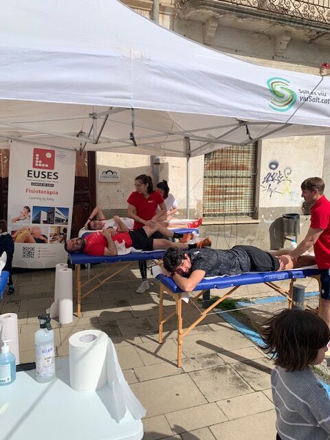 La Fundació Les Vetes ha organizado la doceava edición de su carrera solidaria que ha reunido a una buena cantidad de participantes, los cuales han podido escoger entre un recorrido de 5 kilómetros y otro de 10, siempre con salida y llegada en la Plaza 1 de Octubre de Salt. La carrera, 100% solidaria, ha contado nuevamente con la participación de EUSES con un servicio de fisioterapia al final de la prueba tutorizado por la fisioterapeuta de la organización Elisa Duran. La Escola Universitària de la Salut i l’Esport ha aportado cinco estudiantes del Grado (Marine Macron, Mathilde Monis, Stephan Exposito, Louanne Sangras, Célia Callégarin y Eléa Helmer), los quales al final de la carrera han realizado técnicas de recuperación muscular (masajes y estiramientos) a los participantes.