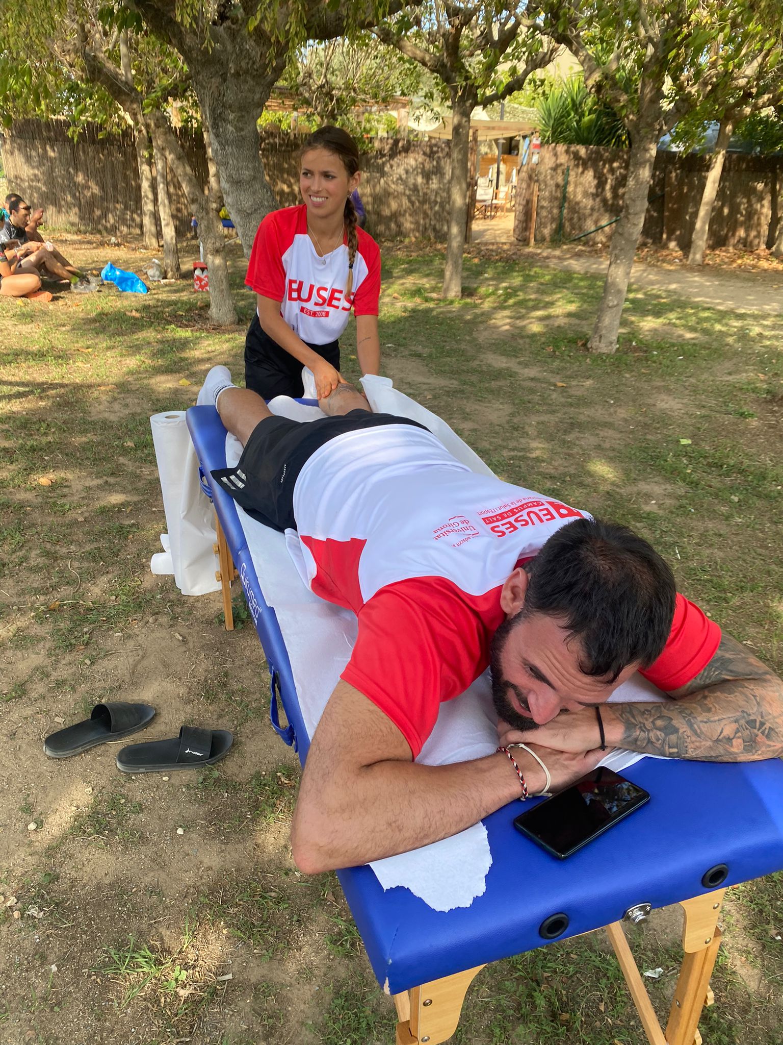 En cuanto al voluntariado, los estudiantes del Grado en Fisioterapia Ámbar Marty, Louise Bastardo, Laura Saló, Juliette Caro, Dalys Calvet y Lise Meségué se concentraron en Pals (punto intermedio de la prueba) y allí realizaron masajes y estiramientos a los participantes que lo desearon y que tenían todavía por adleante un buen puñado de kilómetros hasta el objetivo de la llegada.