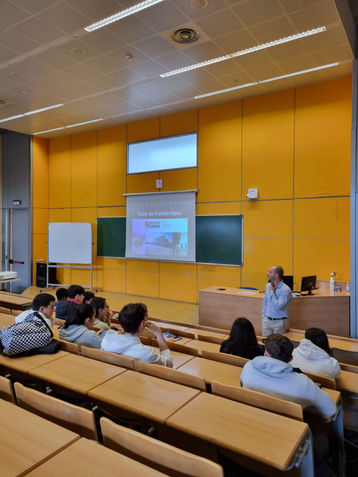 Este viernes, estudiantes de bachillerato y de ciclos formativos que están interesados en realizar alguno de los grados que ofrece la Escola Universitària de la Salut i l’Esport se han acercado hasta el Campus de Salt para conocer las instalaciones y recibir información sobre los estudios que quieren realizar a partir del curso 2024/25, aprovechando la Jornada de Puertas Abiertas que organiza la UdG.