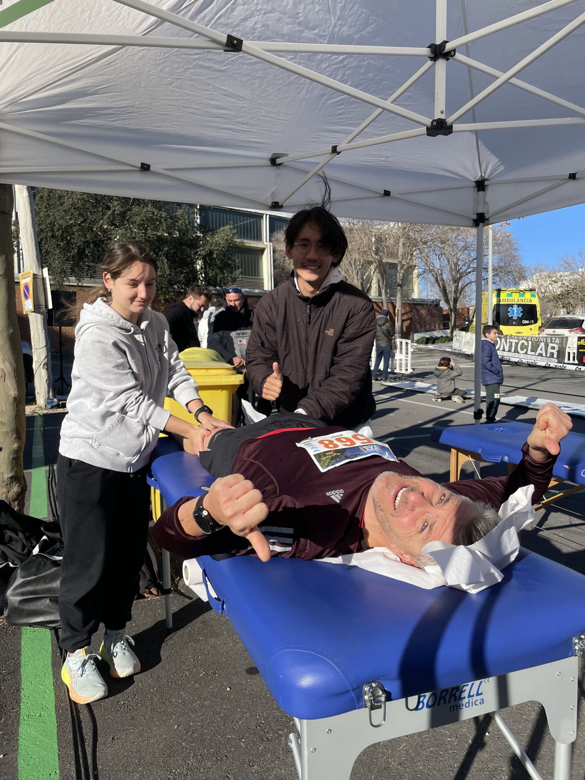 Después de un paréntesis de unas semanas por las fiestas navideñas, la Escola Universitària de la Salut i l’Esport ha retomado este fin de semana los voluntariados académicos y ha colaborado con la Ganxotrail, una carrera de montaña por la Ardenya. . El Centre Excursionista Montclar de Sant Feliu de Guíxols, organizador del acontecimiento, planteó un recorrido de 17 kilómetros y una marcha de 11 kilómetros. Al final de la prueba, los estudiantes del Grado en Fisioterapia Antoine Buu y Elisa Toledo, supervisados por el fisioterapeuta de EUSES Alumni Artur Calleja, realizaron tareas de recuperación muscular (básicamente masajes y estiramientos) a los participantes que así lo desearon en una zona habilitada cerca de la llegada, en el aparcamiento de la Corxera.