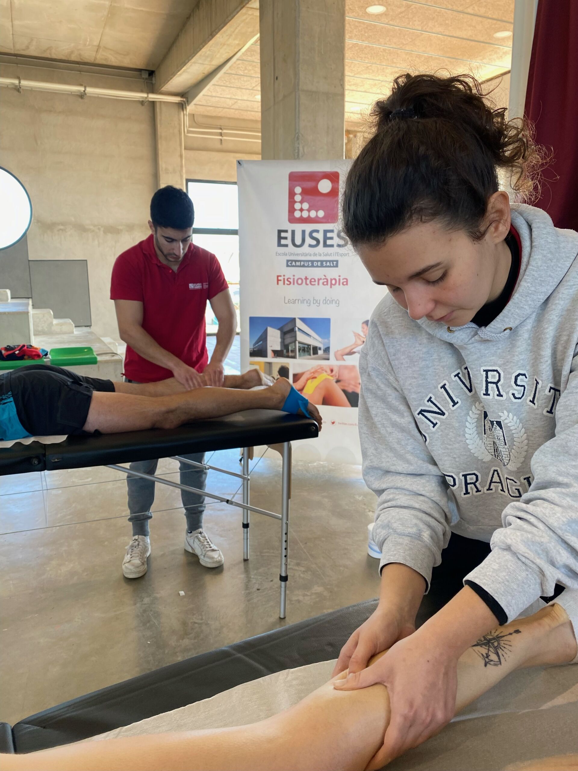 Bajo la supervisión del fisioterapeuta de EUSES Alumni Jonathan Duran, los estudiantes del Grado Esther Botterweg, Paul Ribas, Júlia Xirgo, Sara Martín y Martí Fuster recuperaron muscularmente a los participantes de la Trail Rocacorba, una carrera de montaña organizada por Klassmark que tuvo la salida y llegada en la zona deportiva de Canet d’Adri. Los deportistas pudieron escoger entre tres recorridos: Marathon (36,4 kilómetros y 1.750 metros de desnivel), Trail (24,6 kilómetros y 1.150 metros de desnivel) y Express (17 kilómetros y 750 metros de desnivel). Al final de la carrera, la organización habilitó un punto de servicio de fisioterapia donde los estudiantes de EUSES realizaron técnicas de recuperación muscular (básicamente masajes y estiramientos) a los participantes.