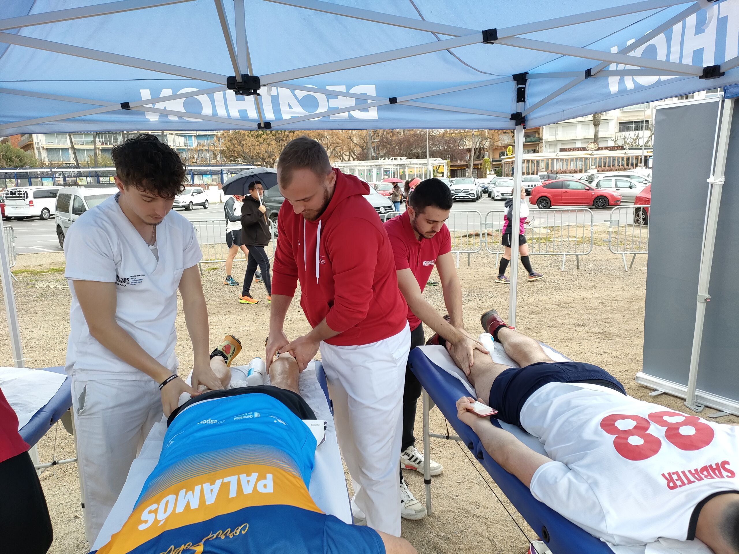 Con un recorrido de 10 kilómetros, los participantes (más de 1.200) han podido vestir y defender la camiseta de uno de los diez municipios colaboradores o la del Correpoble-Baix Empordà (en representación del resto de municipios de la comarca). La primera edición se ha celebrado en Palamós y EUSES ha colaborado en la zona de llegada con un servicio de fisioterapia para los participantes que han decidido acercarse para recuperarse del esfuerzo. Bajo la supervisión del fisioterapeuta del EUSES Alumni Josep Fiego, los estudiantes del Grado que han realizado masajes y estiramientos al final de la prueba (en el Estenedor de Xarxes) han sido: Léo Lanza, Fontana Tom, Alexandre Avellana, Timeo Chetioui, Maxime Jeanneteau, Carla Brocard, Noah Dembele y Benjamin Fontez.