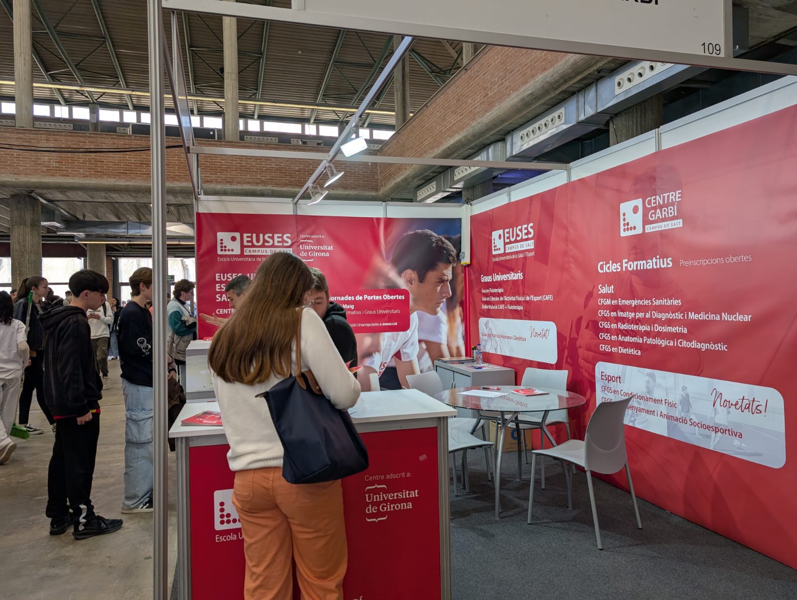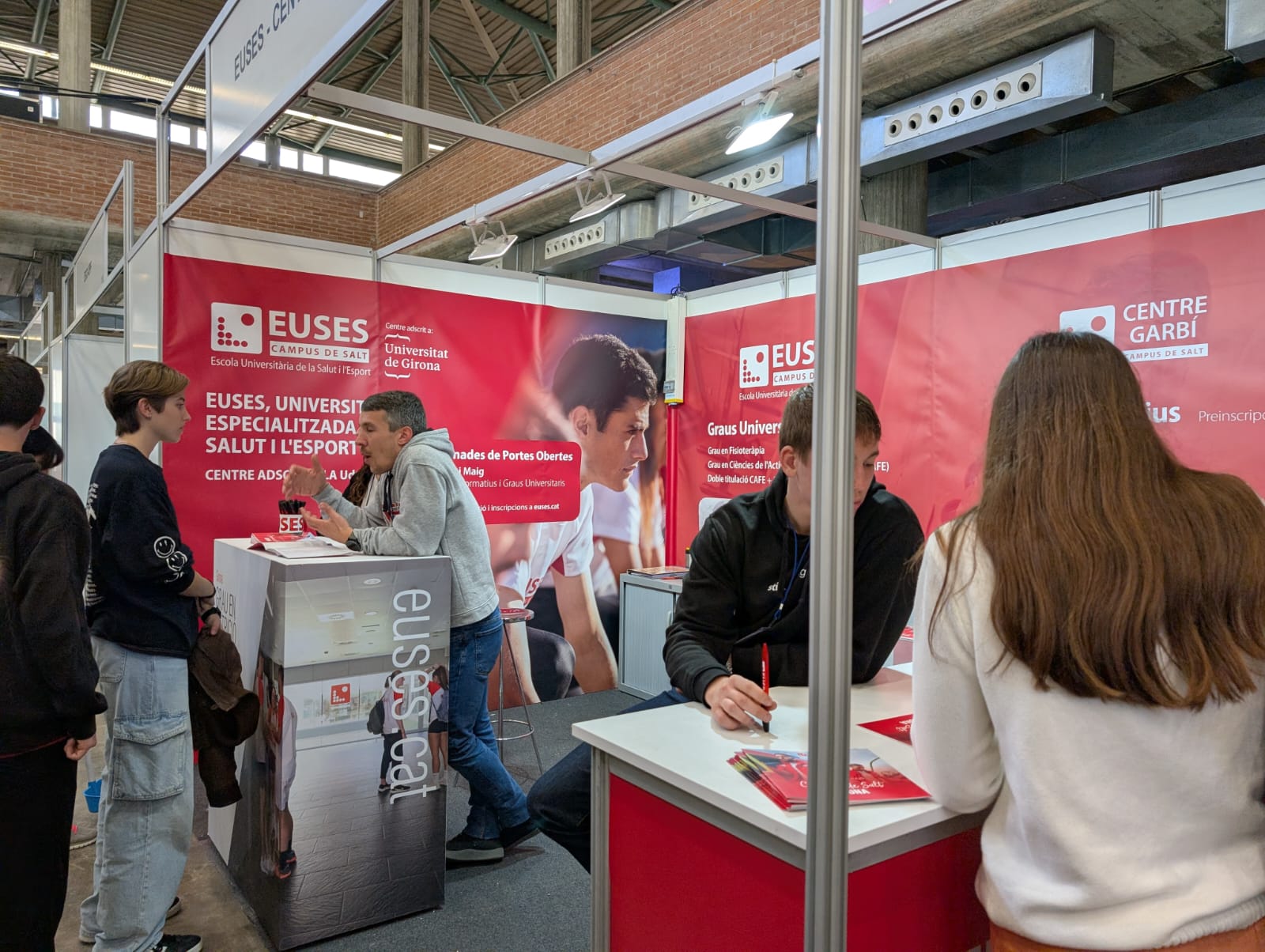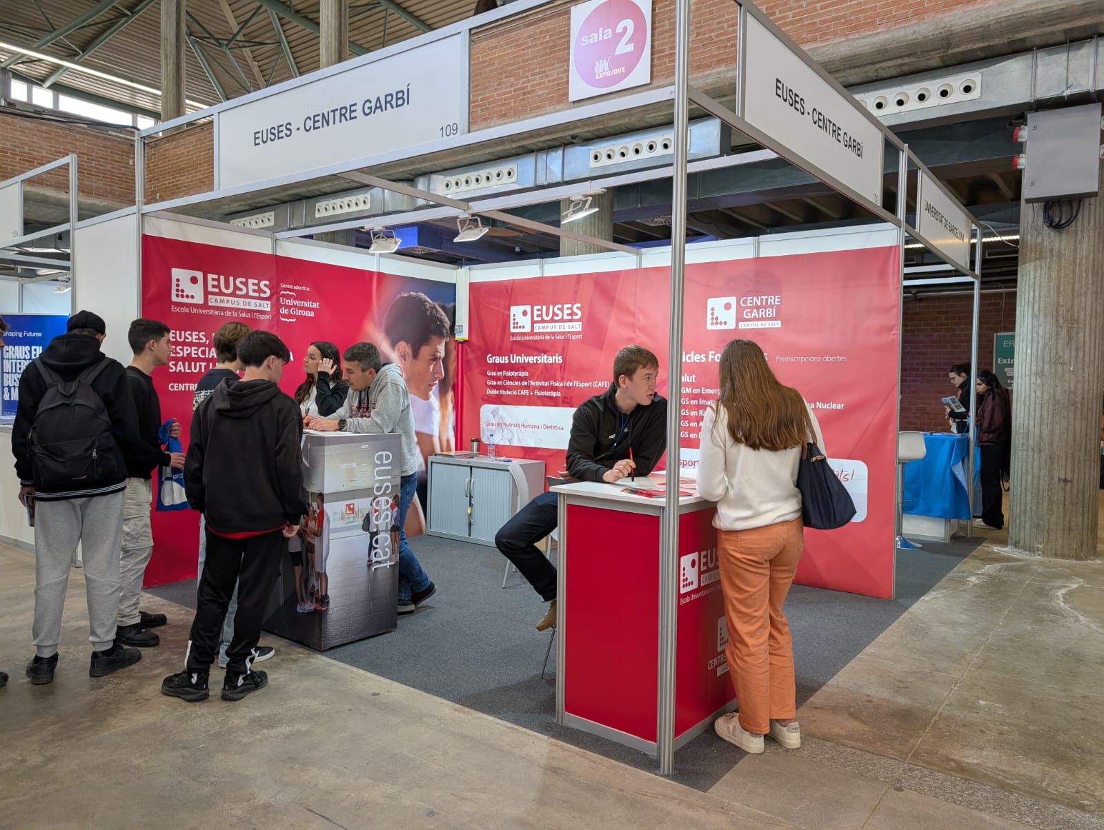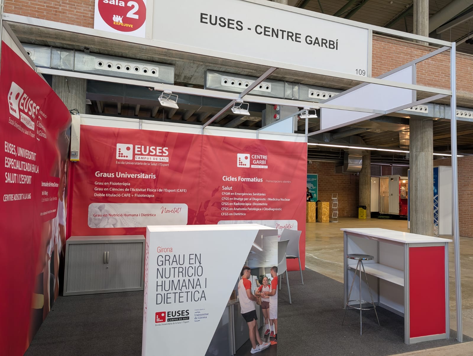 EUSES y el Centre Garbí, que comparten instalaciones en el Campus de Salt, están situados en el estand 109 del Palau de Fires Nivel 1. Representantes de los dos centros (directores, coordinadores, profesores y personal de administración y servicios) estarán presentes para explicar con todo detalle a los interesados los estudios que se pueden realizar en sus instalaciones. EUSES tiene una oferta de cuatro grados universitarios, mientras que el Centre Garbí ofrece hasta siete ciclos formativos (seis de Grado Superior y uno de Grado Medio) relacionados, todos ellos, con la salud, la medicina y el deporte.