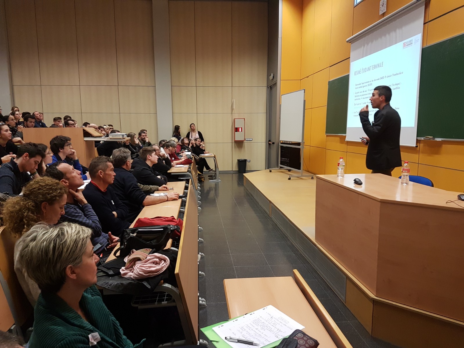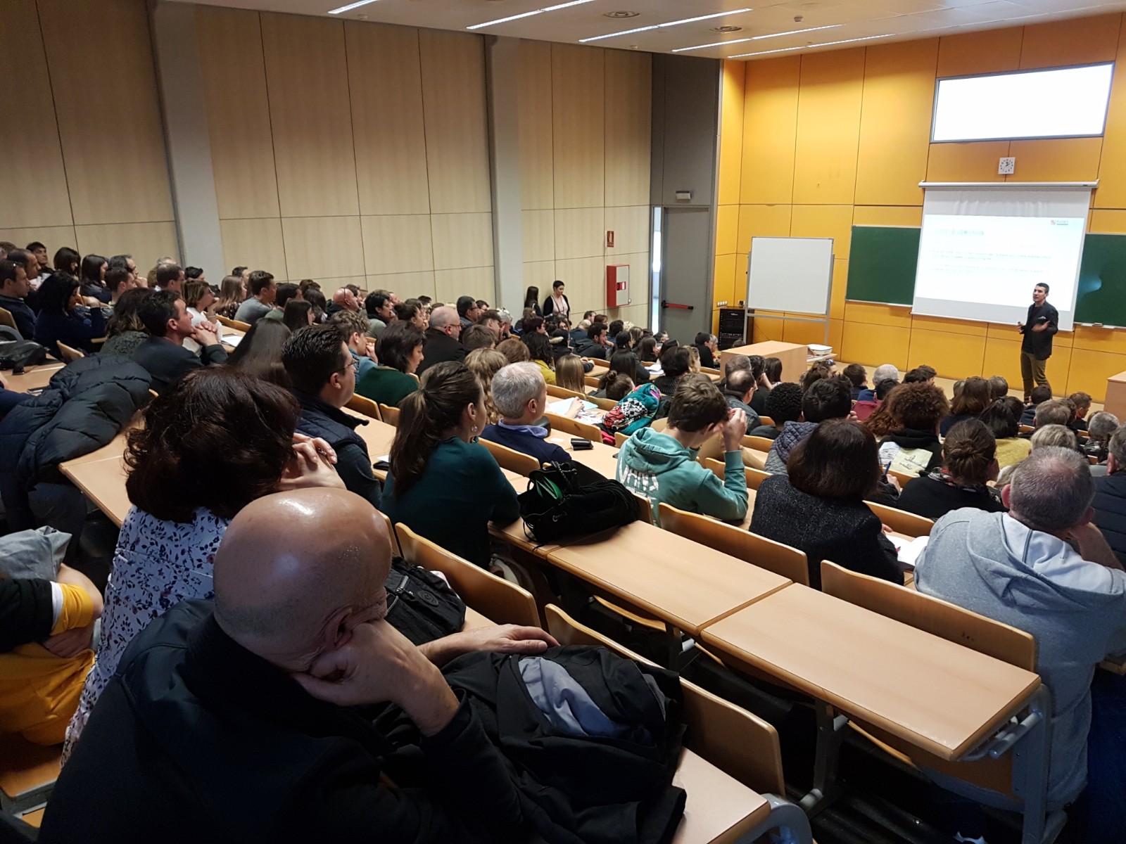 Las puertas de l’Escola Universitària de la Salut i l’Esport se han abierto esta mañana a los estudiantes que se quieren incorporar a la familia de EUSES a partir del curso académico 2020/21 realizando el Grado en Fisioterapia.  El Aula Magna y la aula número 8 del Campus de Salt se han llenado en las diversas sesiones que se han realizado y en las cuales el director del Grado en Fisioterapia, Mariano Gacto; y el profesor i coordinador Eduardo Rubio han detallado de manera exhaustiva todos los aspectos esenciales del grado como el plan de estudios, las salidas profesionales, los convenios que lo centre universidad tiene firmados, las prácticas en las empresas… Por su parte, los miembros del departamento de promoción de EUSES Pau Vila i Albert Deulofeu han intervenido para exponer toda la tramitación que se tiene que seguir para realizar la matriculación. Los representantes de EUSES también han intentado resolver todas las dudas y preguntas que han formulado a los asistentes, que posteriormente han realizado una visita guiada por estudiantes que están cursando el Grado por las instalaciones del centro universitario. Las próximas jornadas de puertas abiertas que hay programadas al Campus de Salt son los sábados 28 de marzo y 16 de mayo.