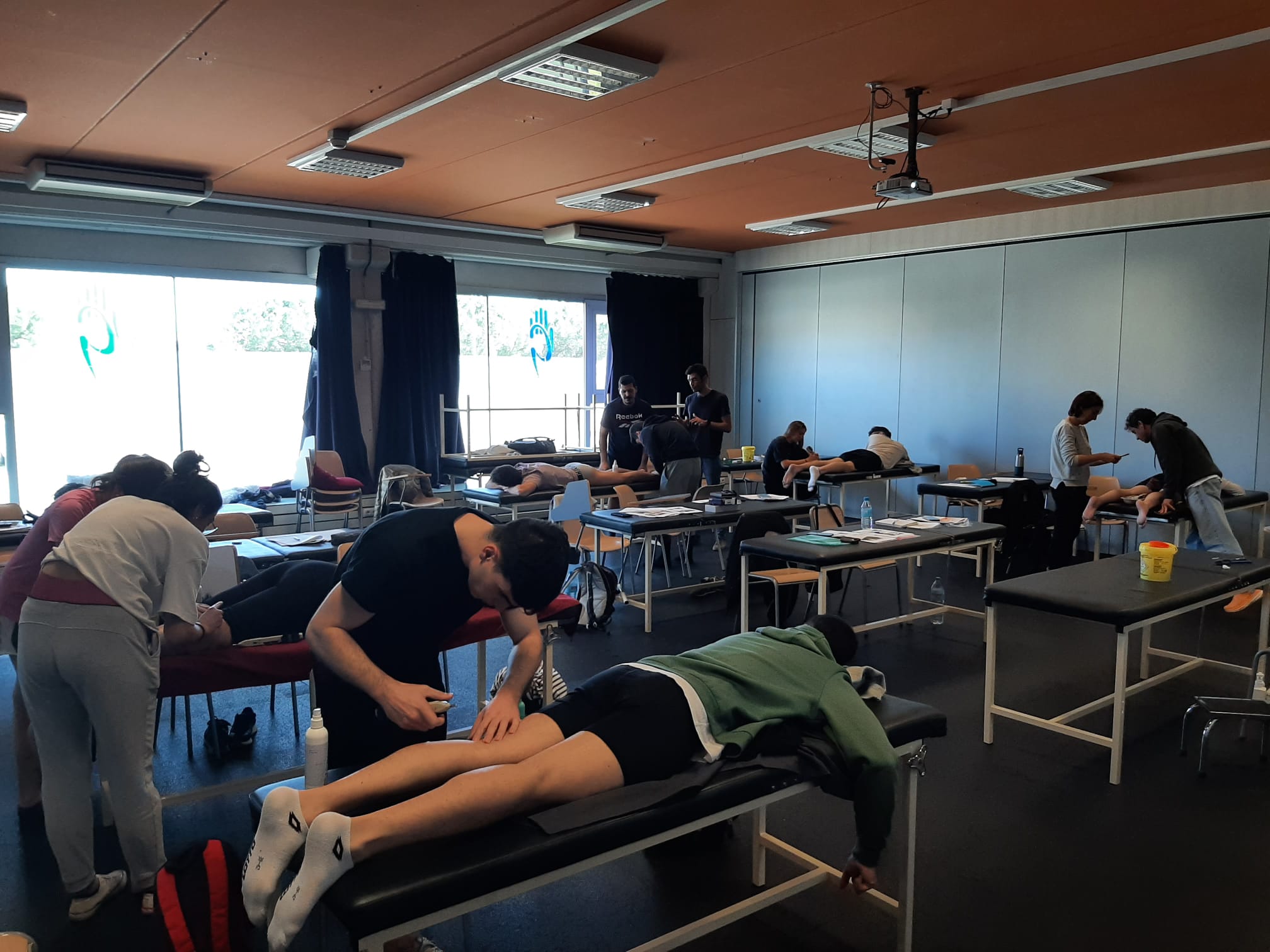 Durante el primer seminario el profesor expuso las bases teóricas de la técnica e hizo un amplio recordatorio de la fisiología de los mecanismos del dolor, a la vez que inició los fisioterapeutas inscritos en los aspectos prácticos y metodológicos más básicos. Posteriormente y adoptando el rol de fisioterapeuta-paciente, pudieron replicar la metodología de trabajo y simular la práctica clínica con otros compañeros.