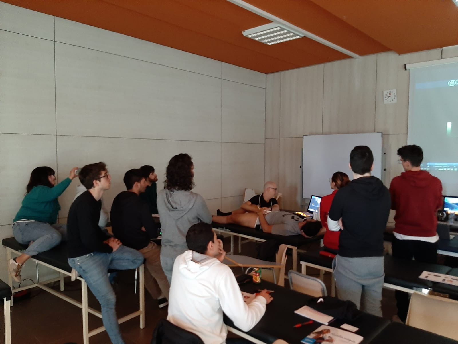 En el primer bloque, el profesor Jordi Soriano explicó los conceptos teóricos básicos necesarios para iniciar cualquier estudio ecográfico e hizo una breve introducción del funcionamiento de la aparatología que se usa en las exploraciones ecográficas. Posteriormente, y una vez familiarizados con los ecógrafos y asimilados estos conceptos teóricos básicos, los participantes del curso, adoptando el rol de “fisioterapeuta-paciente”, tuvieron la oportunidad de realizar el estudio ecográfico sistemático de las estructuras anatómicas de toda la extremidad superior, centrándose especialmente en las áreas del hombro, antebrazo y muñeca.