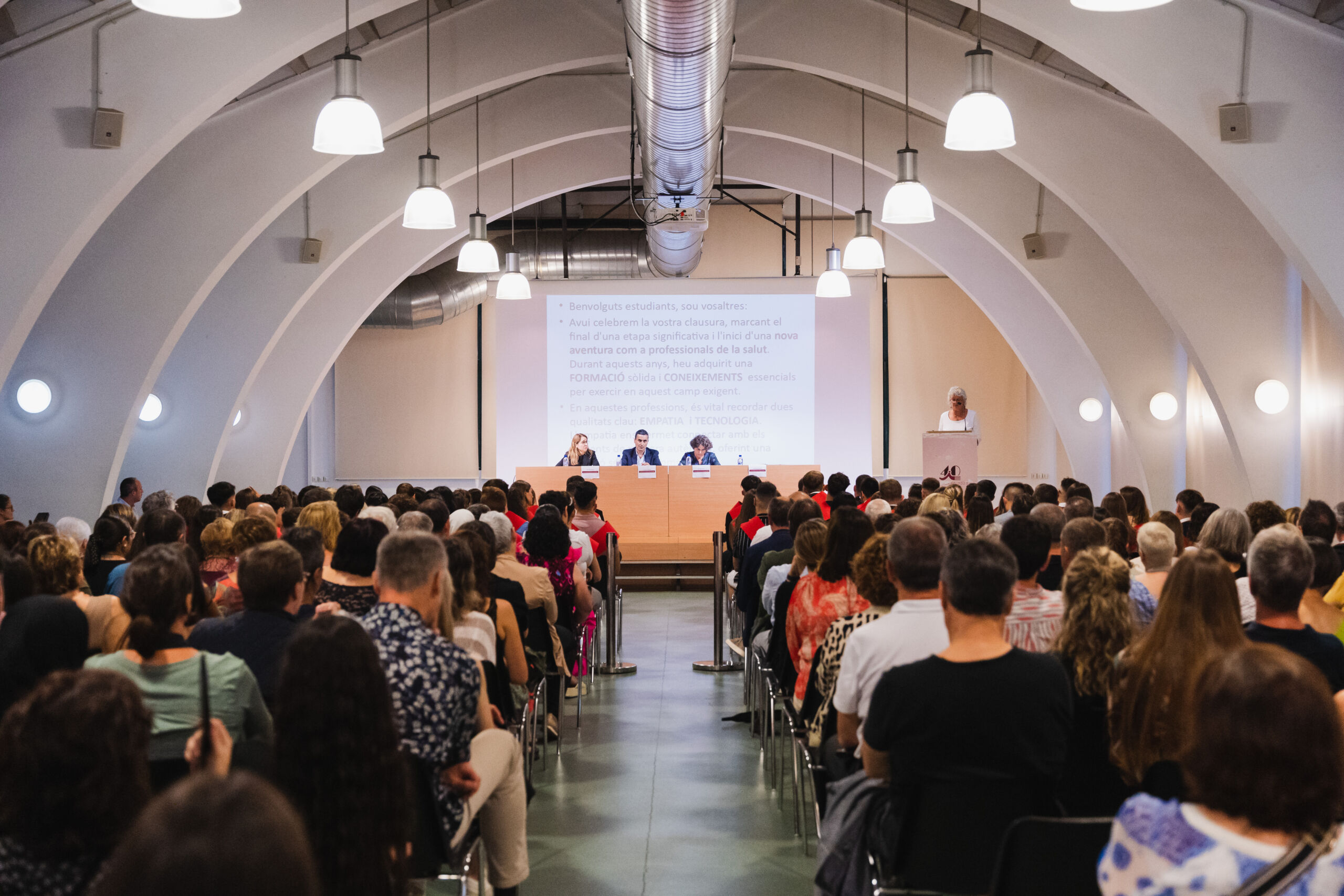 Después de la entrega de diplomas de graduados a todos los estudiantes que han completado los diferentes ciclos formativos han tomado la palabra los coordinadores académicos de los alumnos, Joan Baños i Joaquim Llorella. También ha habido parlamentos de estudiantes (uno por ciclo) con dedicatorias hacia el equipo docente, a los compañeros y a las familias: Claudia Medrano (Imagen para el Diagnóstico y Medicina Nuclear), Mariann Alejandra D’anna (Anatomía Patológica y Citodiagnóstico), Paola Morraja Vovk (Dietética), y Judit Sánchez Fernández (Emergencias Sanitarias). El acto se ha cerrado con la actuación musical Gaudeamus Igitur.