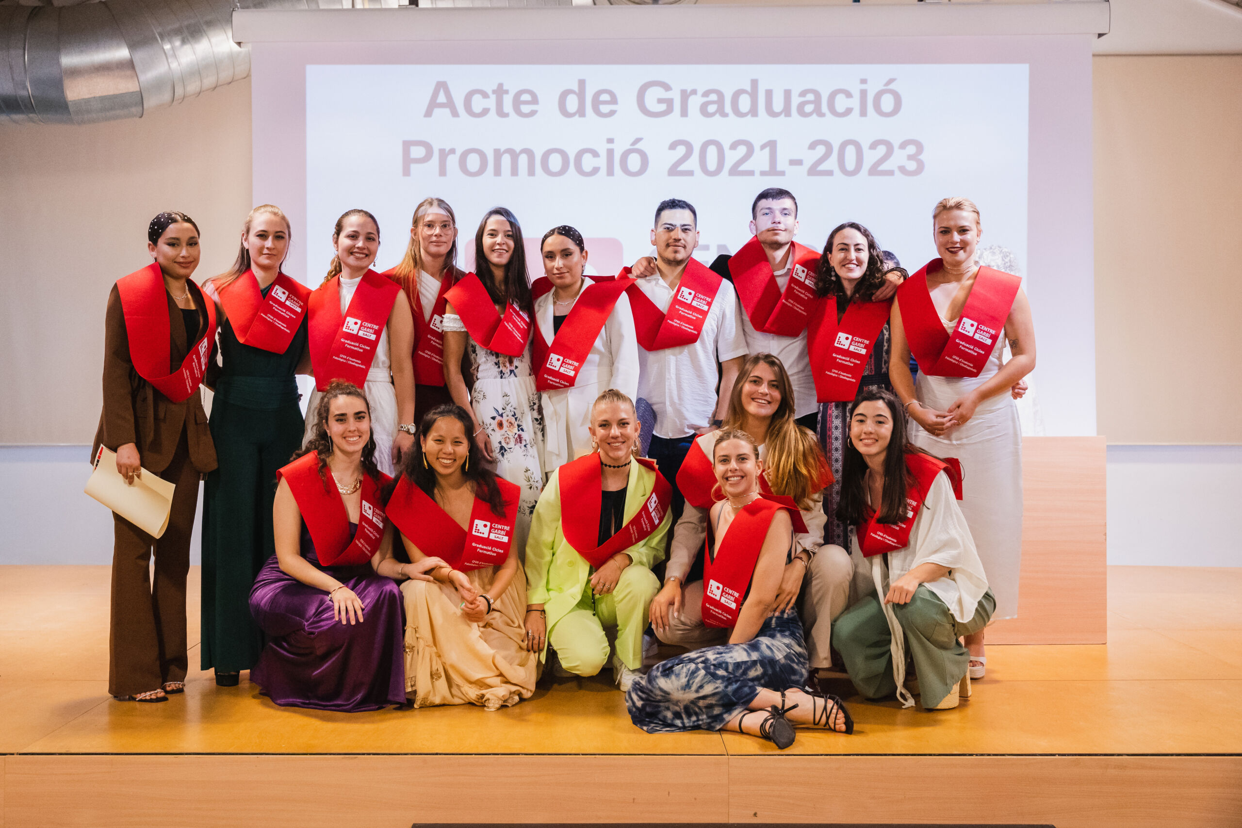 El auditorio de la Factoría Cultural Coma Cros se ha llenado por completo este martes para el acto de Graduación de los estudiantes de los diferentes ciclos formativos del ámbito de la salud que se imparten en el Centre Garbí. Después de dos años de formación en las instalaciones del Campus de Salt, han salido los nuevos Técnicos de Grado Superior en Anatomía Patológica y Citodiagnóstico (14ª promoción), Técnicos de Grado Superior en Imagen para el Diagnóstico y Medicina Nuclear (14ª promoción), Técnicos de Grado Superior en Dietética (9ª promoción) y Técnicos de Grado Medio en Emergencias Sanitarias (12ª promoción).