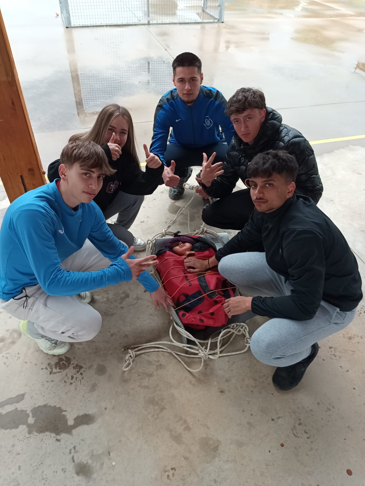 En el marco de la asignatura de Evacuación y Traslado que imparte lo profesor Pedro Rodríguez, los estudiantes de 2º curso del Ciclo Formativo de Grado Medio de Técnico/a en Emergencias Sanitarias del Centre Garbí se trasladaron hasta Beudà para realizar una jornada de socorrismo en el medio natural. La jornada consistió en resolver situaciones de emergencia en medios hostiles y con material de fortuna. Los estudiantes pudieron realizar dinámicas de cohesión y trabajo en grupo; inmovilizaciones; hipotermia en la naturaleza y “burrito”; construcción de litera de fortuna; orientación básica con Road Book y brújula. También realizaron una gincana poniendo en práctica todo el aprendizaje adquirido y realizando diferentes maniobras con cuerda (asegurar a un compañero, hacer rapel o “passacamilla” a través de fraccionamiento, tirolina y polipasto simple).