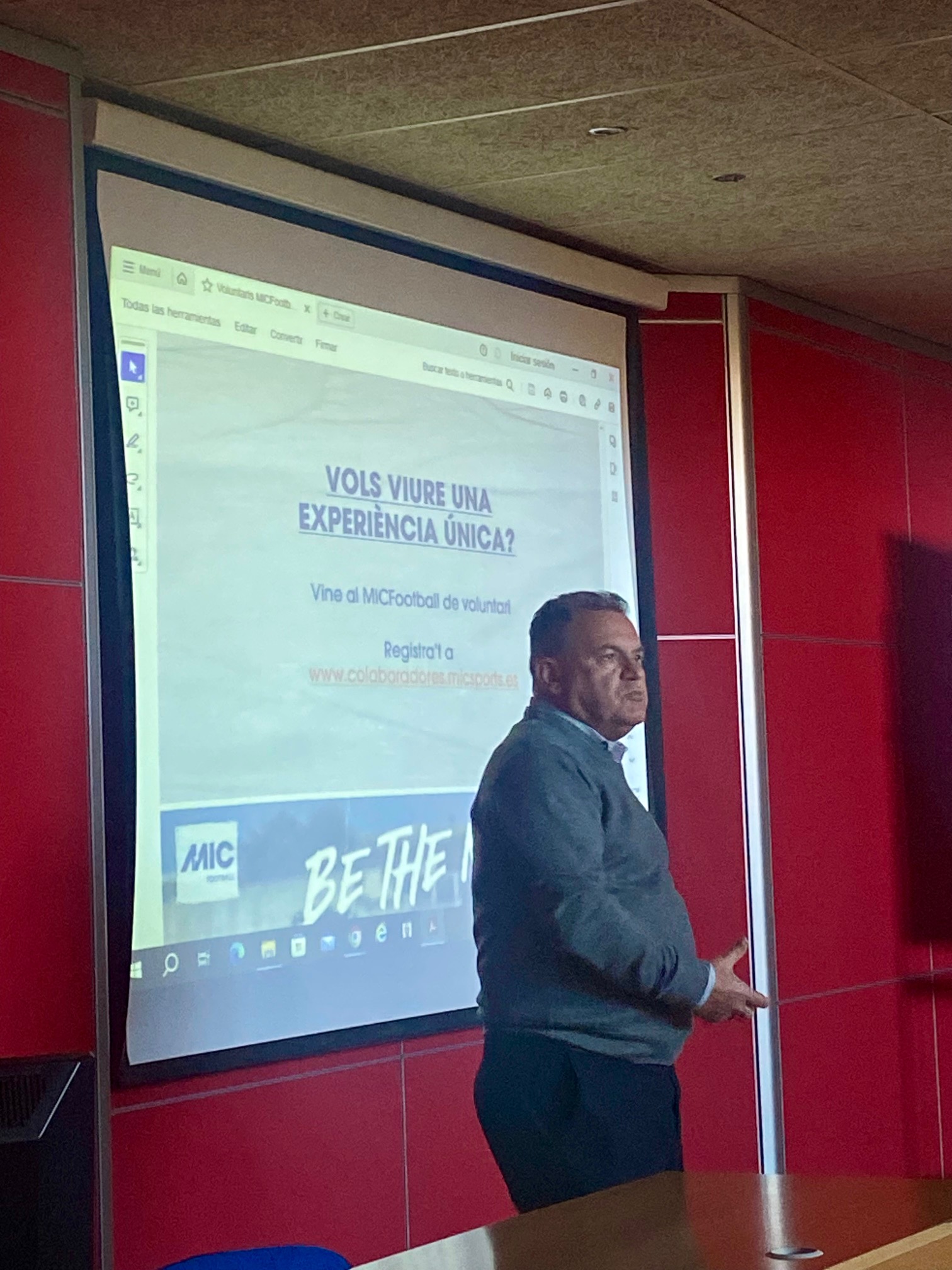 Además de exponer los secretos del MIC y de contestar a las preguntas de los alumnos, Juanjo Rovira ha animado a los estudiantes de los Grados en Ciencias de la Actividad Física y del Deporte y en Fisioterapia a formar parte de este gran engranaje como voluntarios. EUSES, que colabora hace años con el torneo, aporta estudiantes de CAFyD (los responsables del MIC los hacen partícipes de tareas organizativas y logísticas) y de Fisioterapia (en todas las sedes hay un servicio de fisioterapia donde se evalúan posibles lesiones de los futbolistas o se los recupera después del esfuerzo con masajes y estiramientos).