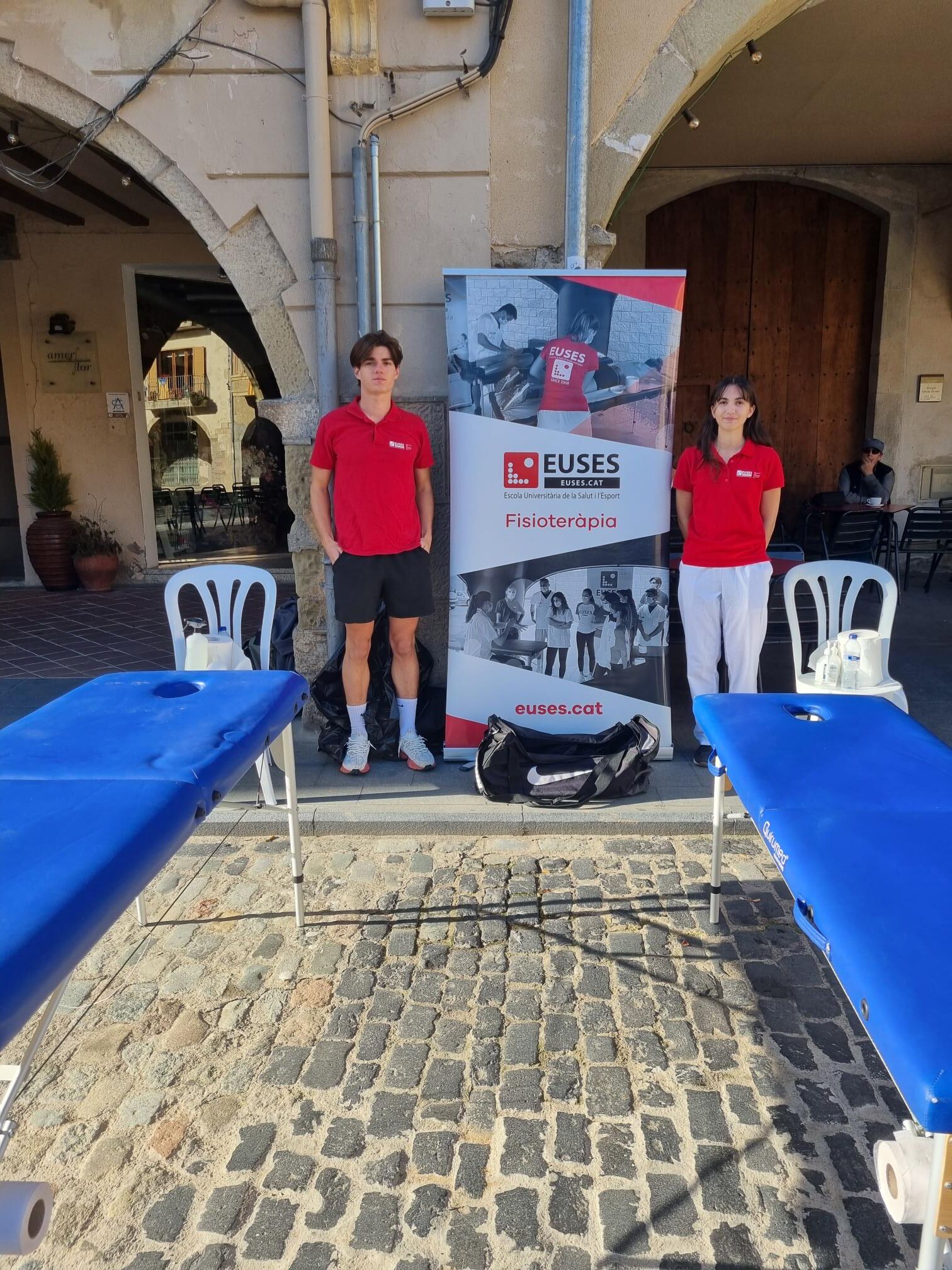 EUSES ha añadido un nuevo voluntariado a su larga lista con la inclusión de la carrera “Corre por las mamas”, organizada por la Fundación Oncolliga y que se realiza por diferentes pueblos y ciudades con el objetivo de recaudar fondos para luchar contra el cáncer de mama y que irán destinados al proyecto “Guapas y Valientes”. EUSES estuvo presente en la prueba de Amer donde los participantes pudieron escoger entre un recorrido de 5 kilómetros y otro de 10  (en la demarcación de Girona hubo 25 poblaciones que organizaron este mismo acontecimiento). Al final de la prueba y bajo la tutorización del fisioterapeuta David de la Barrera, los alumnos del Grado Sarah Taferant y Arthur Teresiak realizaron técnicas de recuperación musculares a los participantes en un punto con servicio de fisioterapia.